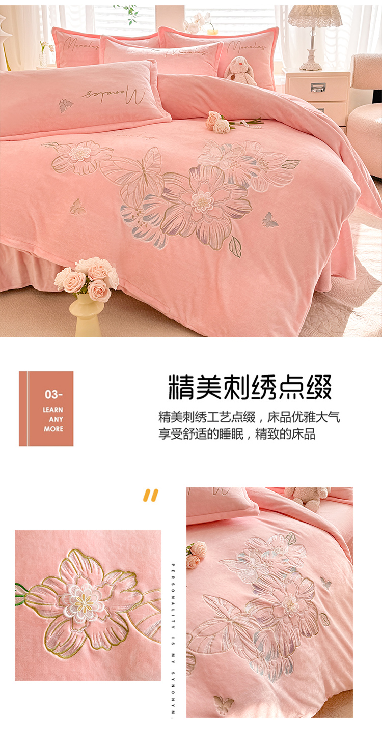 漫布云2025秋冬新款11斤230g全消光牛奶绒夹棉床盖款四件套纯色蕾丝花边刺绣床裙款床盖,蝶恋花-梦幻紫, 蝶恋花-嫩黄 ,蝶恋花-新芽绿, 蝶恋花-婴儿蓝, 蝶恋花-樱花粉