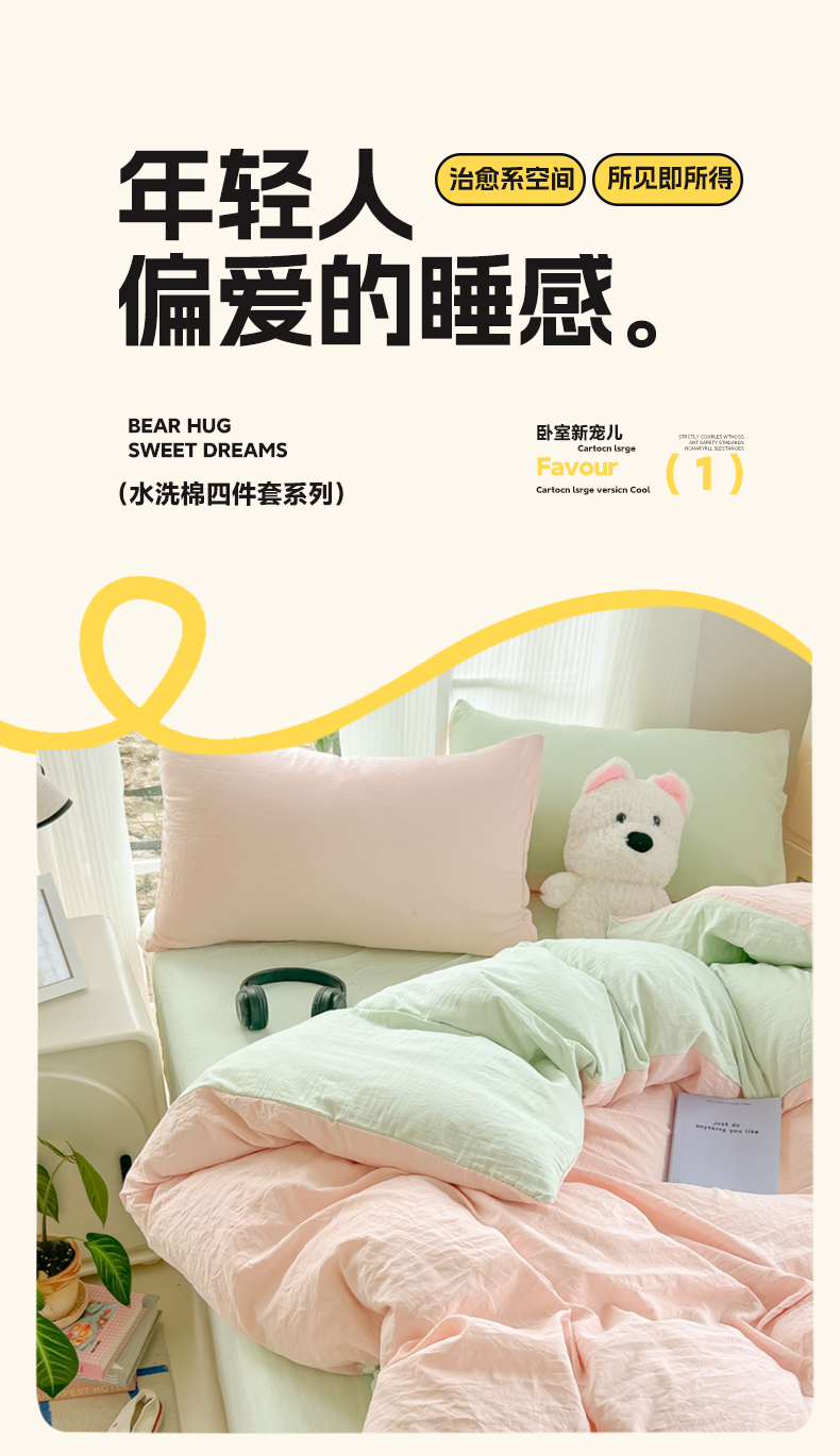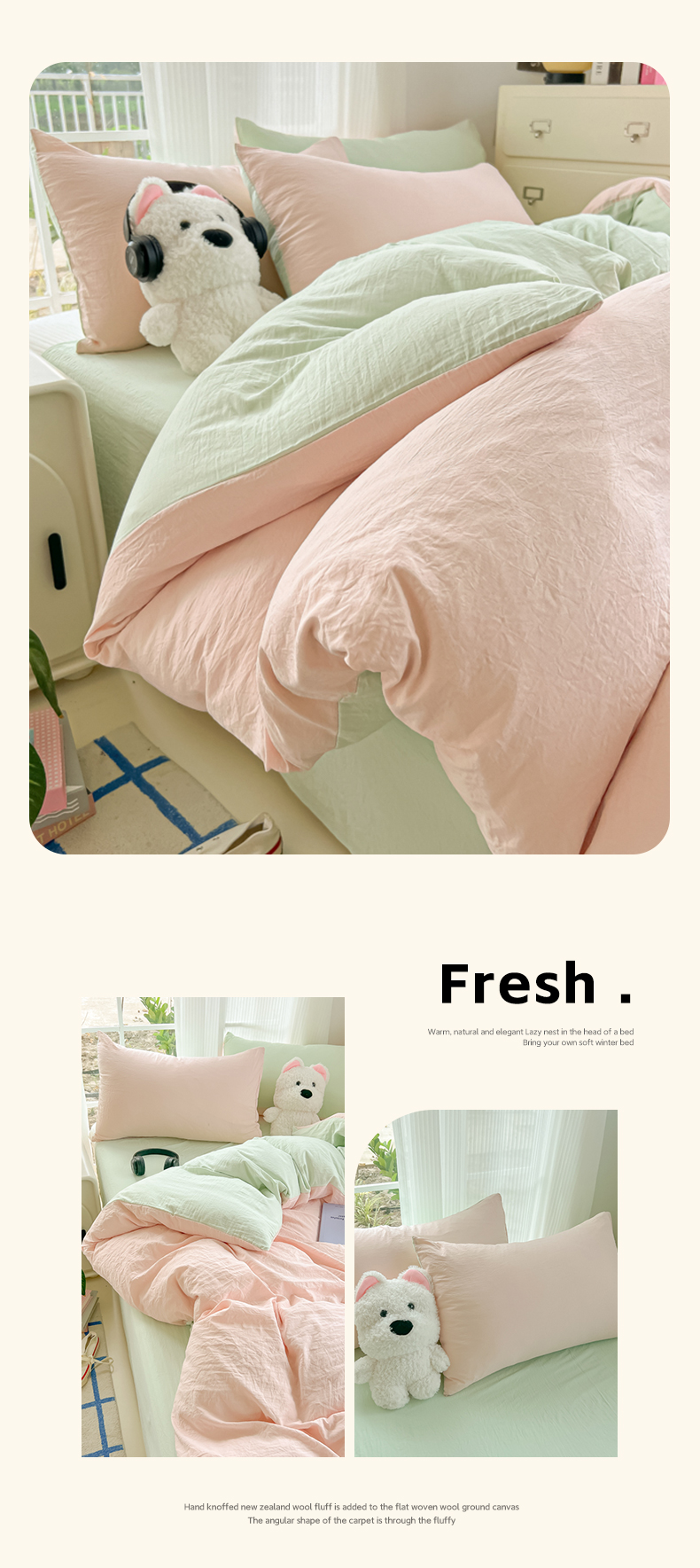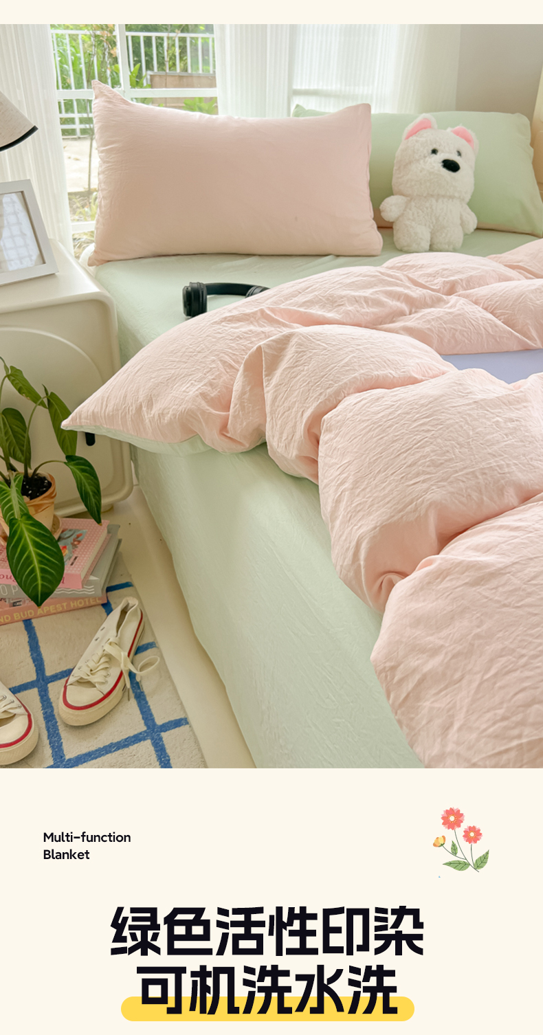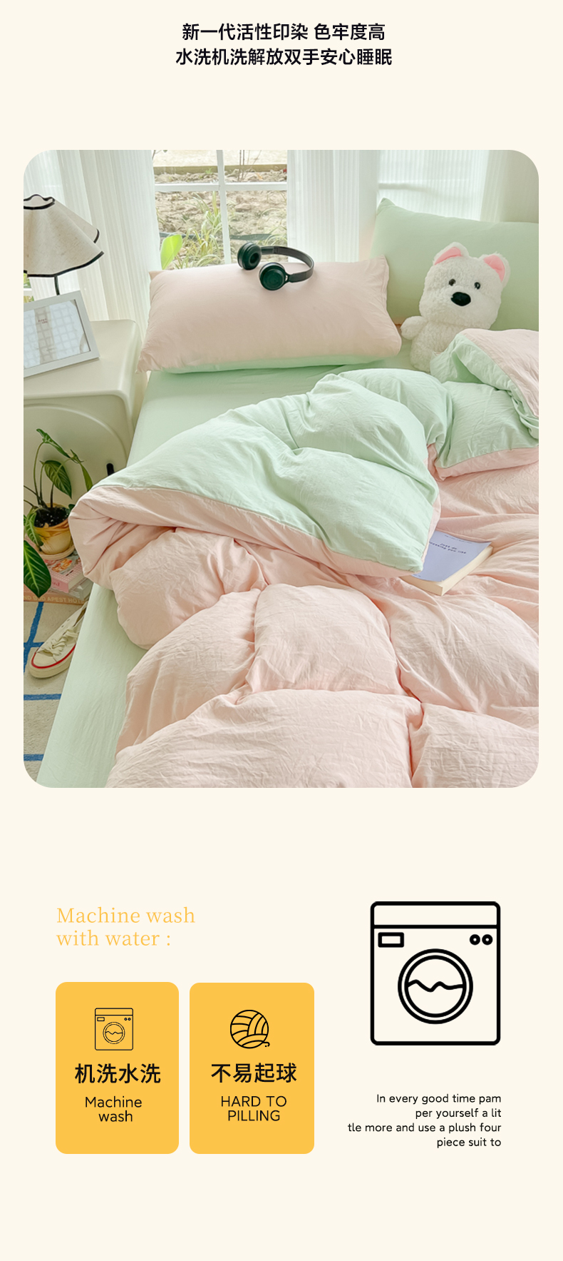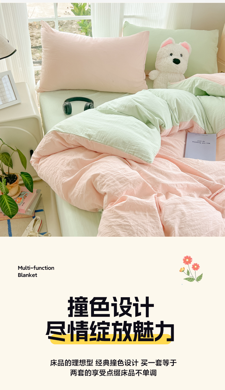 当前位置: 91家纺网 > 商品网购 > 床品套件 > 四件套 > 水洗棉四件套 > 韩巢家纺 2025新款ins风超柔水洗棉四件套-纯色双拼系列(提供卖家秀) 水洗棉浅粉绿