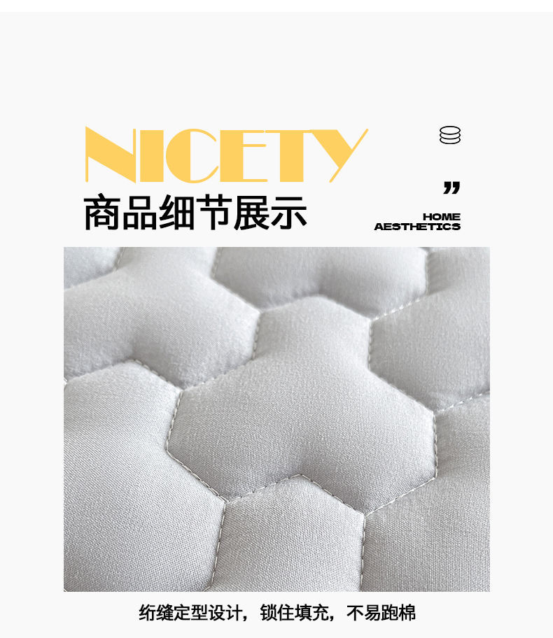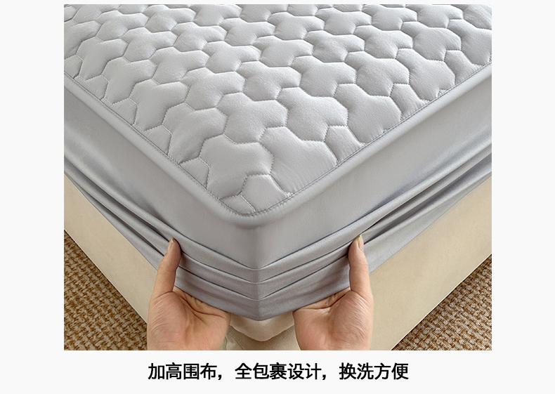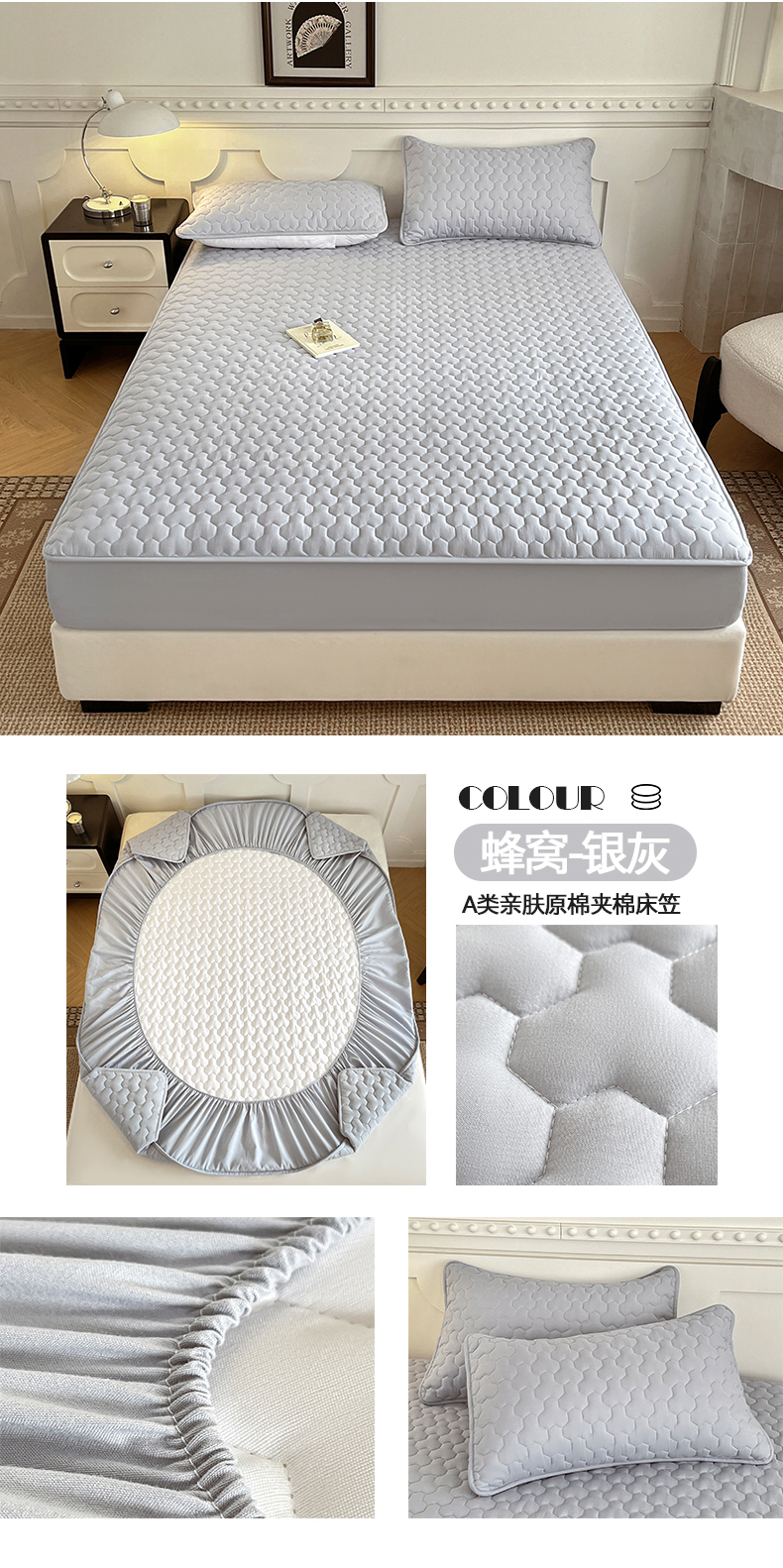 商品名称:迪梦思家纺 2025新款A类亲肤原棉夹棉床笠-蜂窝 蜂窝-银灰