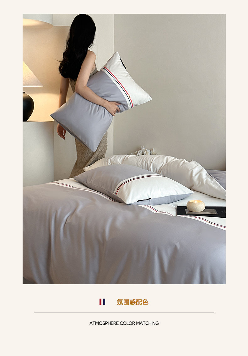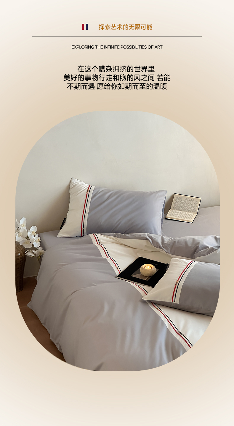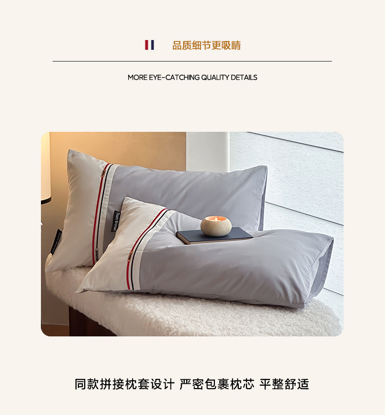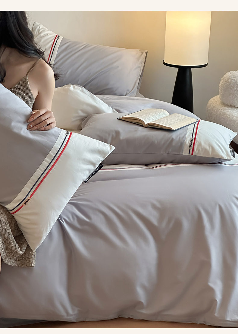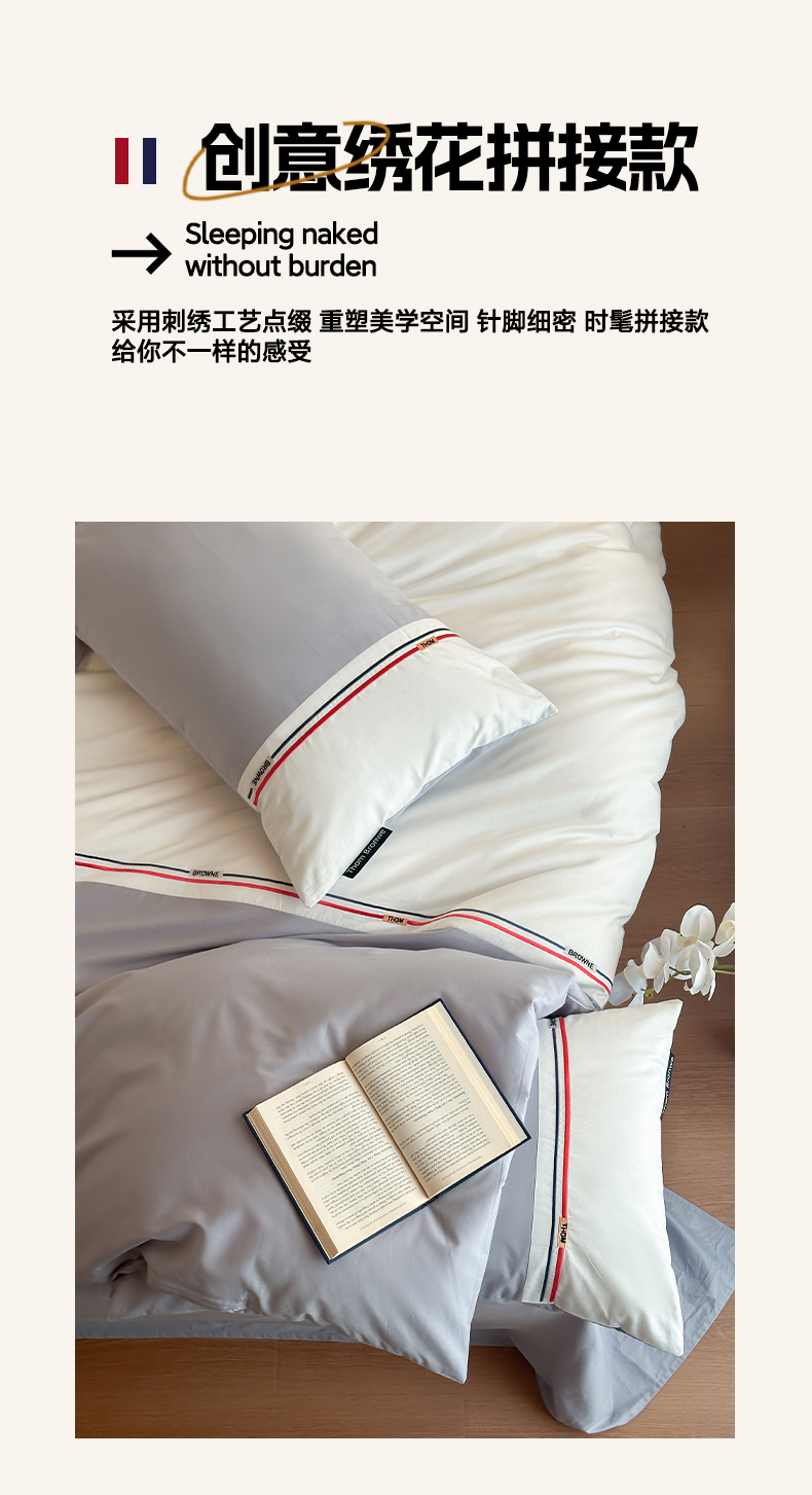 商品名称:卡巴伦家纺 2025新款全棉A类绣花拼接款四件套-布朗 布朗-绅士灰