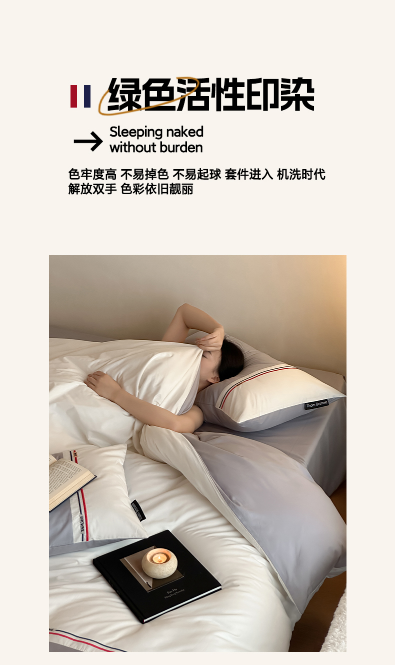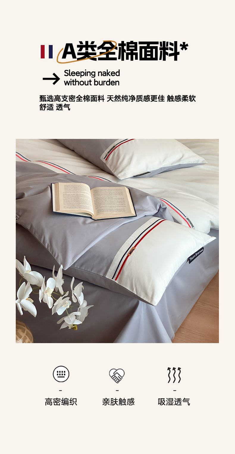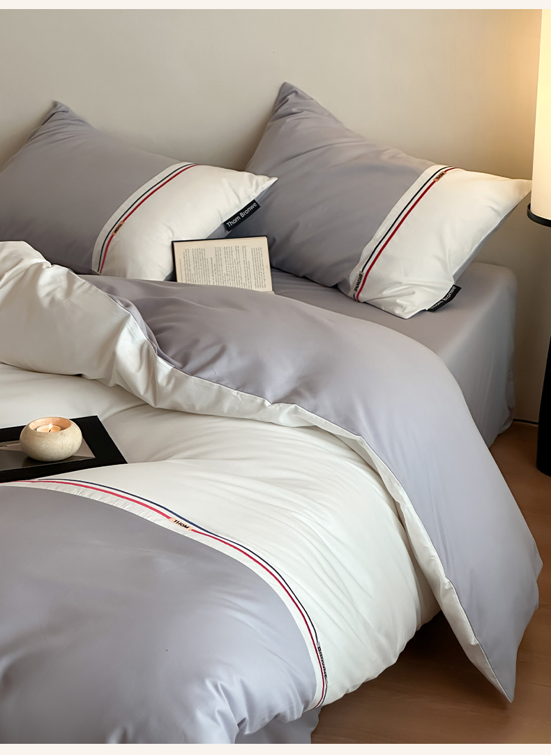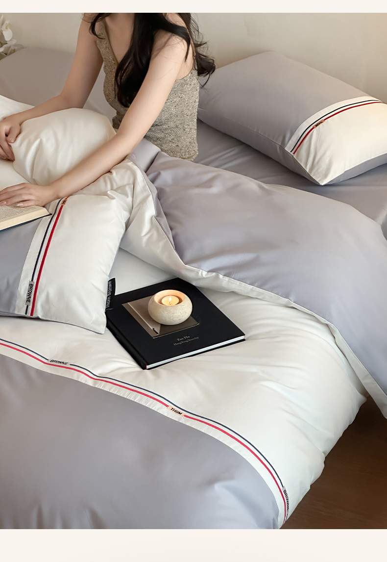 商品名称:卡巴伦家纺 2025新款全棉A类绣花拼接款四件套-布朗 布朗-绅士灰