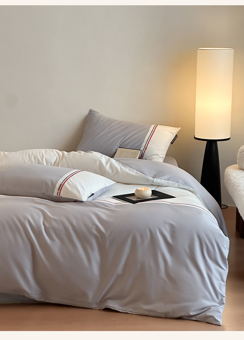 卡巴伦家纺 2025新款全棉A类绣花拼接款四件套-布朗 布朗-绅士灰