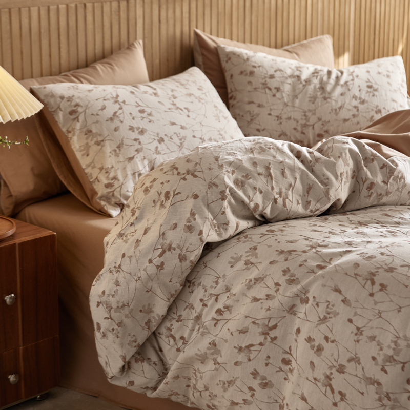 (总)简家居 2025新款亲肤舒适棉麻床盖三件套,棉麻提花