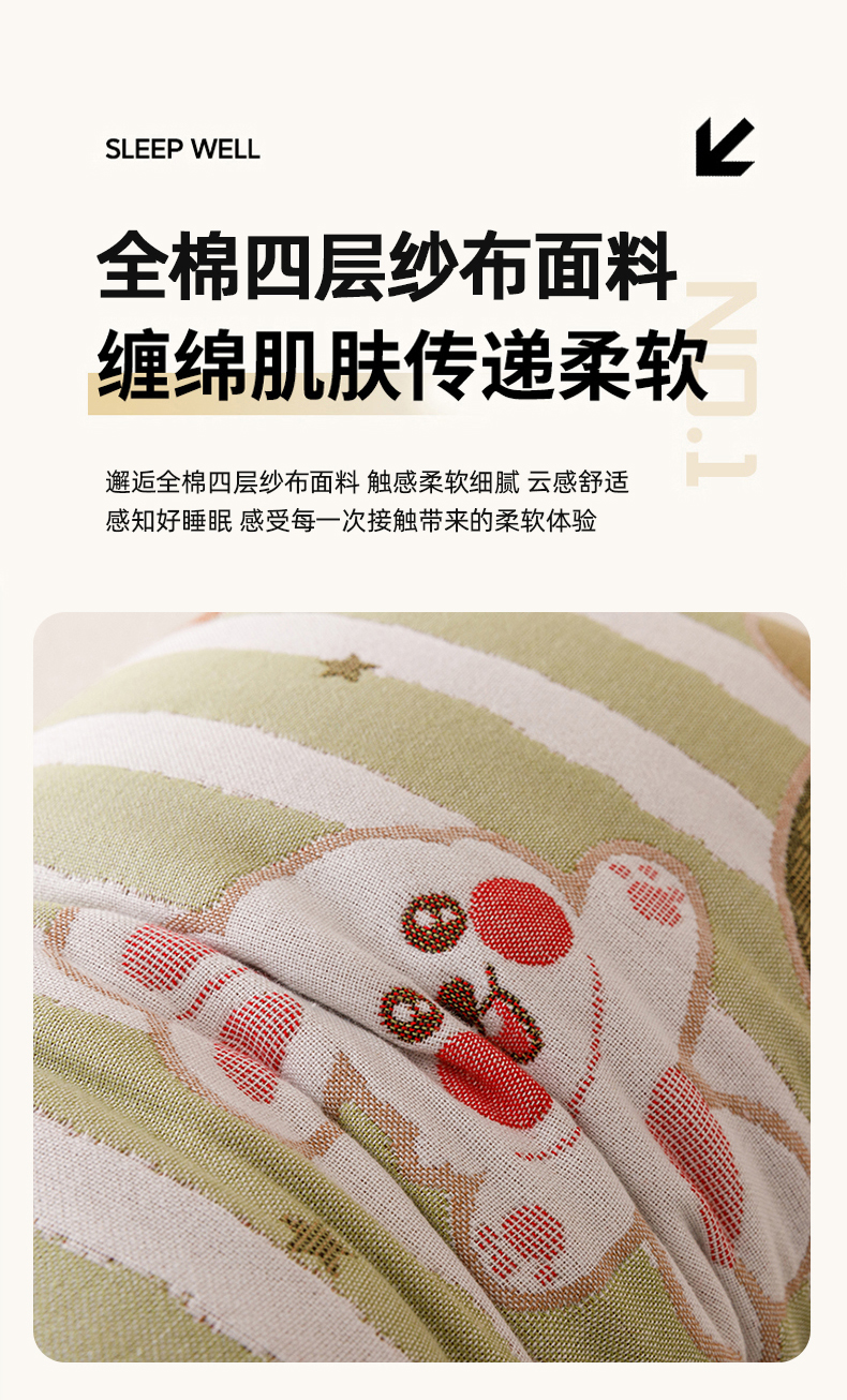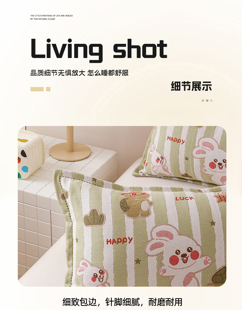 商品名称:悦然毛巾被 2025新款全棉四层纱布儿童枕套 龟兔伙伴