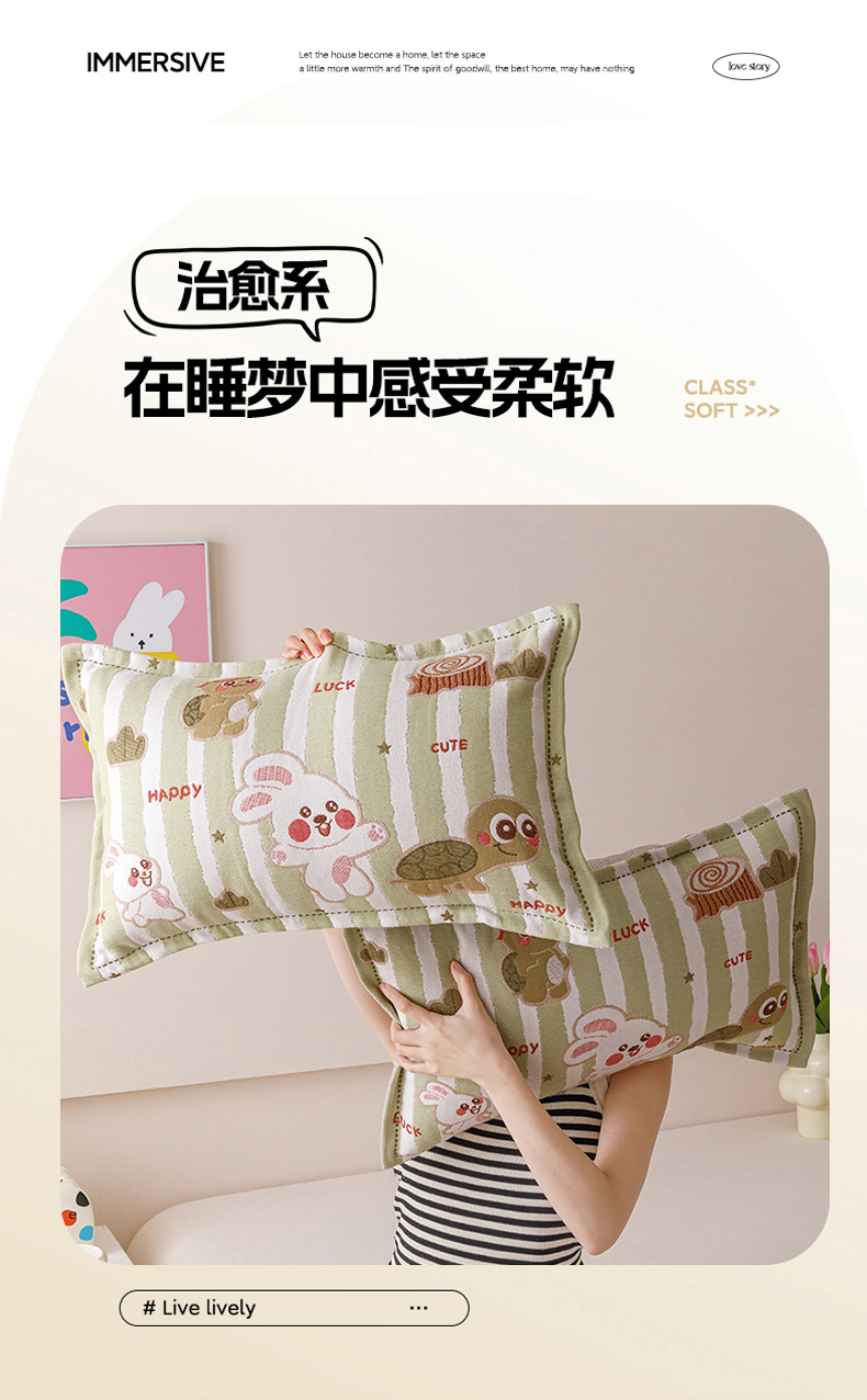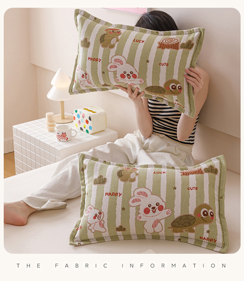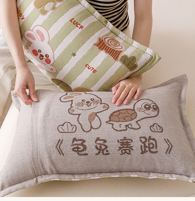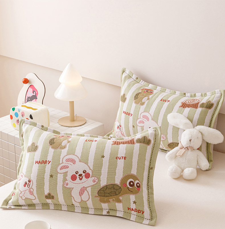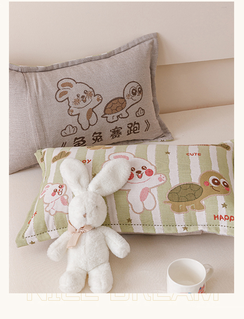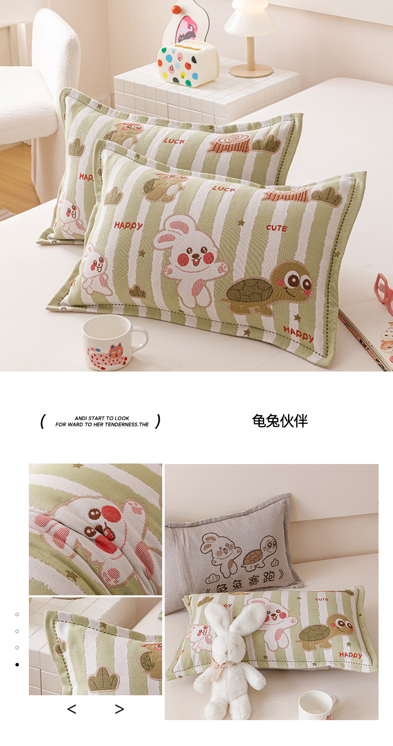 悦然毛巾被 2025新款全棉四层纱布儿童枕套 龟兔伙伴