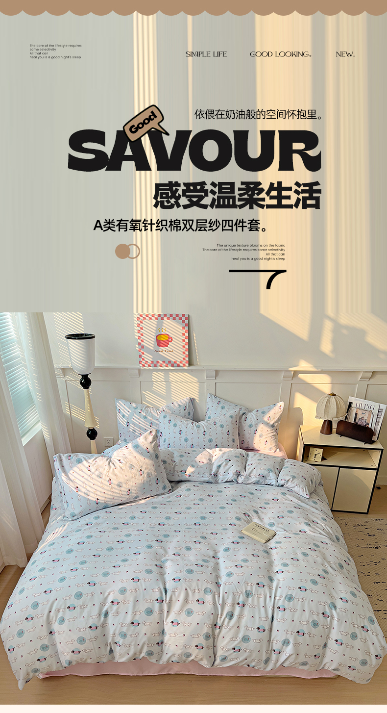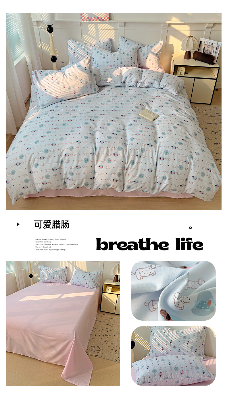 当前位置: 91家纺网 > 商品网购 > 床品套件 > 四件套 > 针织棉四件套 > 妖妖家纺 2025新款有氧针织棉双层纱四件套 可爱腊肠
