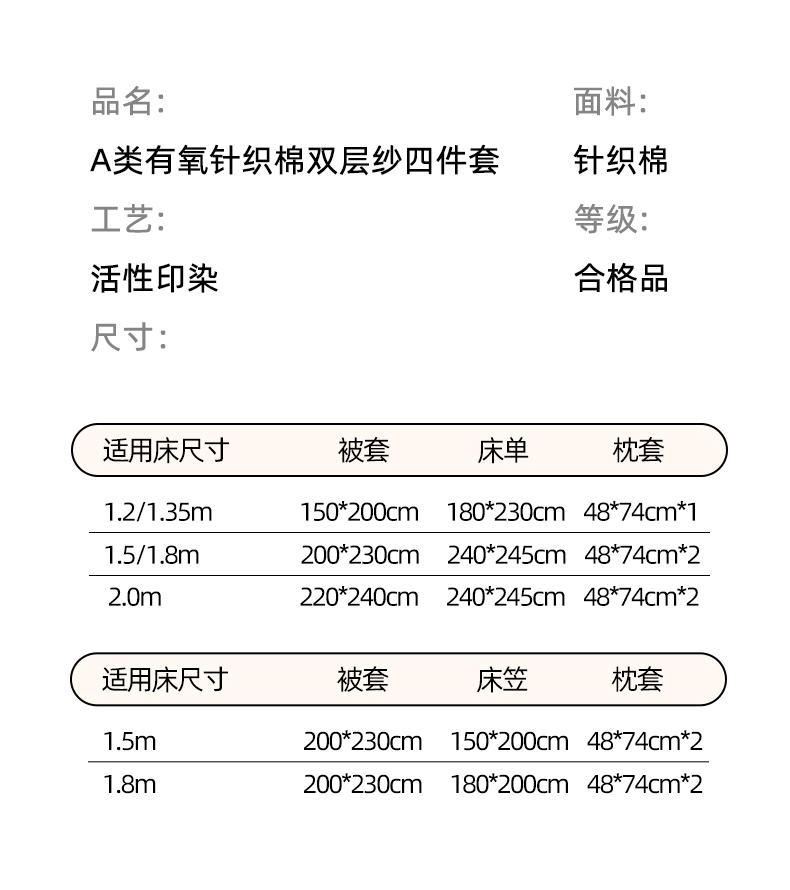 1.8m床笠款四件套 | ¥55.00 |