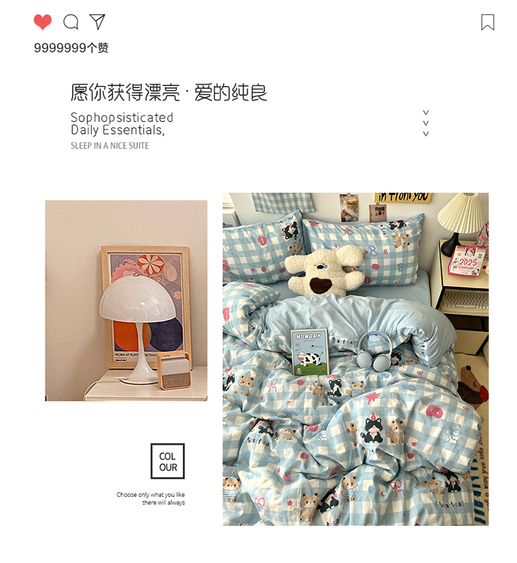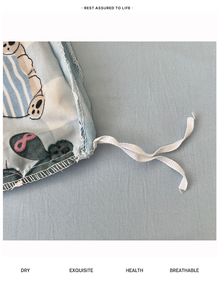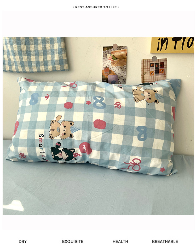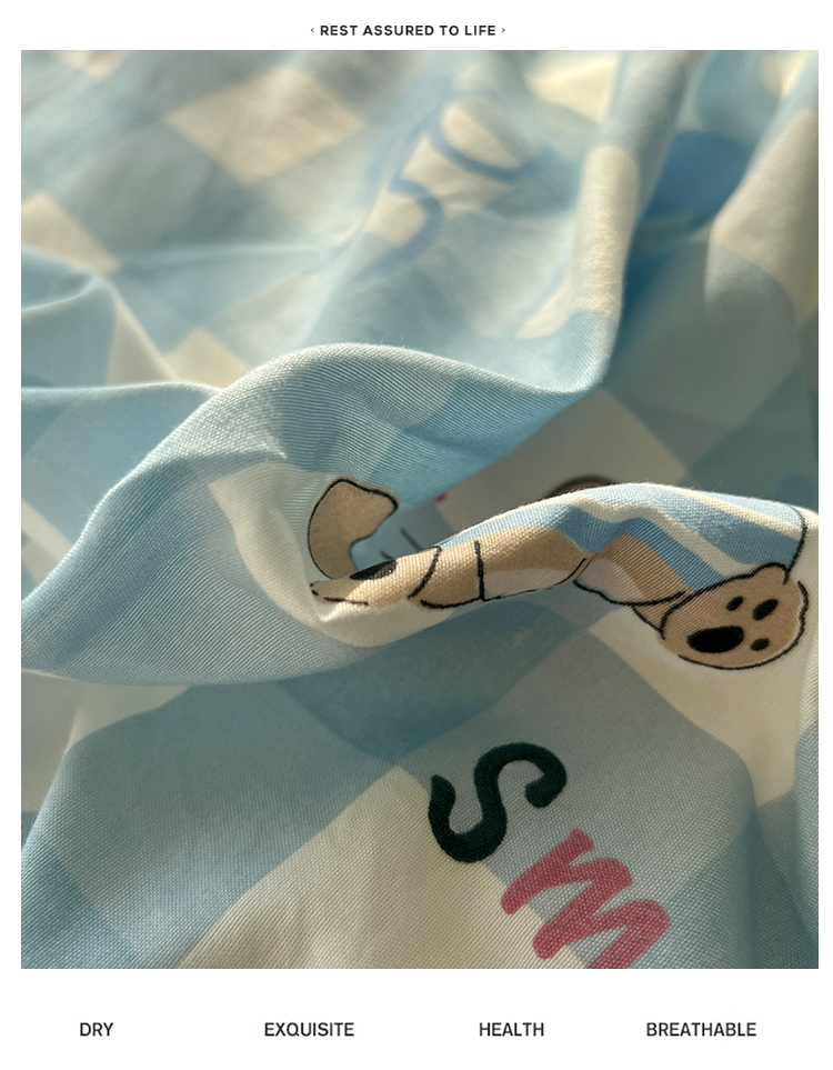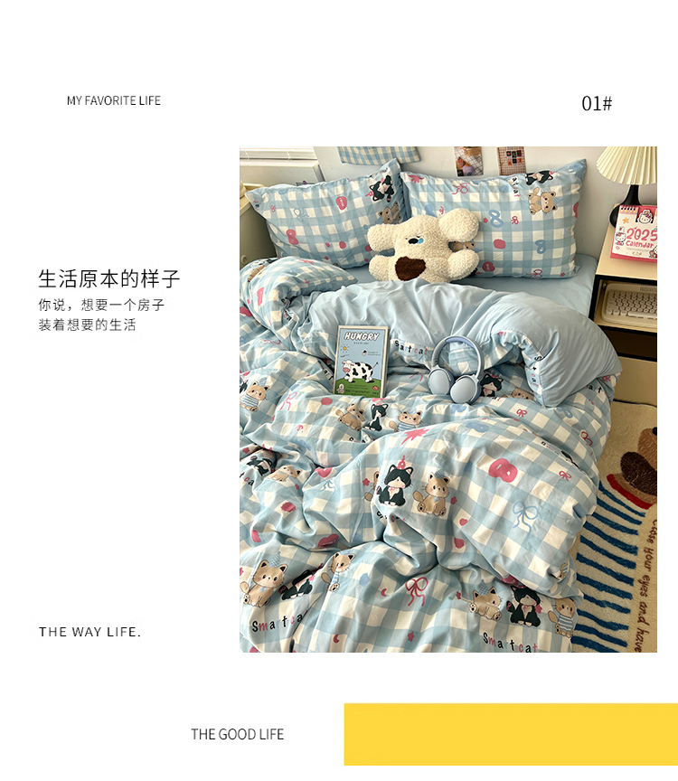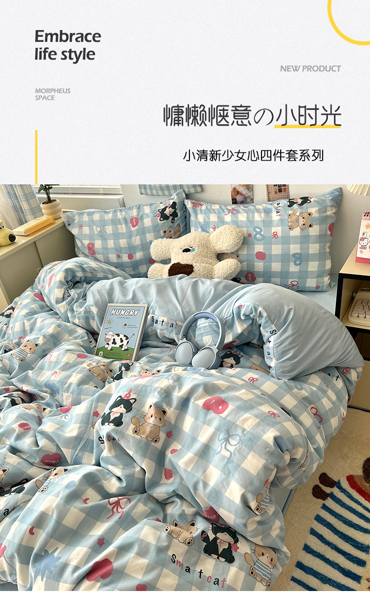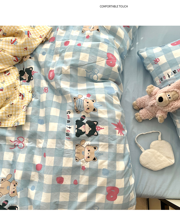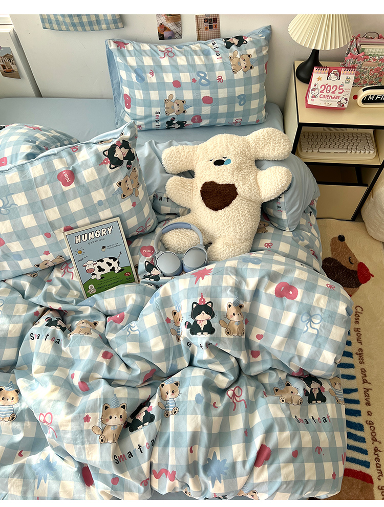 当前位置: 91家纺网 > 商品网购 > 床品套件 > 四件套 > 其它四件套 > 原素 2025软绵绵的双拼印花水洗棉四件套 蓝格萌萌猫