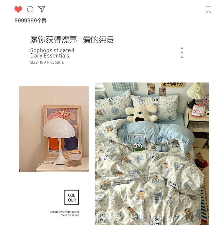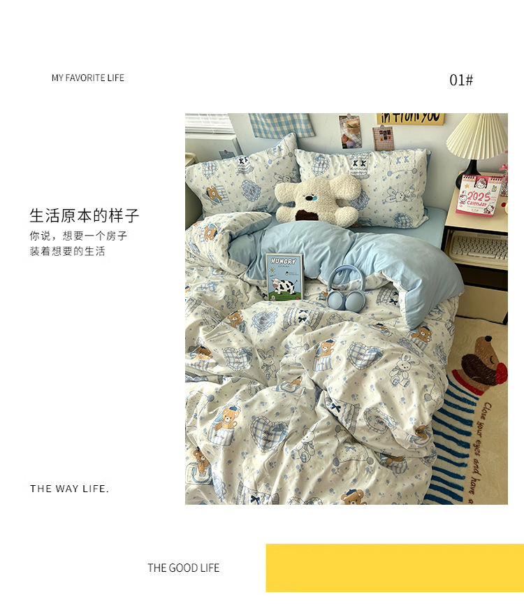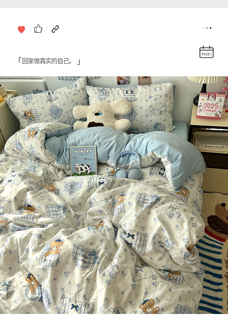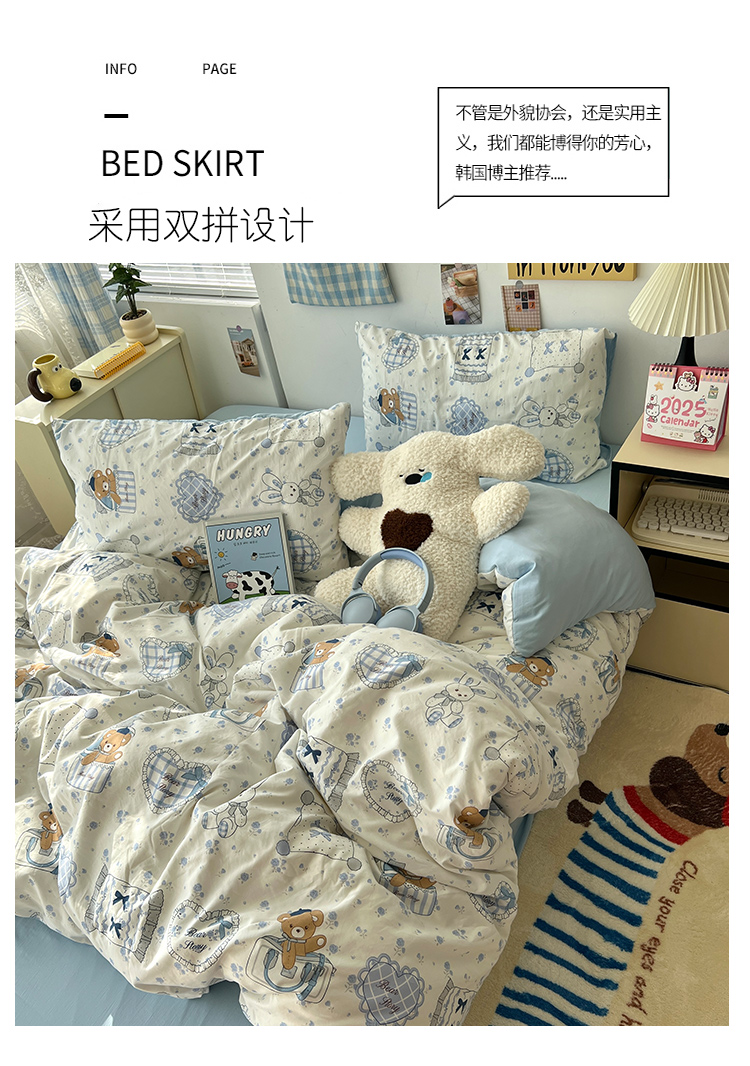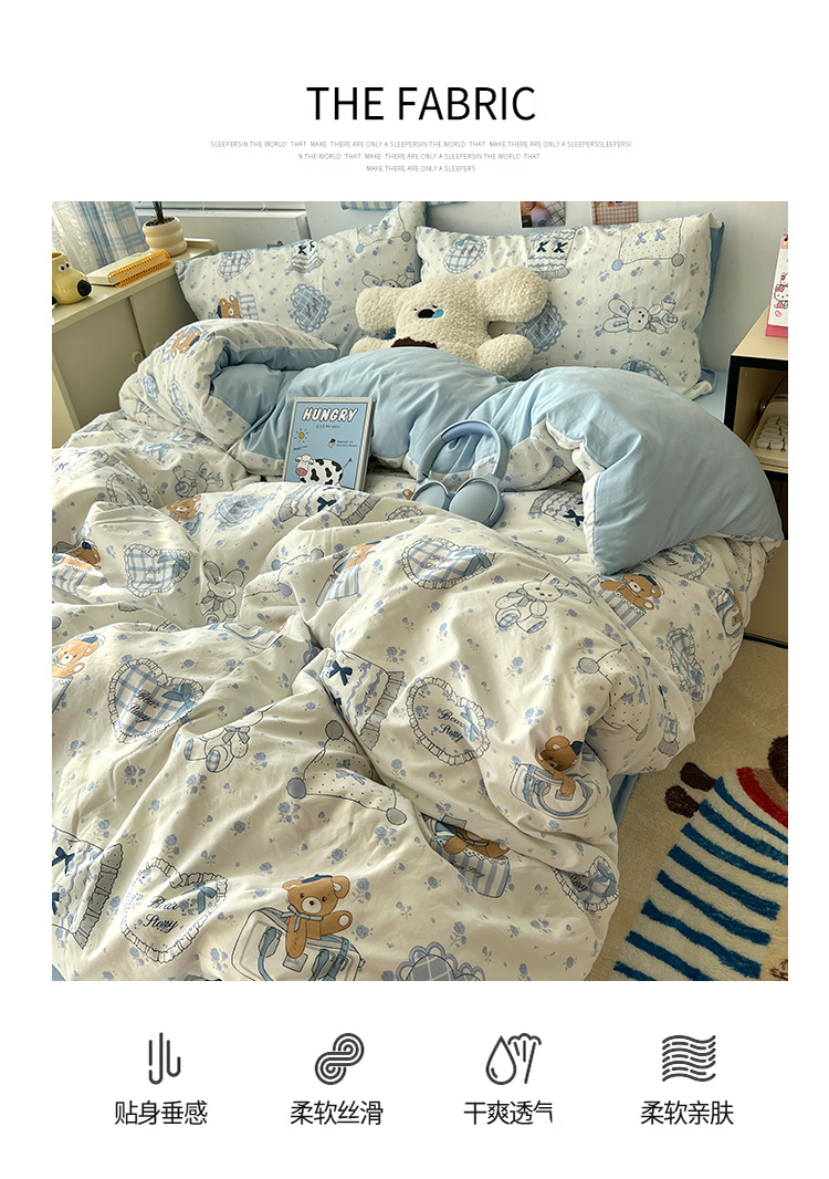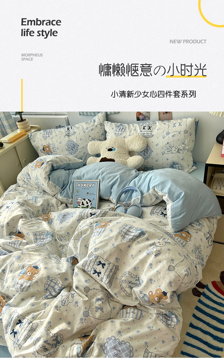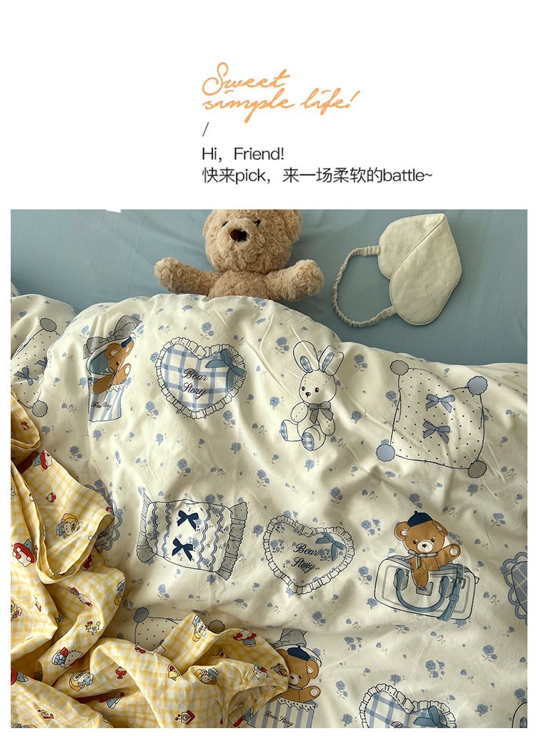 当前位置: 91家纺网 > 商品网购 > 床品套件 > 四件套 > 其它四件套 > 原素 2025软绵绵的双拼印花水洗棉四件套 小熊包包
