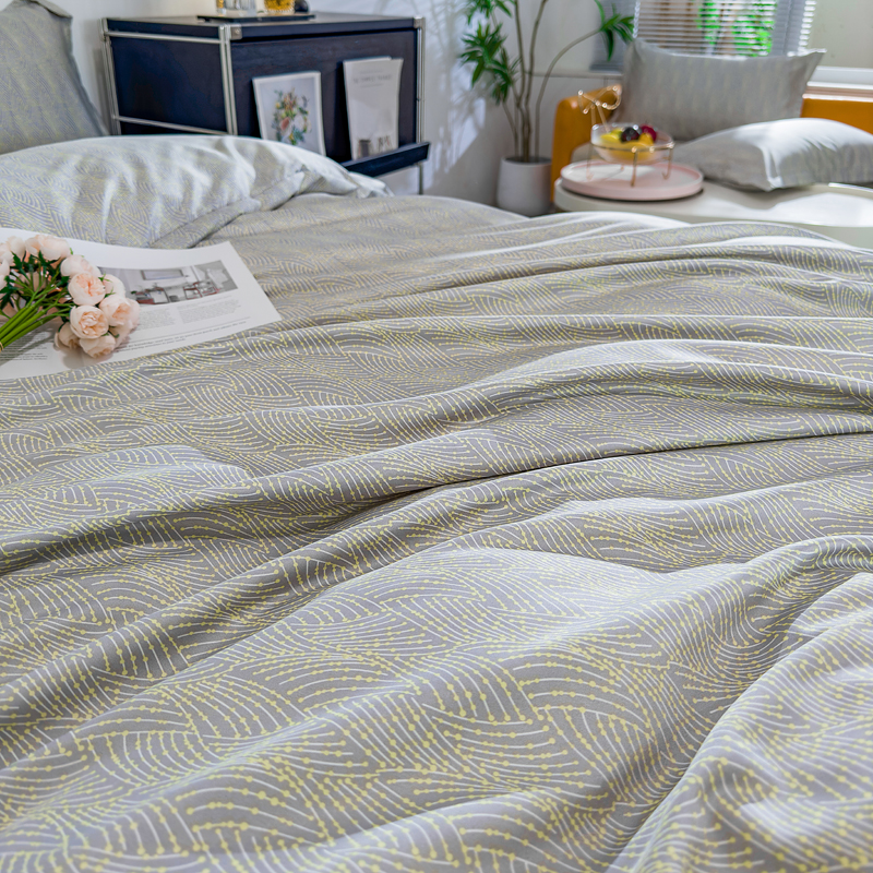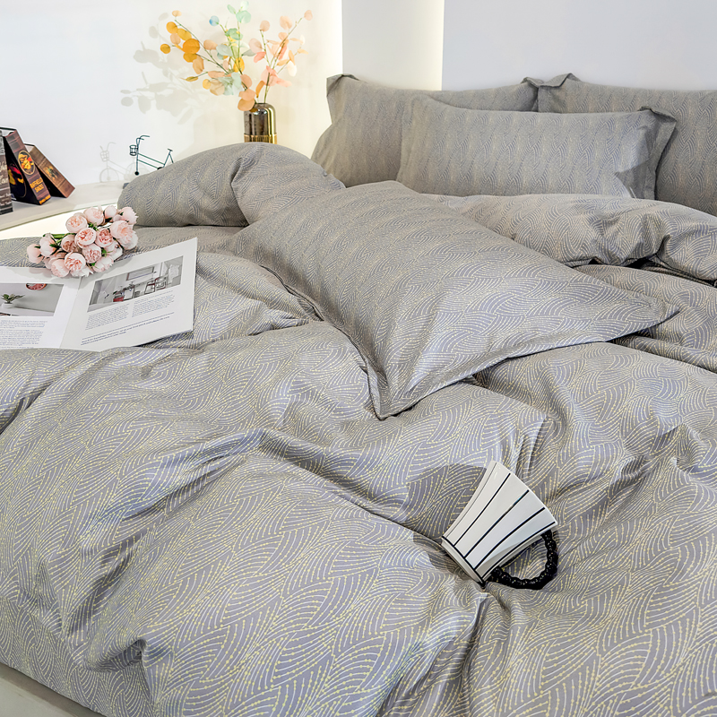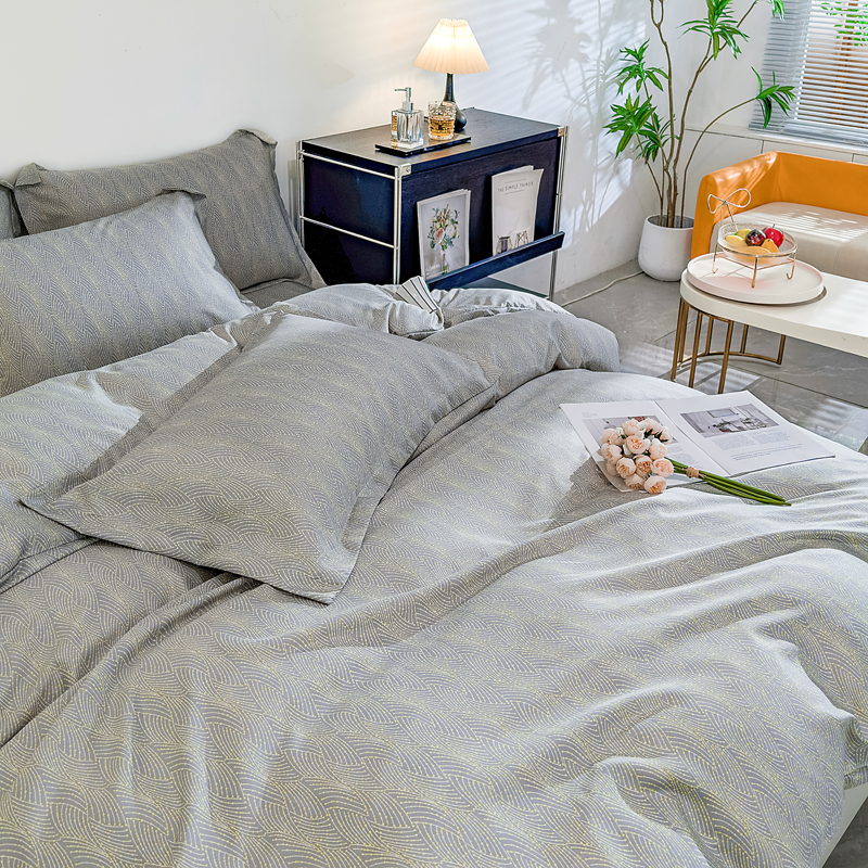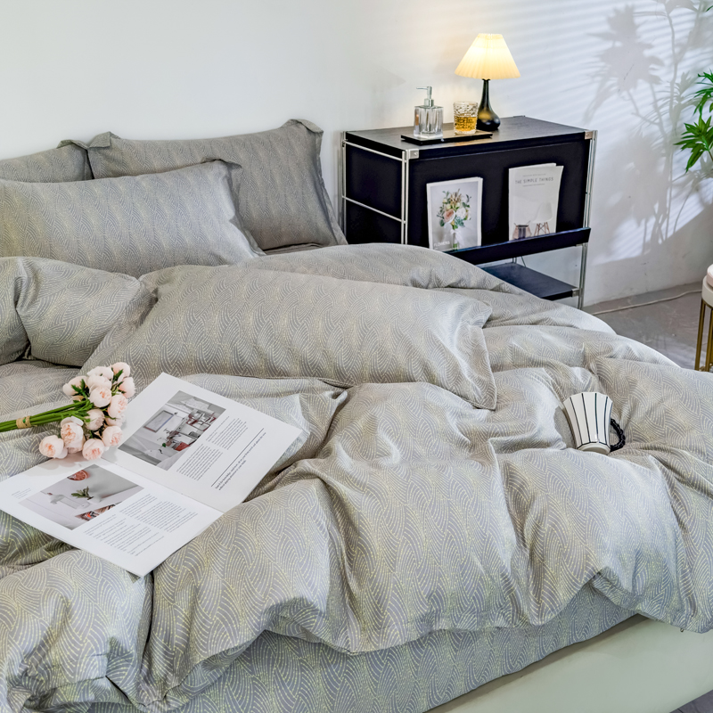 商品名称:耀悦家纺 2025新款水洗真丝四件套简约印花小清新欧式ins新中式冰丝四件套 时代年轮