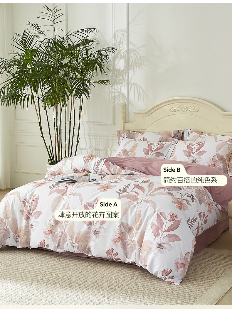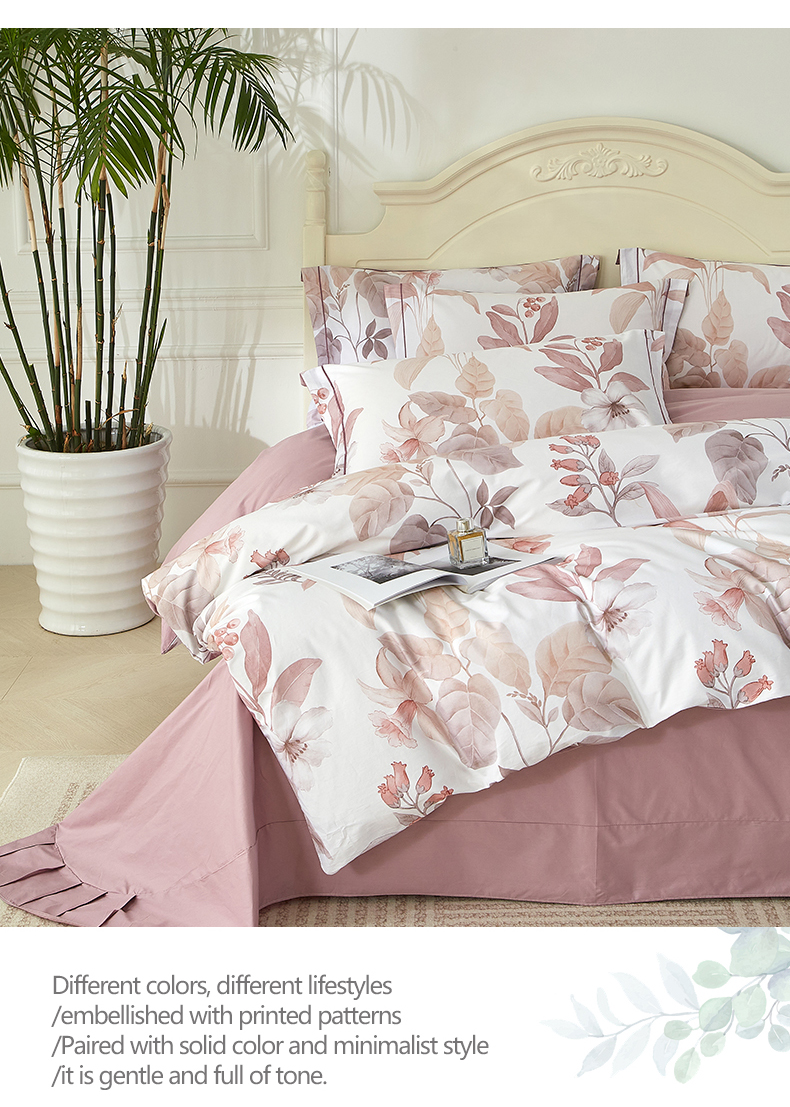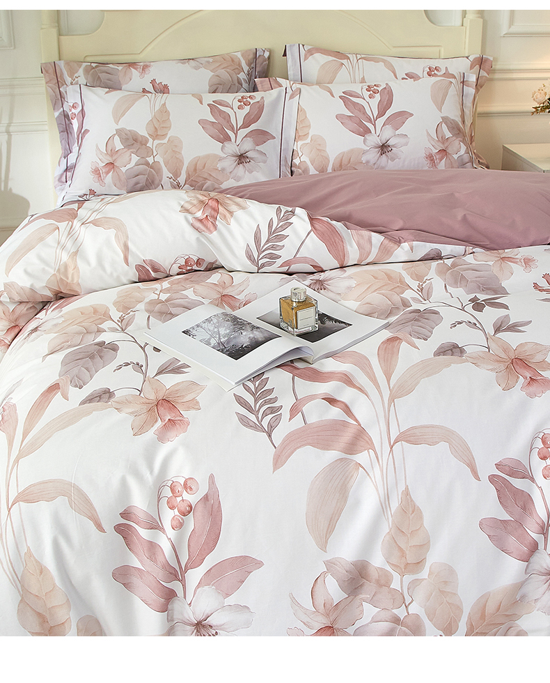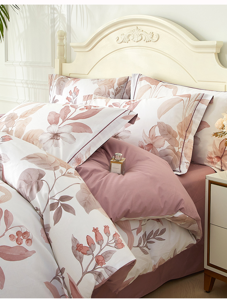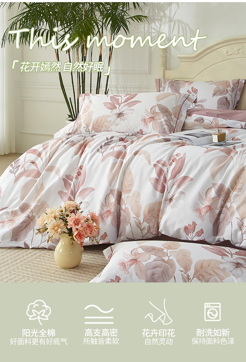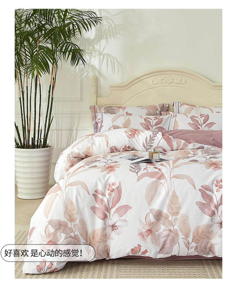 曼秀琳 2025新款铂金棉数码印花四件套(全棉133*76) 青青蔓草-粉