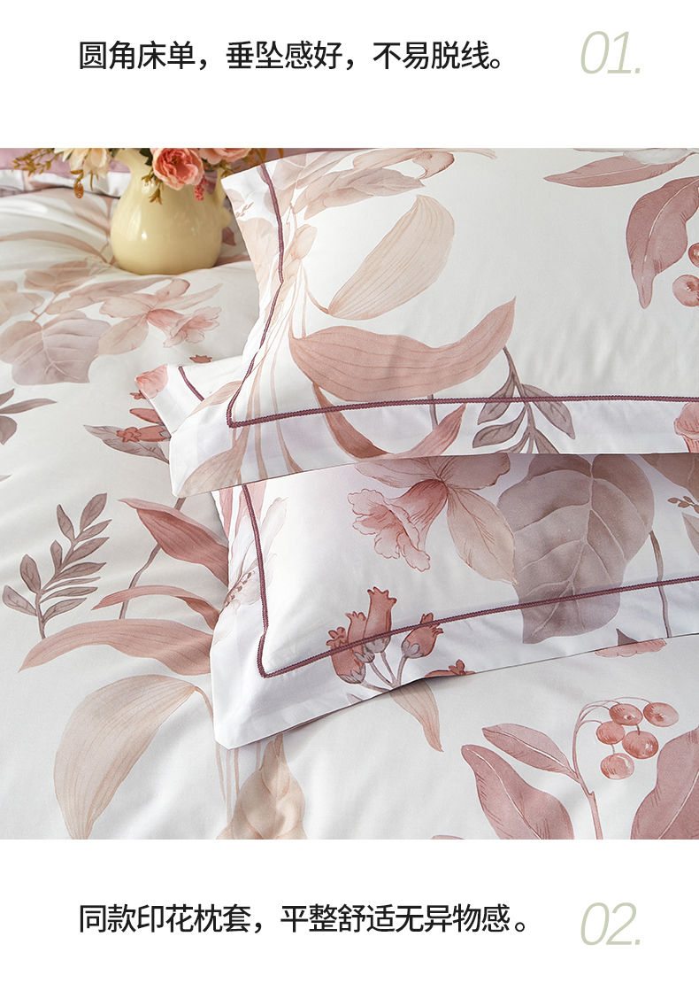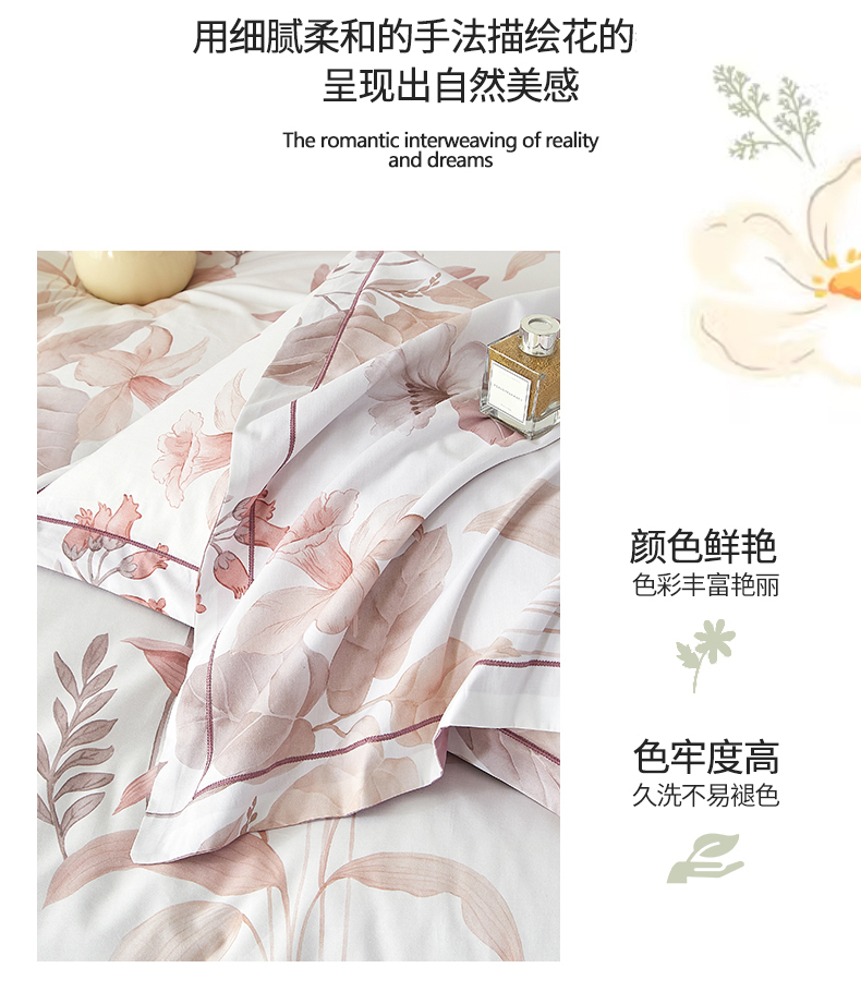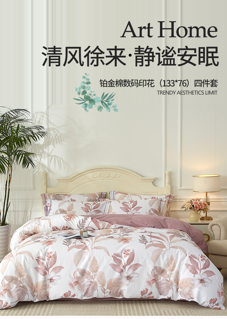 商品名称:曼秀琳 2025新款铂金棉数码印花四件套(全棉133*76) 青青蔓草-粉