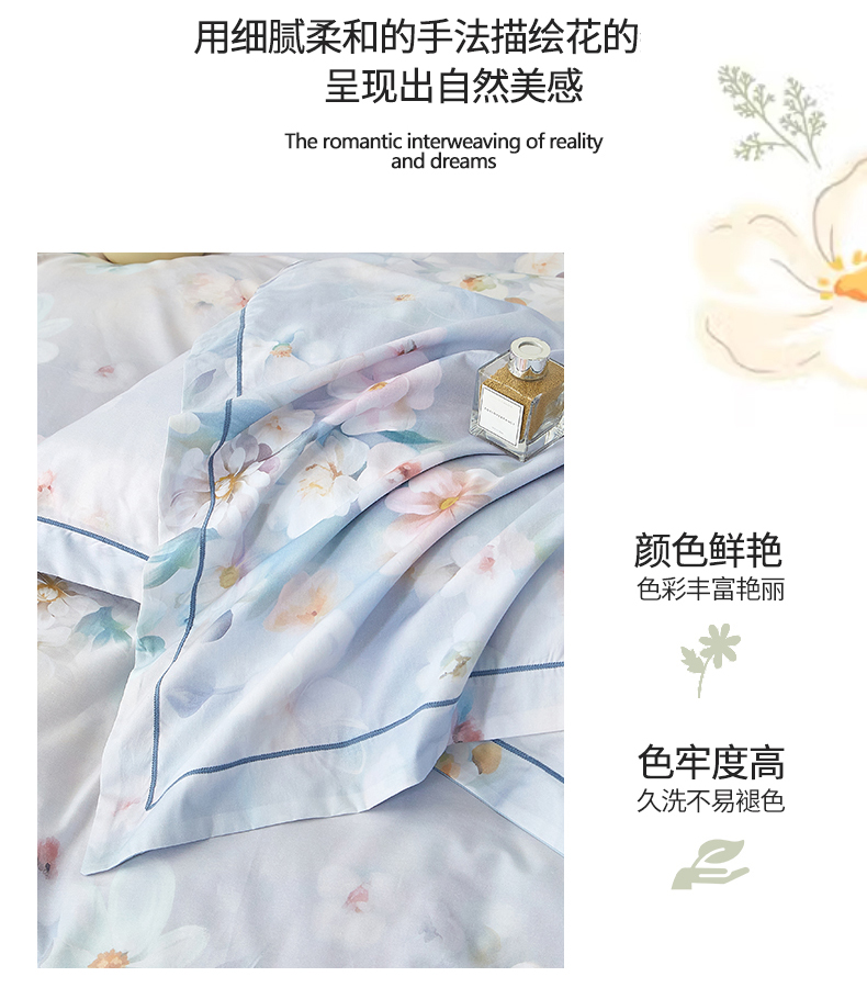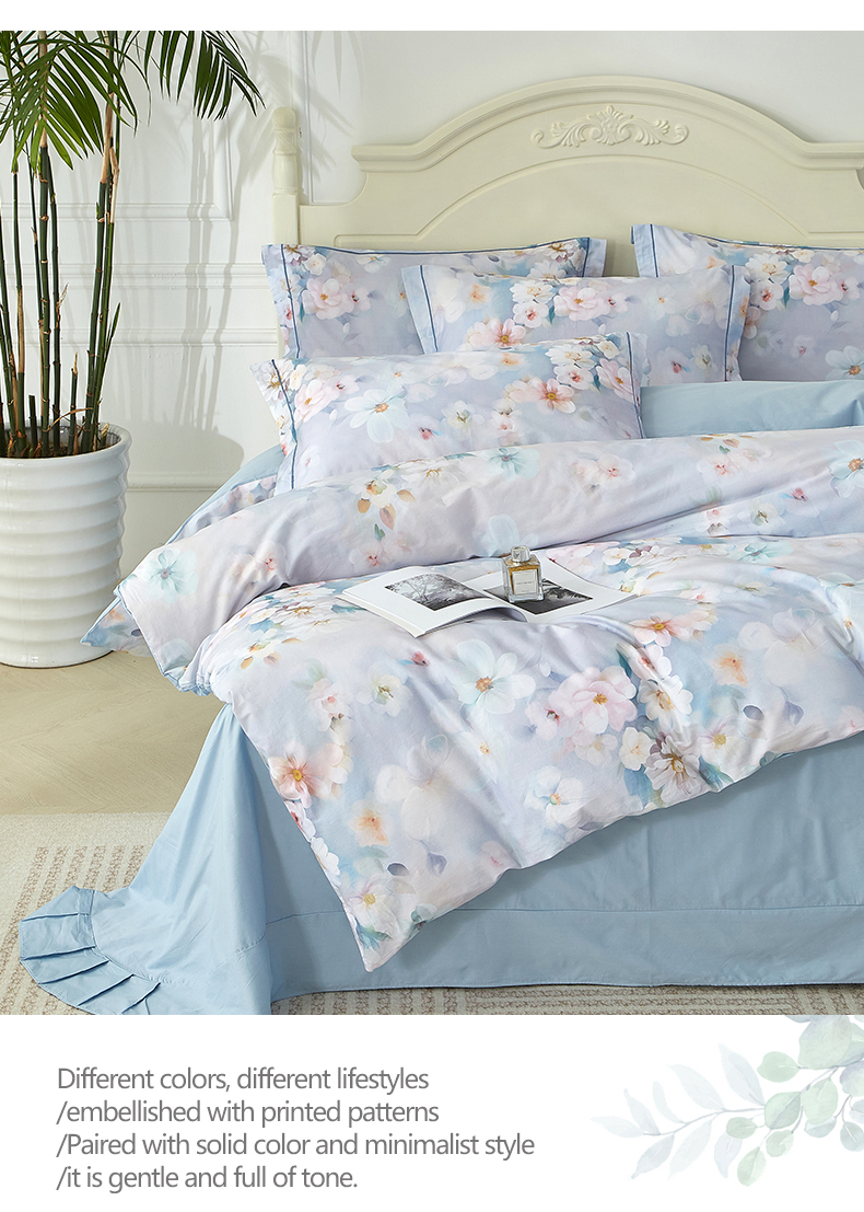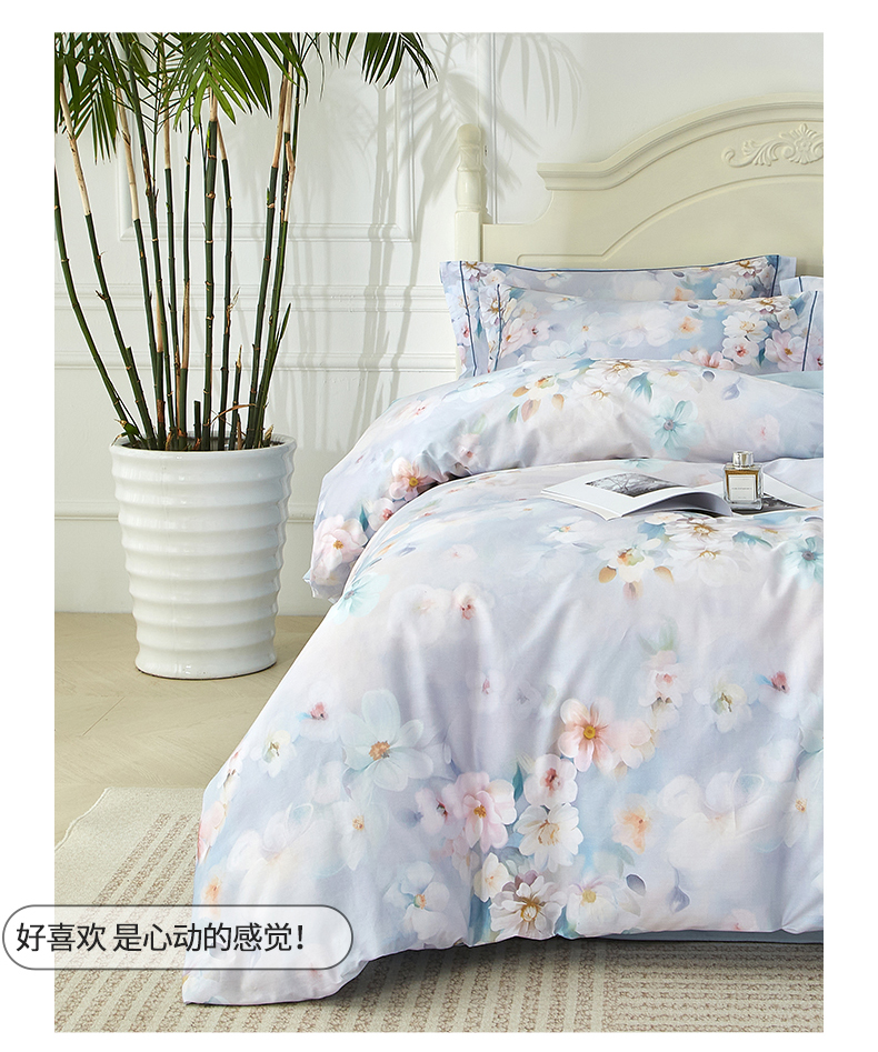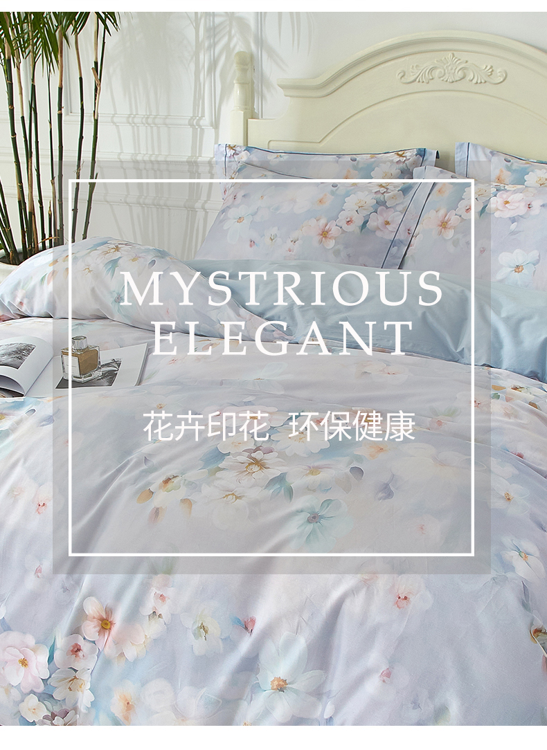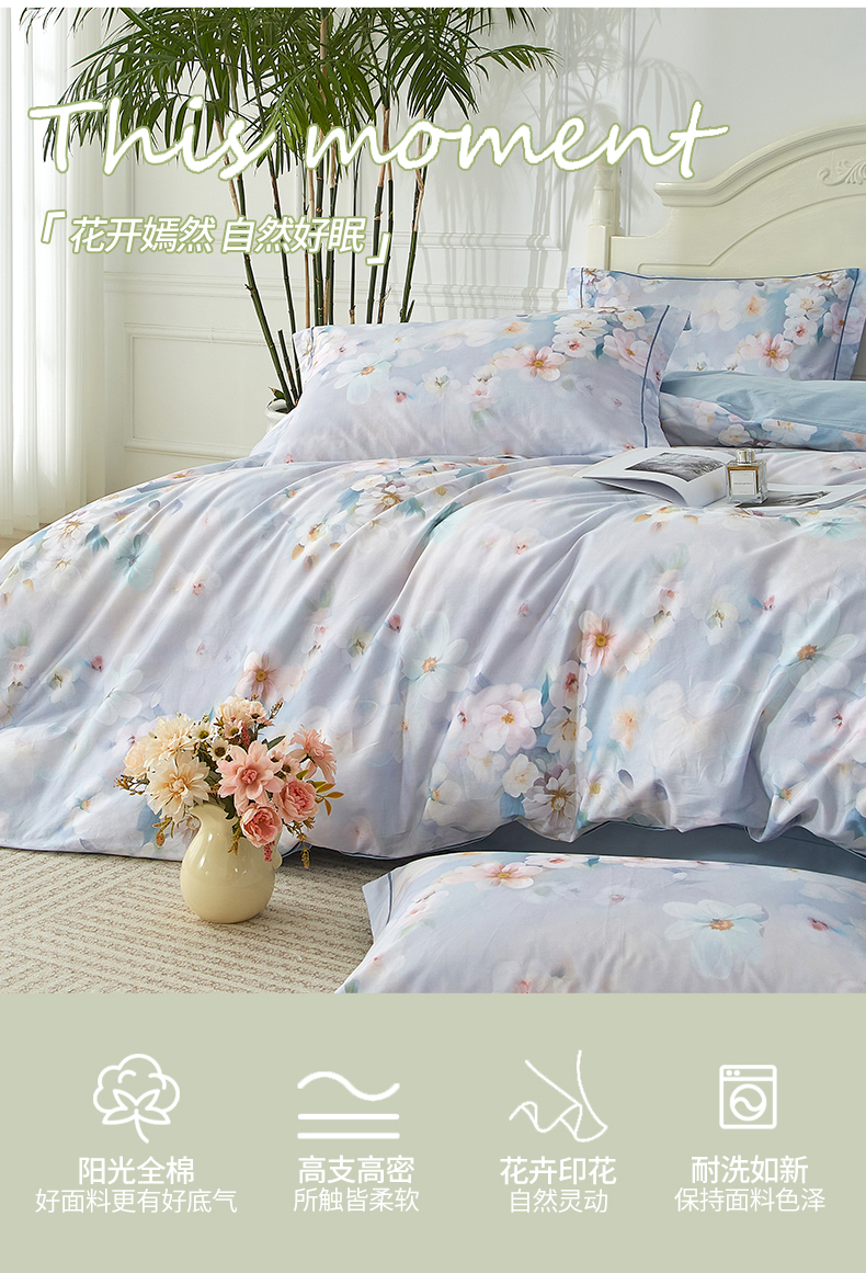 曼秀琳 2025新款铂金棉数码印花四件套(全棉133*76) 水中月-兰