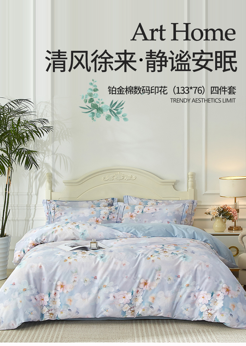 商品名称:曼秀琳 2025新款铂金棉数码印花四件套(全棉133*76) 水中月-兰