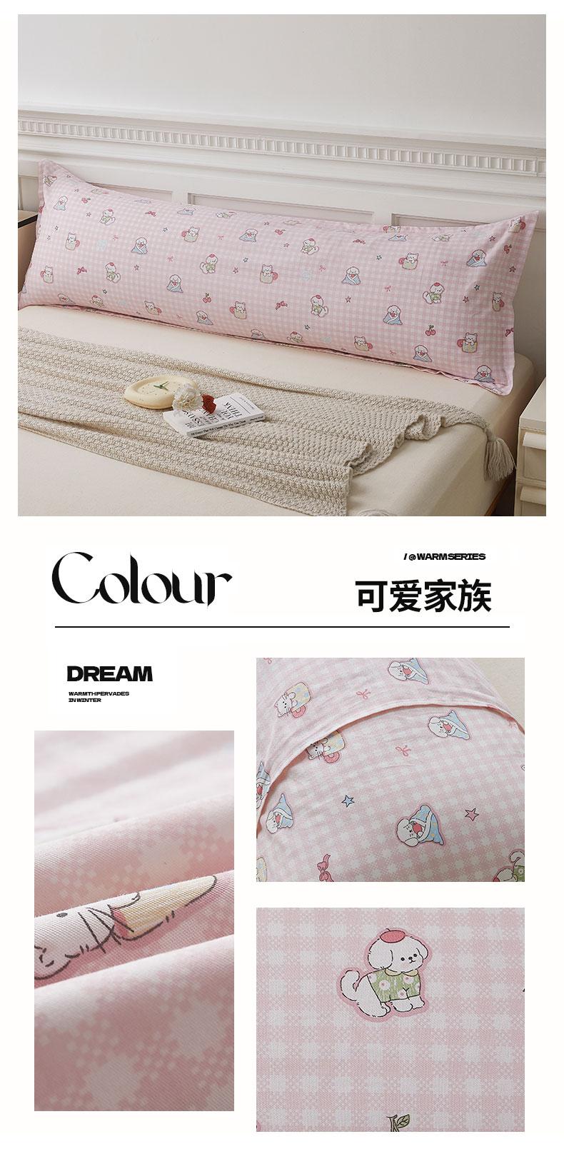 翎盈家纺 2025新款纯棉小清新双人枕套 可爱家族
