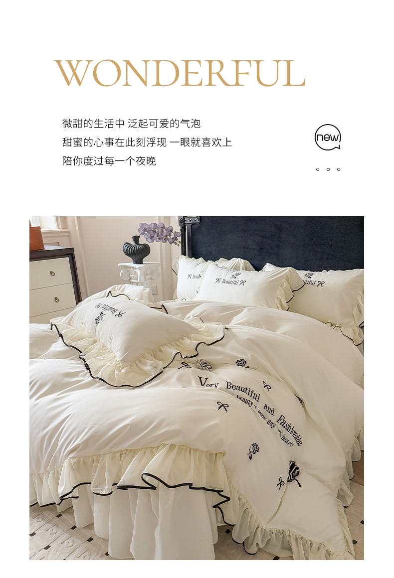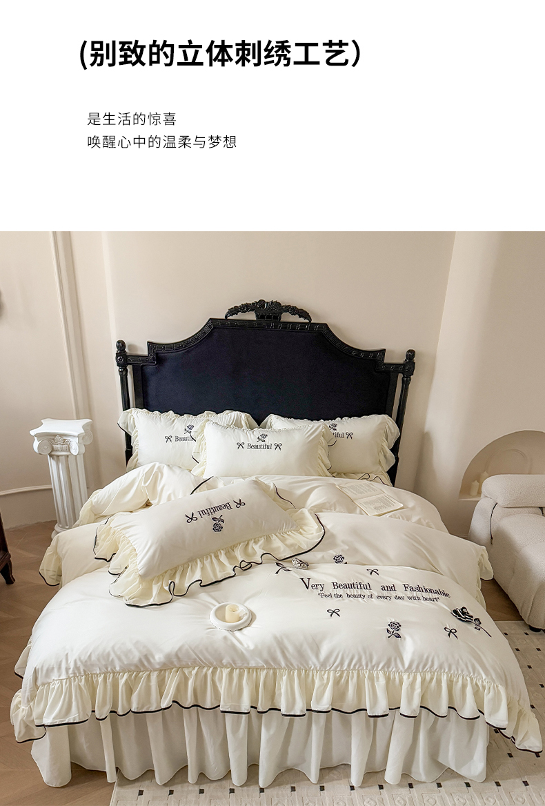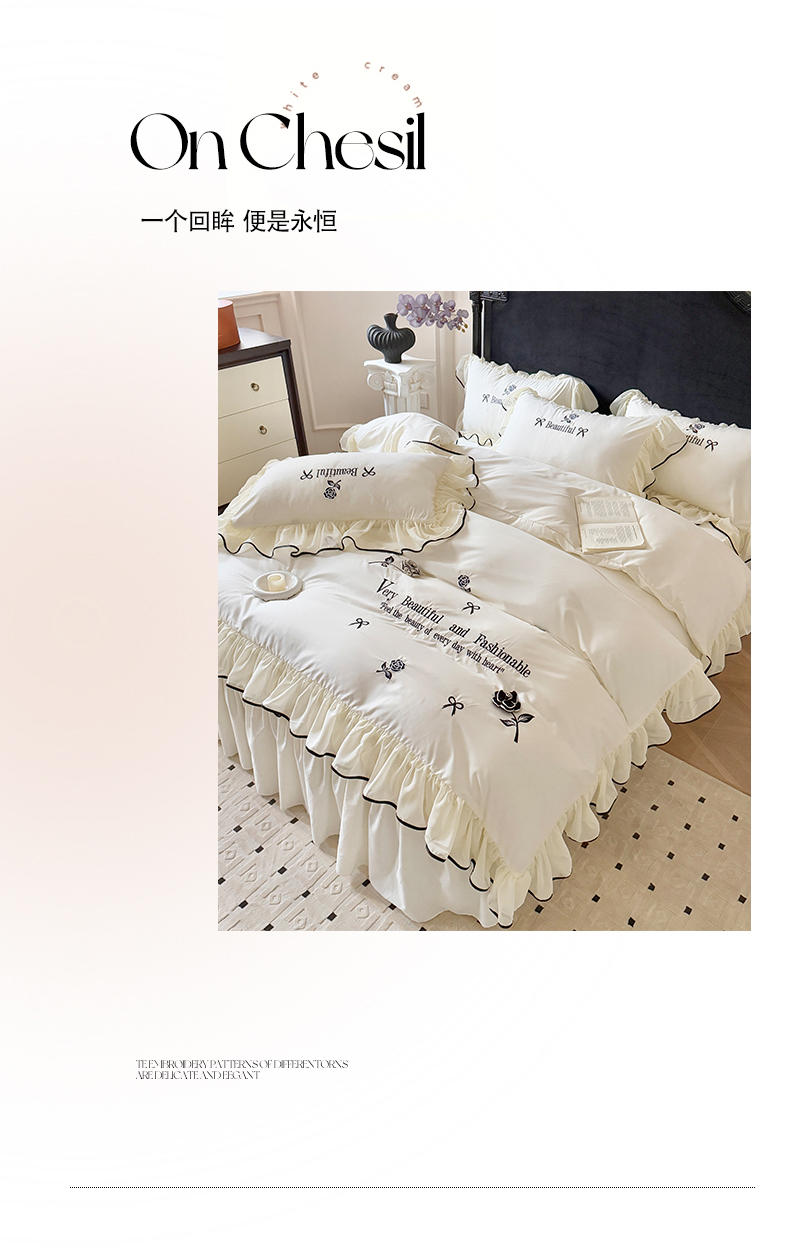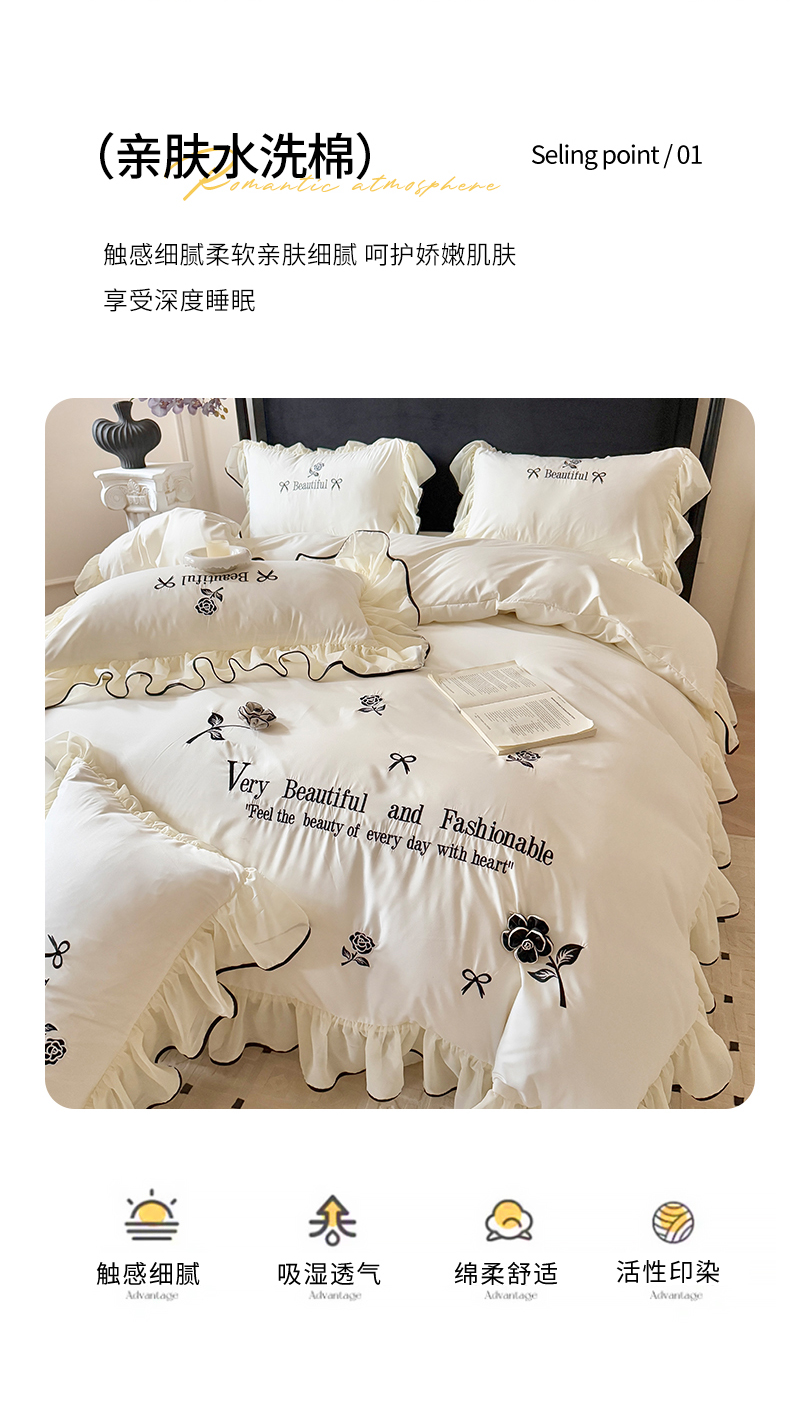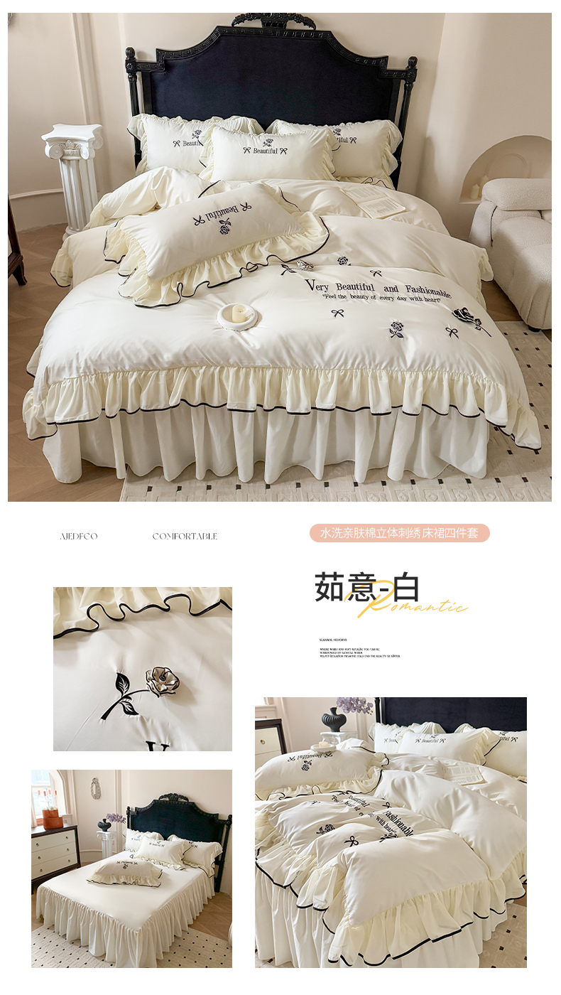 当前位置: 91家纺网 > 商品网购 > 床品套件 > 四件套 > 水洗棉四件套 > 富盛家纺 2025新款水洗亲肤棉刺绣床裙款四件套公主风四件套 茹意—白