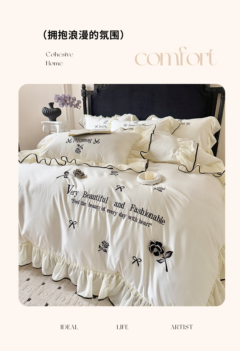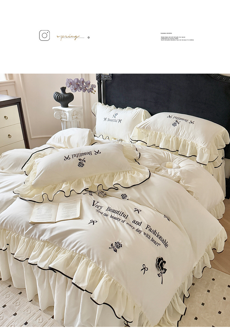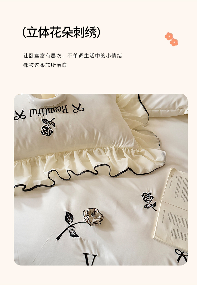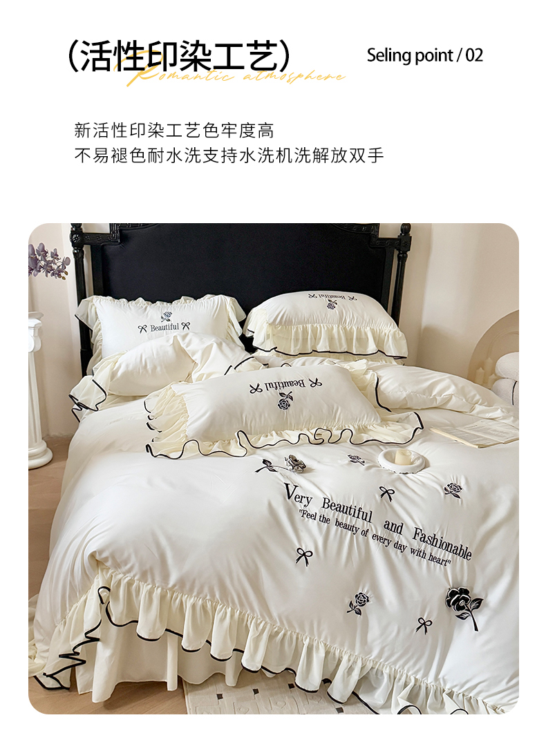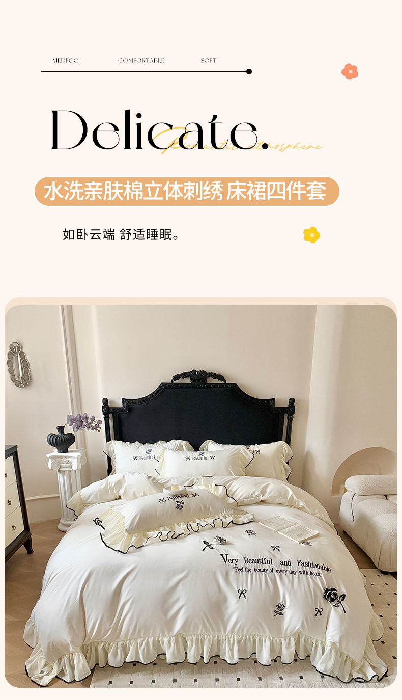 当前位置: 91家纺网 > 商品网购 > 床品套件 > 四件套 > 水洗棉四件套 > 富盛家纺 2025新款水洗亲肤棉刺绣床裙款四件套公主风四件套 茹意—白