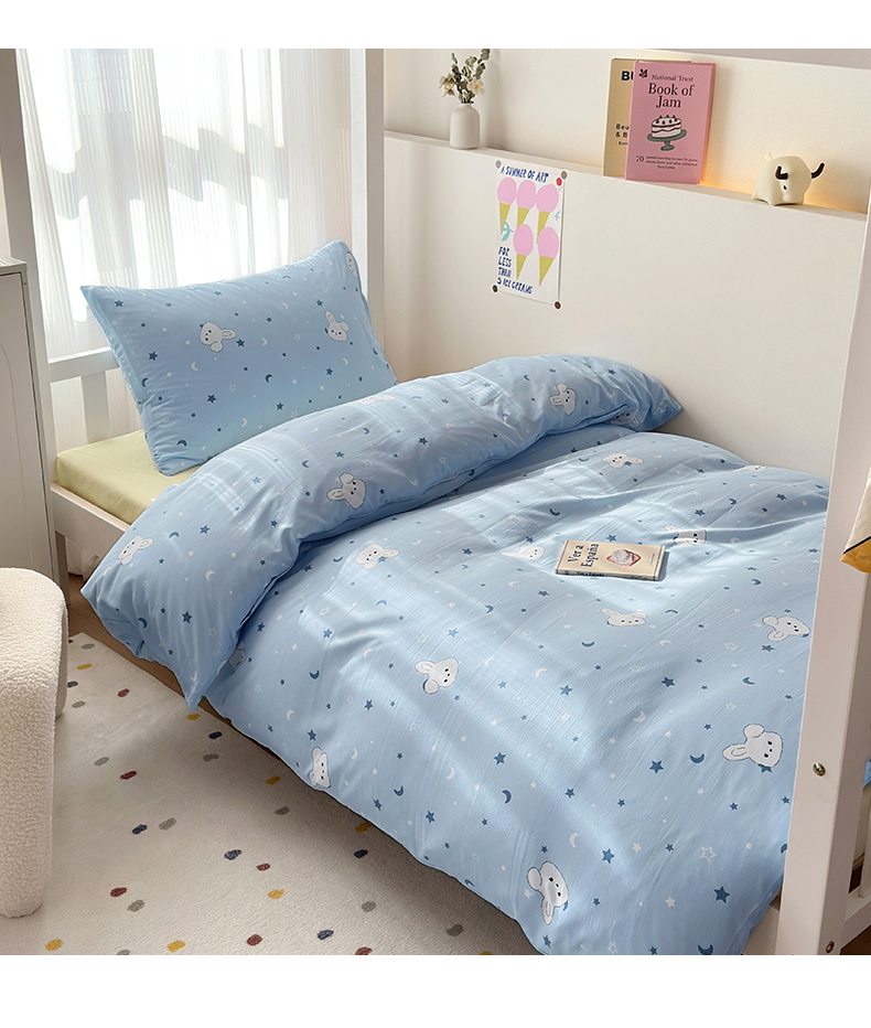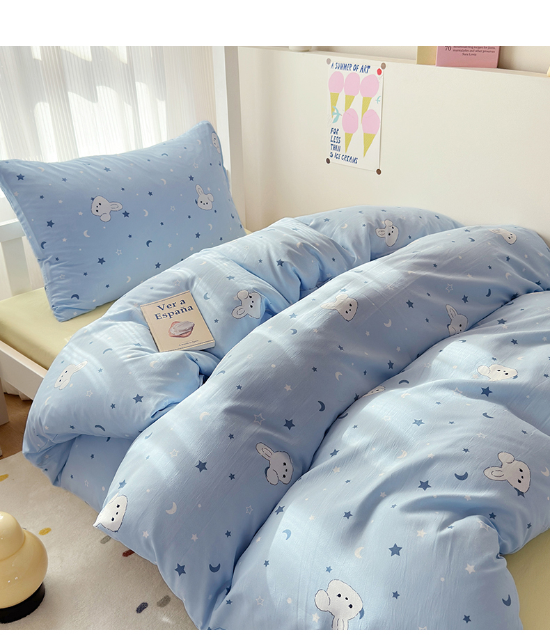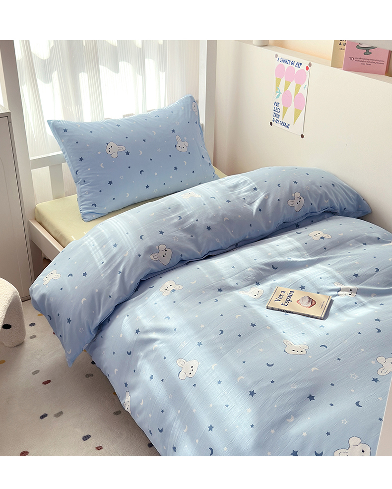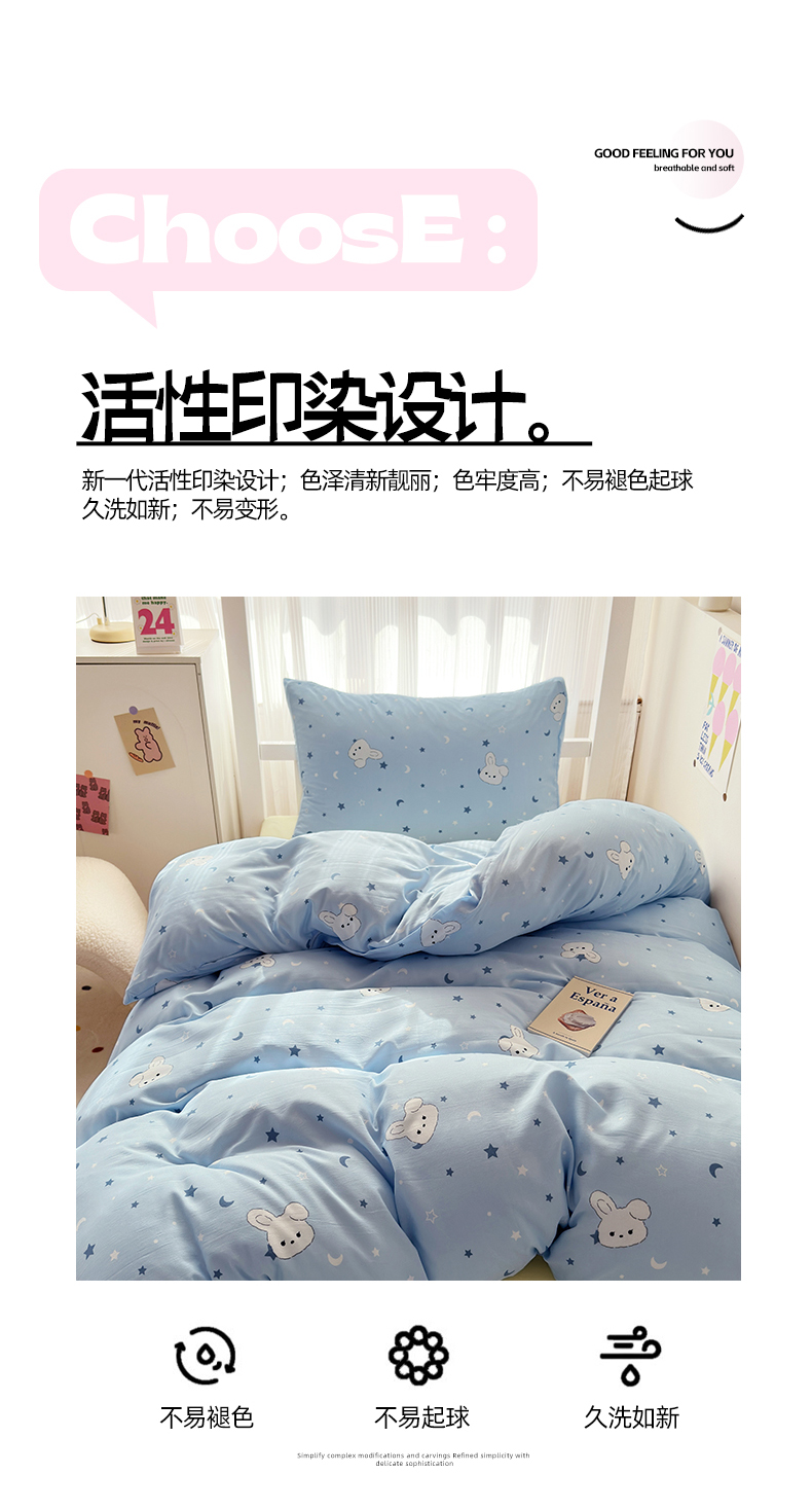 当前位置: 91家纺网 > 商品网购 > 床品套件 > 三件套 > 妖妖家纺2025新款学生宿舍床枕套定位水洗棉三件套四件套 晚安兔