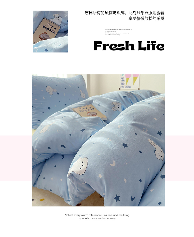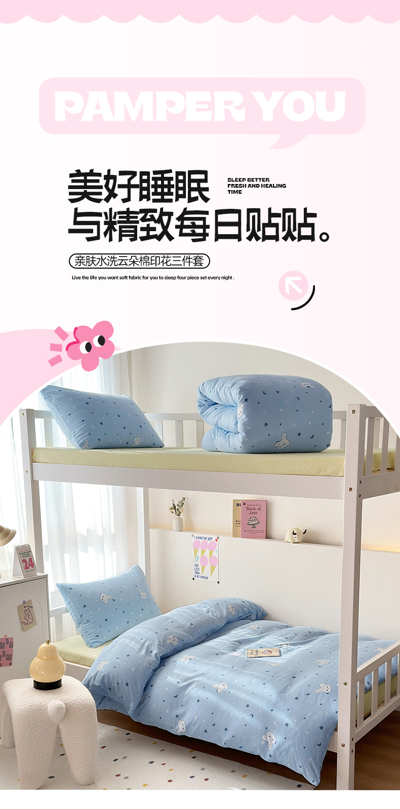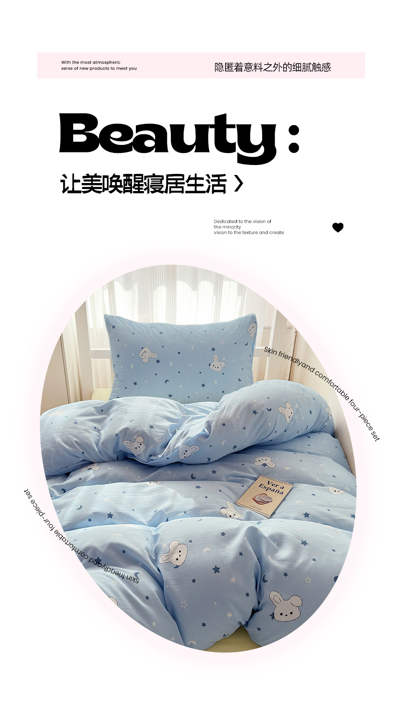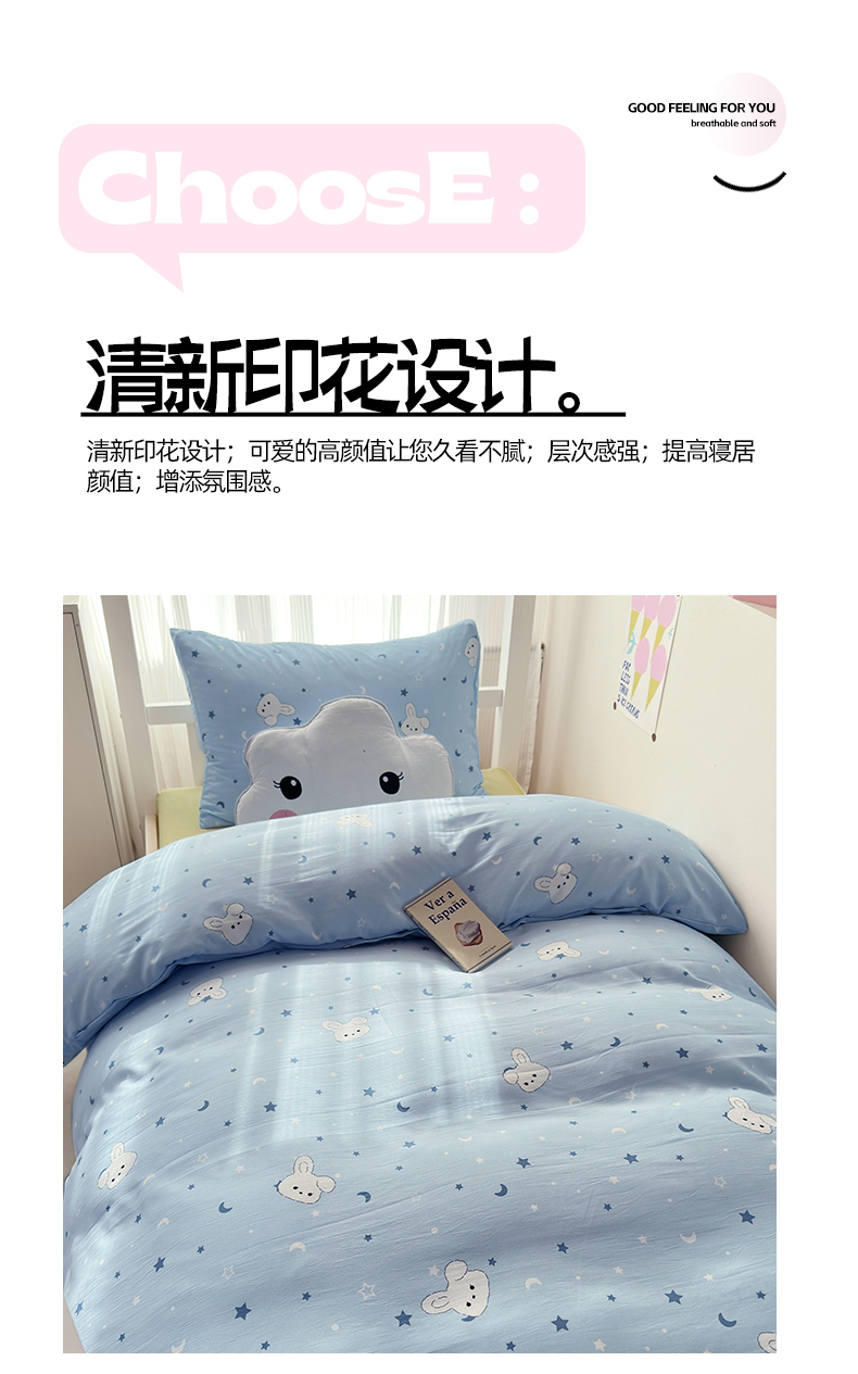 当前位置: 91家纺网 > 商品网购 > 床品套件 > 三件套 > 妖妖家纺2025新款学生宿舍床枕套定位水洗棉三件套四件套 晚安兔
