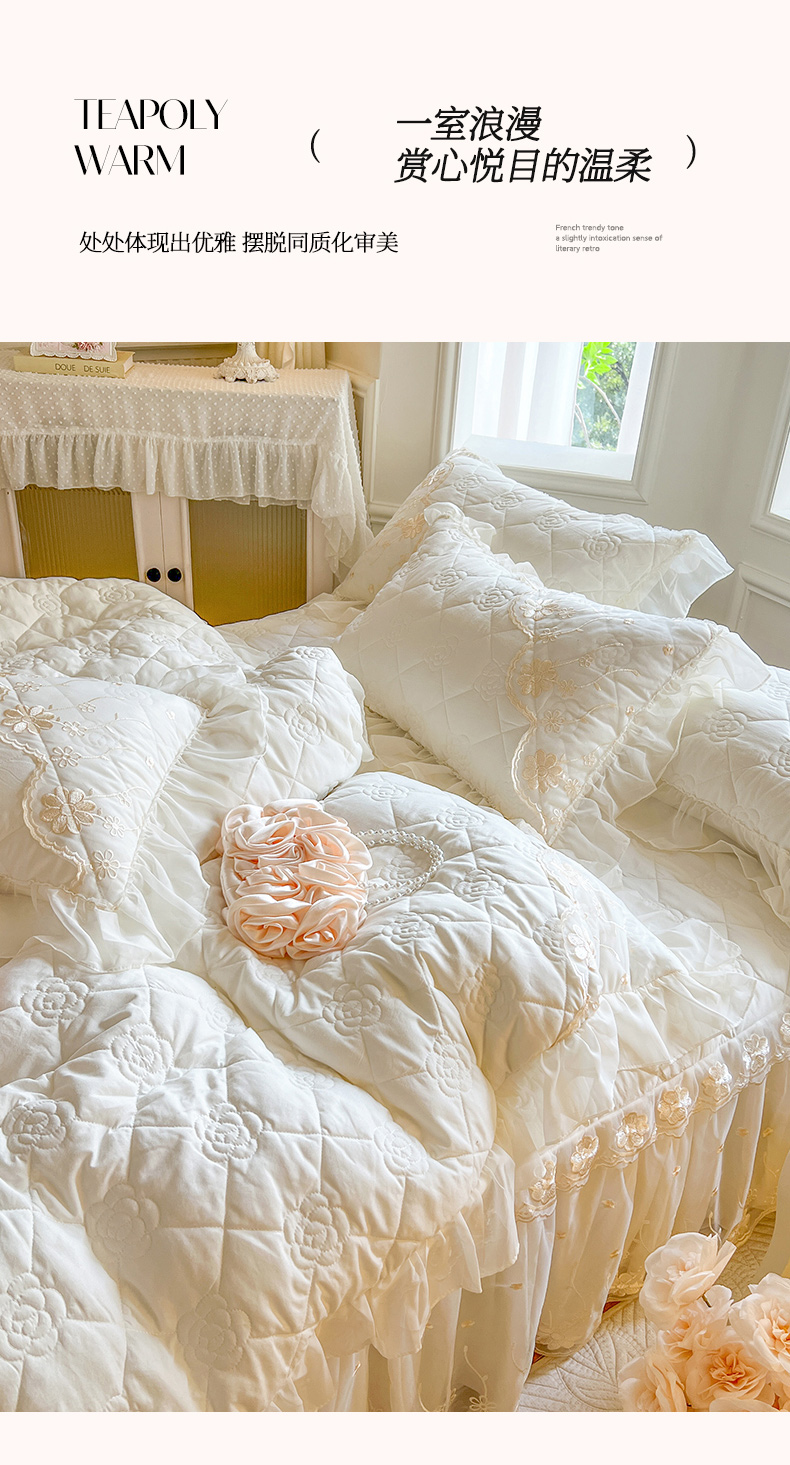 (总)瑞宝 2025新款水洗棉花边夹棉床裙甜优系列四件套(供货价+40)