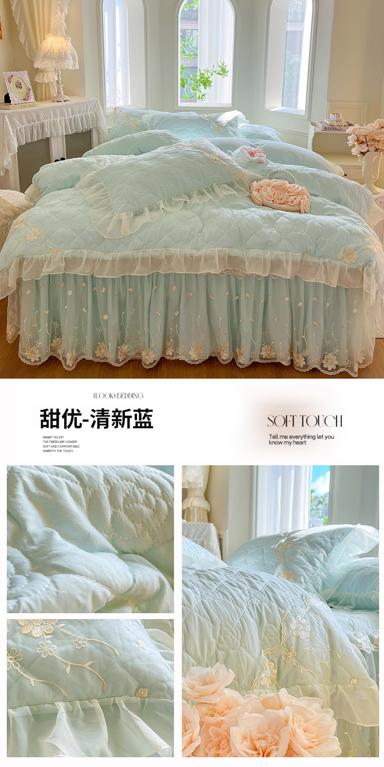 (总)瑞宝 2025新款牛奶绒花边刺绣三件套--爱梦妮(控价+30),爱梦妮-奶油米,爱梦妮-浅奶咖,爱梦妮-青柠绿,爱梦妮-少女粉,爱梦妮-星蓝