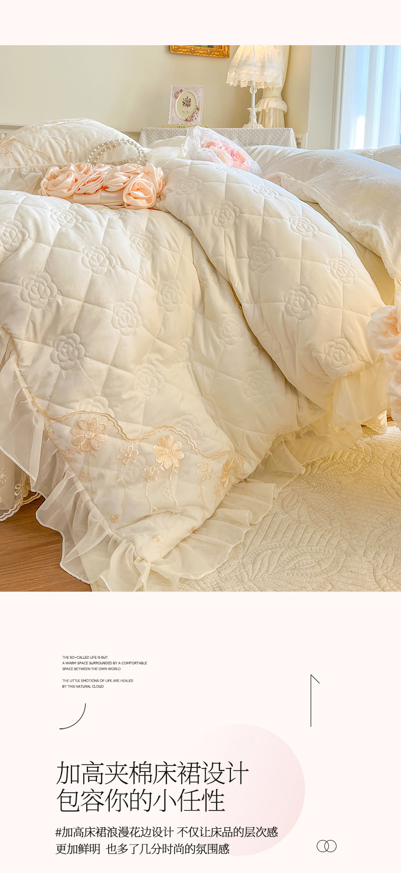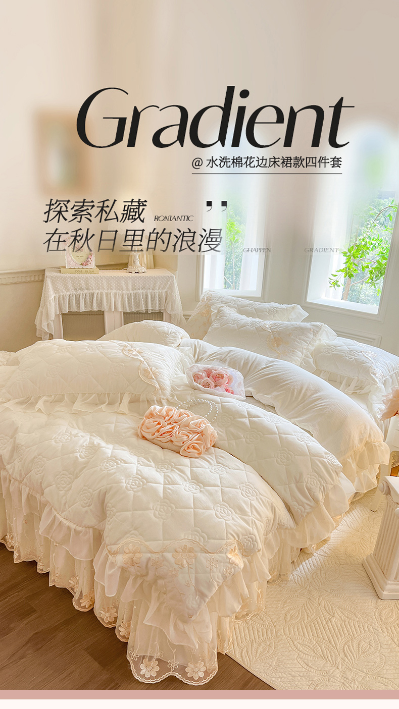商品名称:(总)瑞宝 2025新款水洗棉花边夹棉床裙甜优系列四件套(供货价+40)