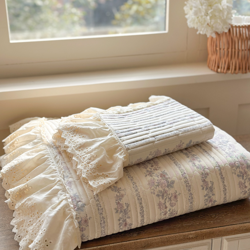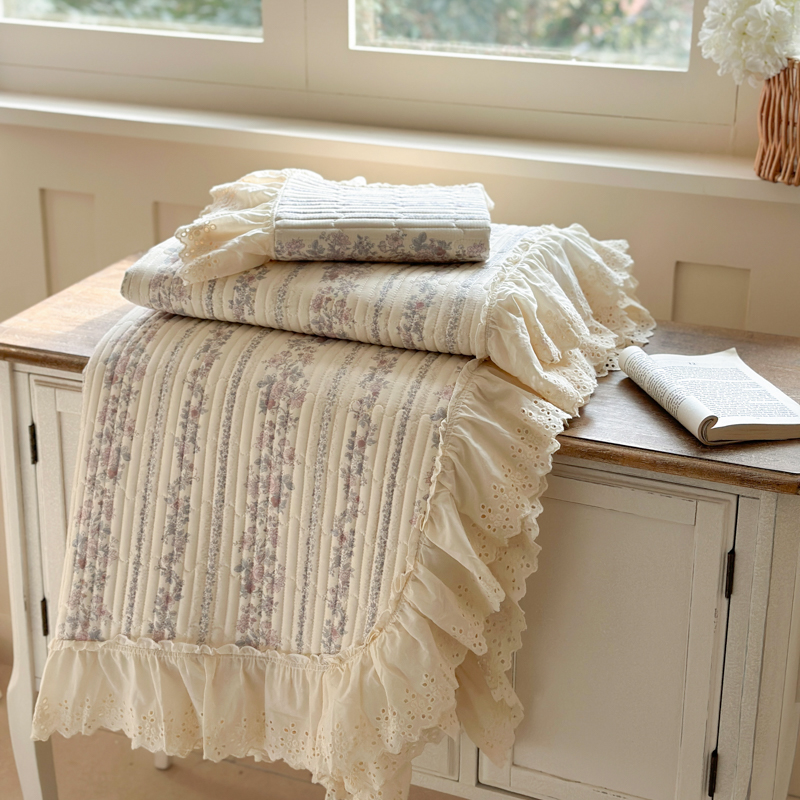 当前位置: 91家纺网 > 商品网购 > 床上用品 > 床盖 > 金丝鸟 2025全棉镂空白色花边款韩式床盖 紫色花铃