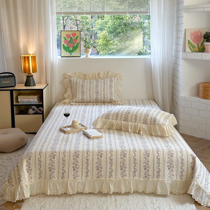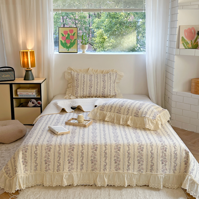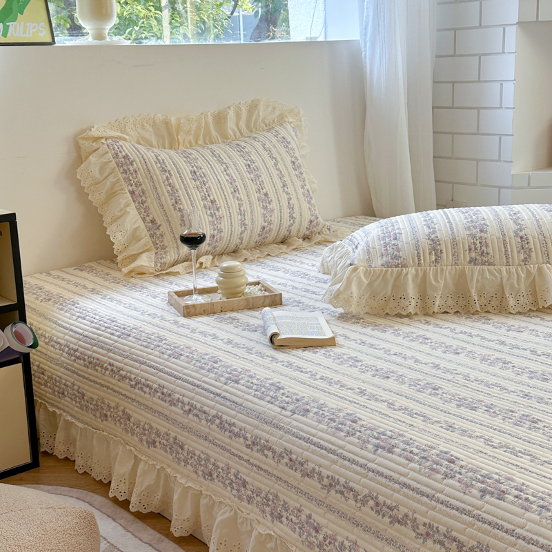 金丝鸟 2025全棉镂空白色花边款韩式床盖 紫色花铃