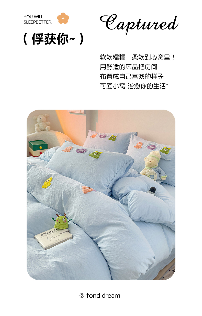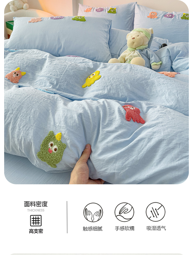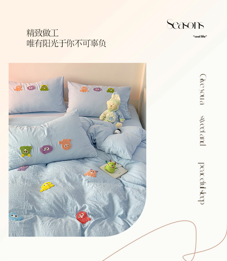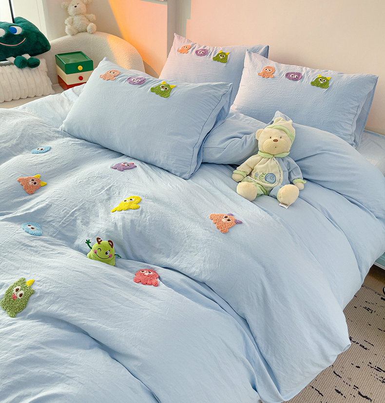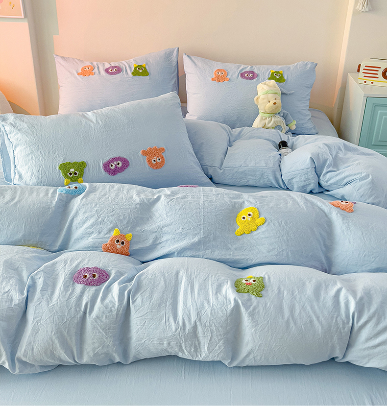 当前位置: 91家纺网 > 商品网购 > 床品套件 > 四件套 > 毛巾绣四件套 > 韩巢家纺 2025超柔水洗棉毛巾绣床上用品四件套-小精灵系列(提供卖家秀 ) 小精灵浅蓝