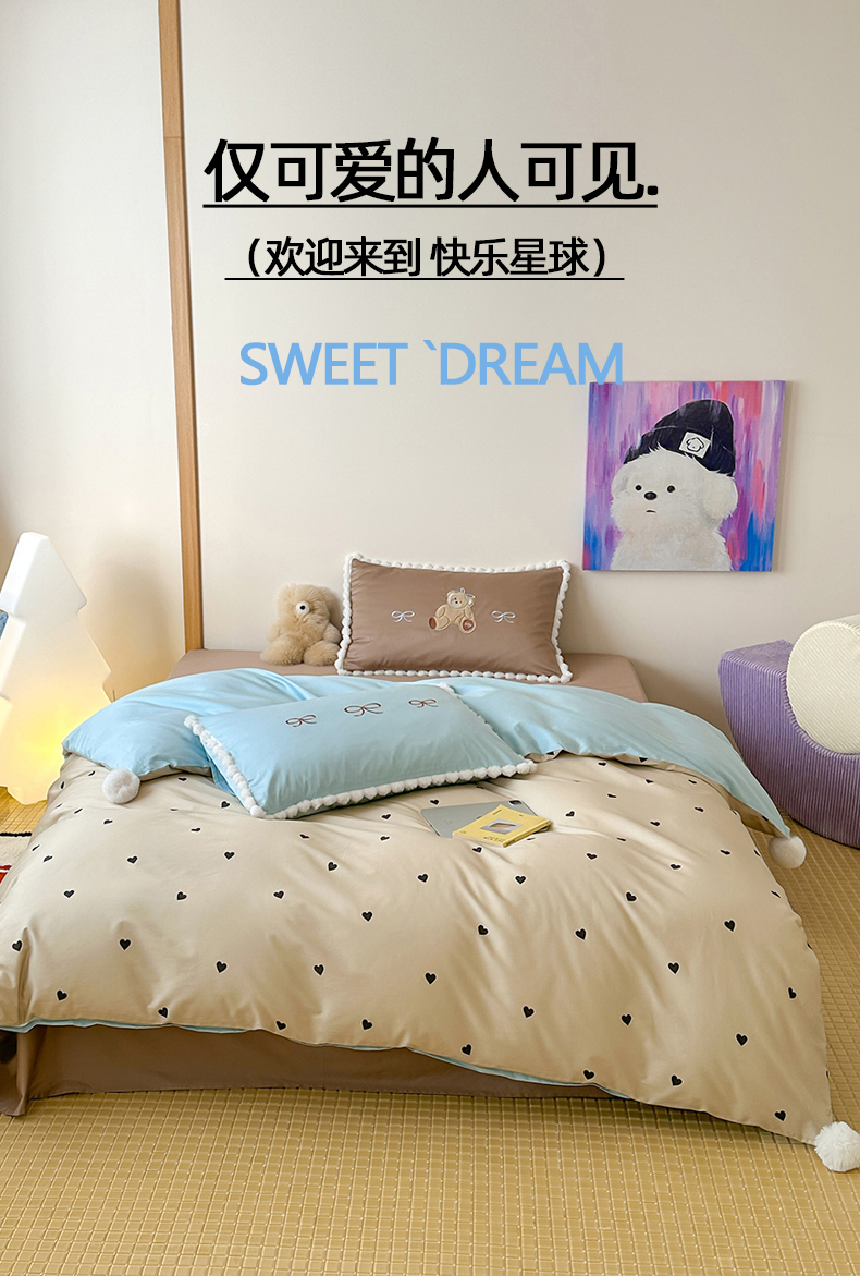 (总)桔子家纺 2026春夏新款100s全棉纯棉复古樱桃系列四件套-场景二,复古樱桃-粉,复古樱桃-米白
