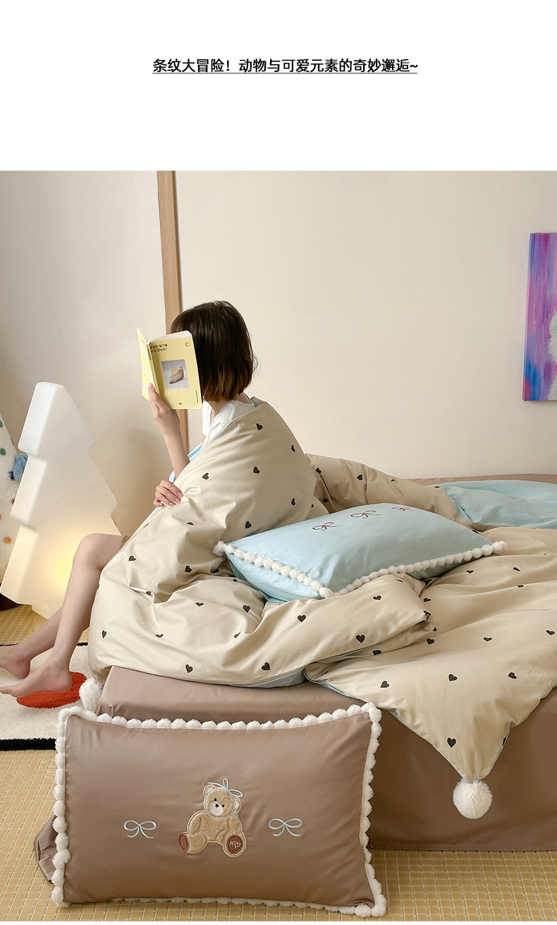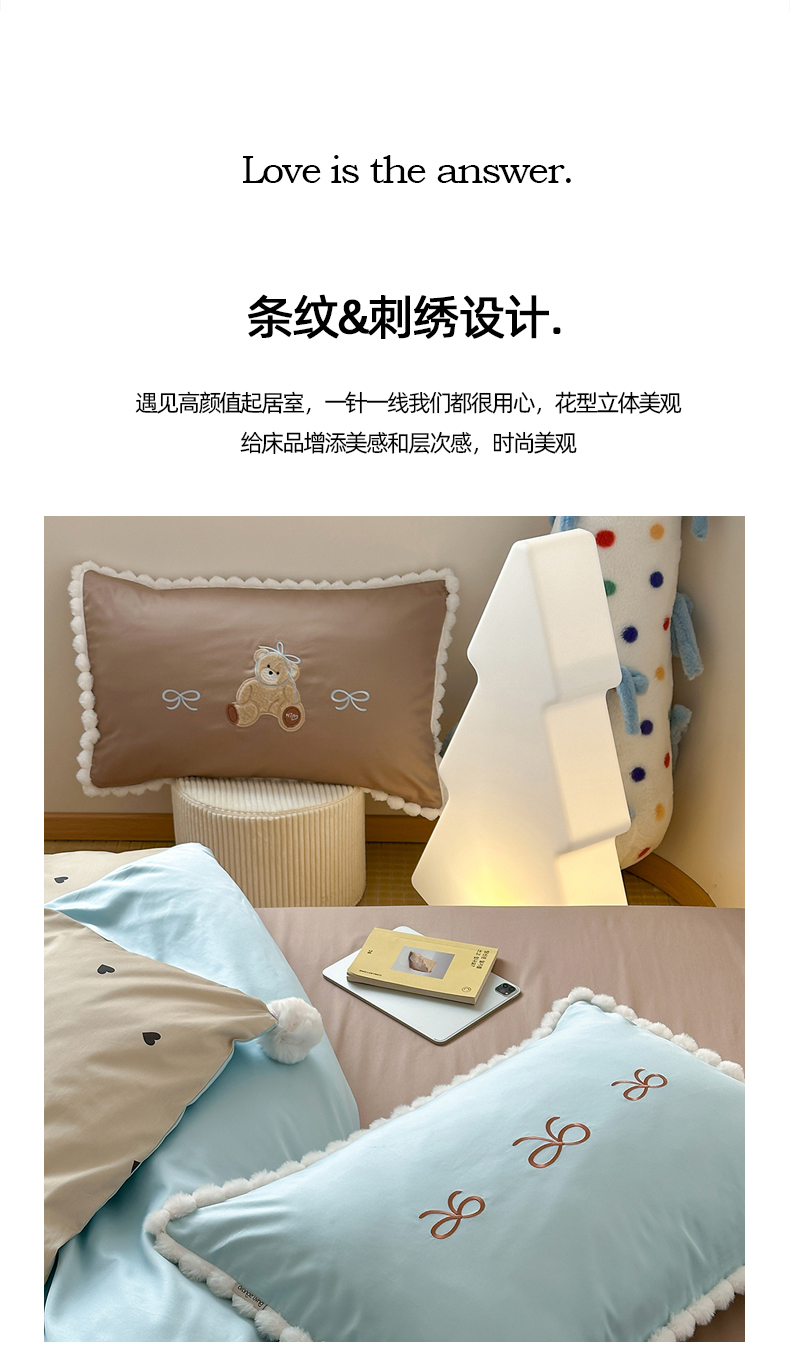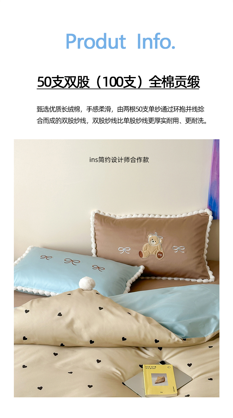 (总)桔子家纺 2026春夏新款100s全棉纯棉幸运系列四件套-场景二,幸运果(白色),幸运果(棕色),幸运小马