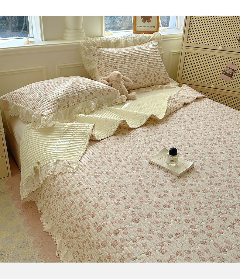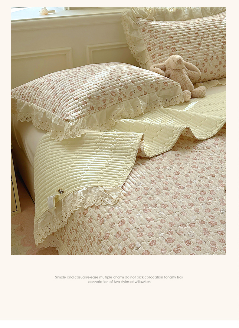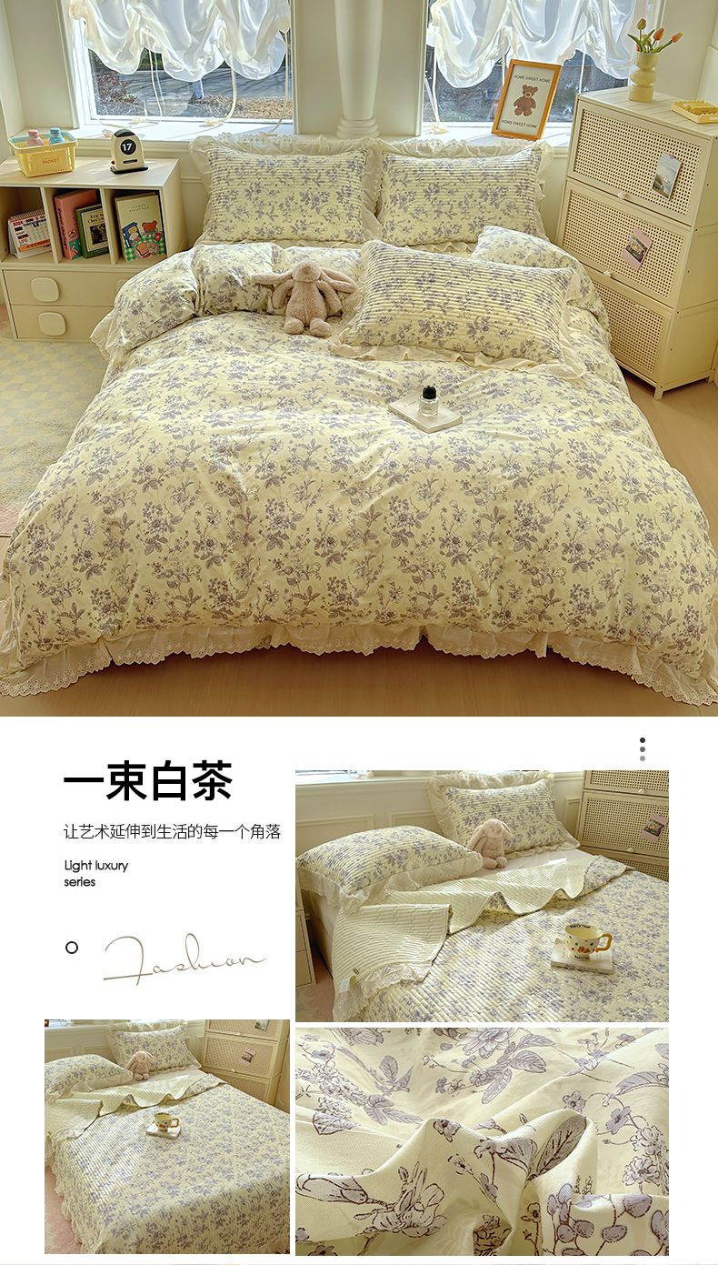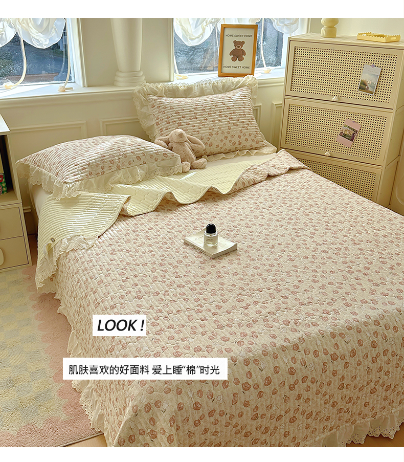 商品名称:美梦家纺 2025新款A类全棉13372花边床盖四件套-白边 白边-莫里小院