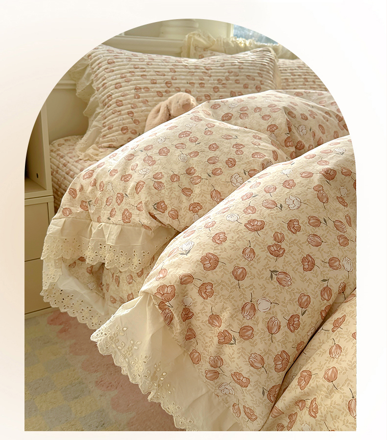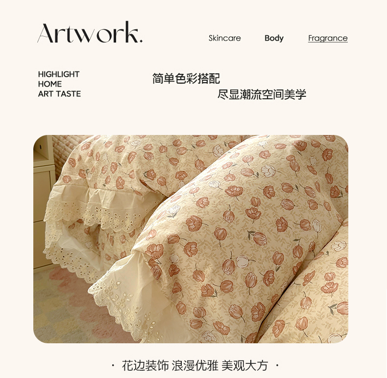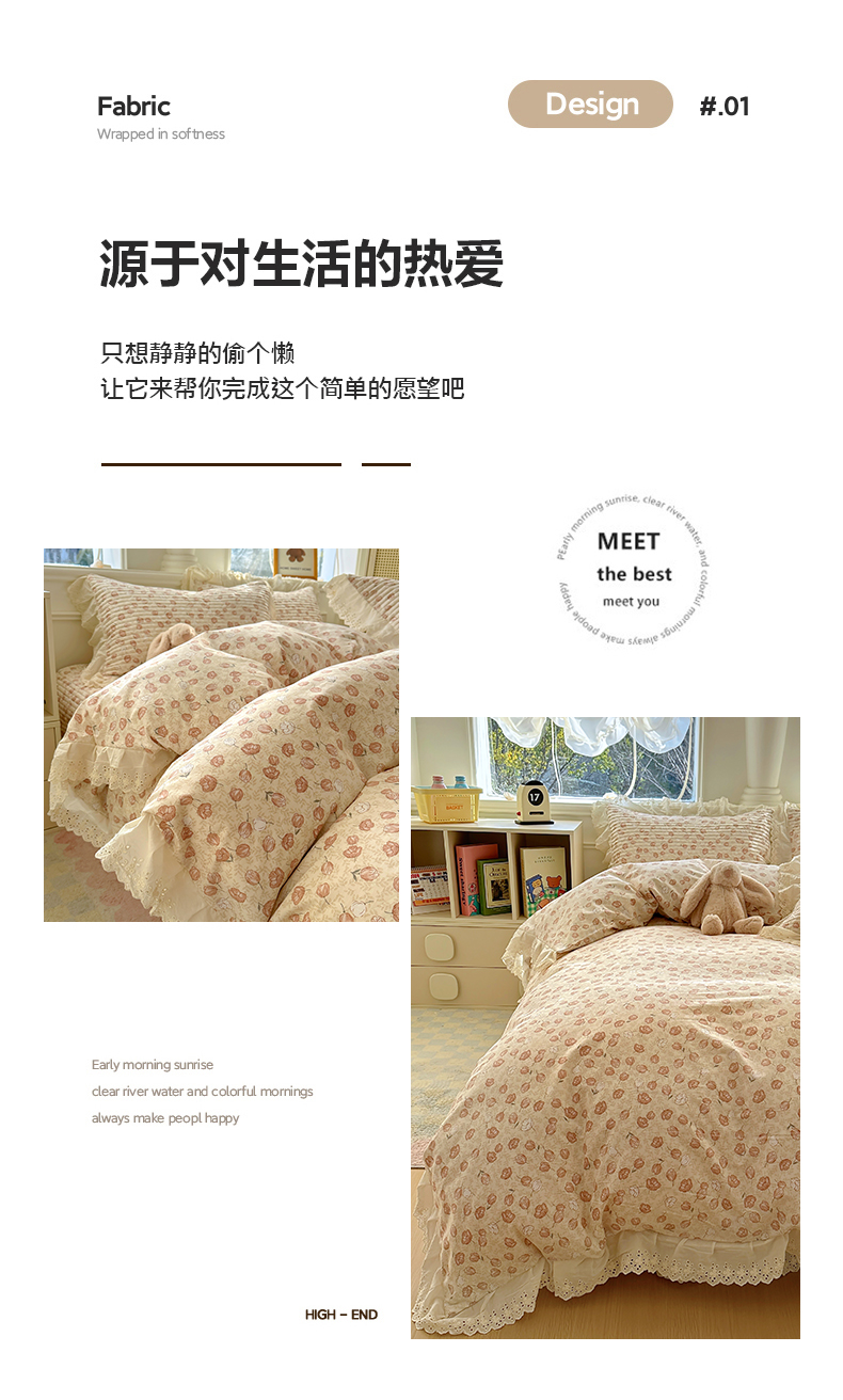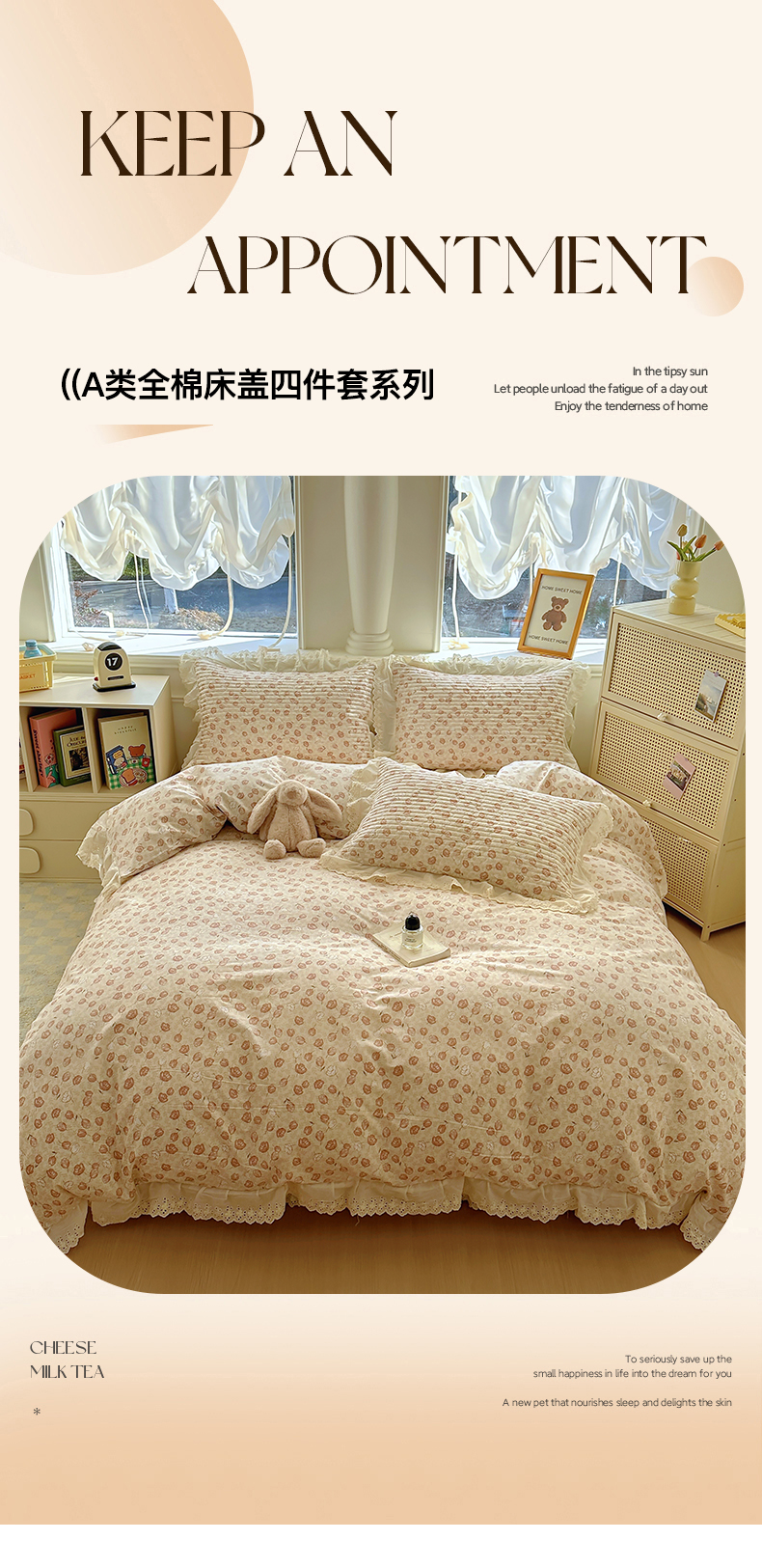(总)美梦家纺 2026新款高克重全棉花边云感棉床盖四件套,希雅莉·米,雅格·粉,樱桃蜜·咖,尤丽叶·咖,紫藤碎花·咖,莓莓素语·粉,暖小象·兰,浅叶·米,希雅莉·灰