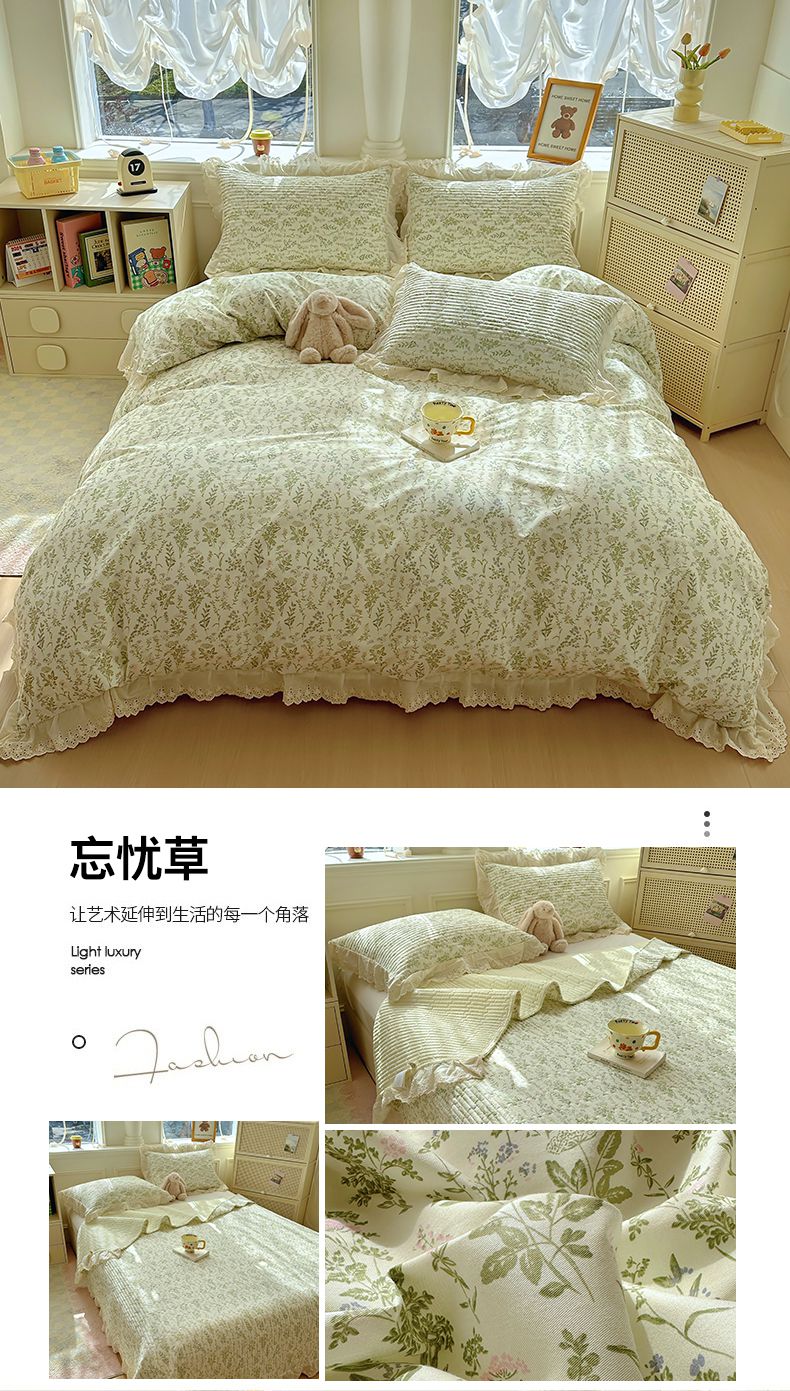 美梦家纺 2025新款A类全棉13372花边床盖四件套-白边 白边-莫里小院