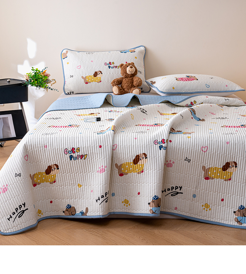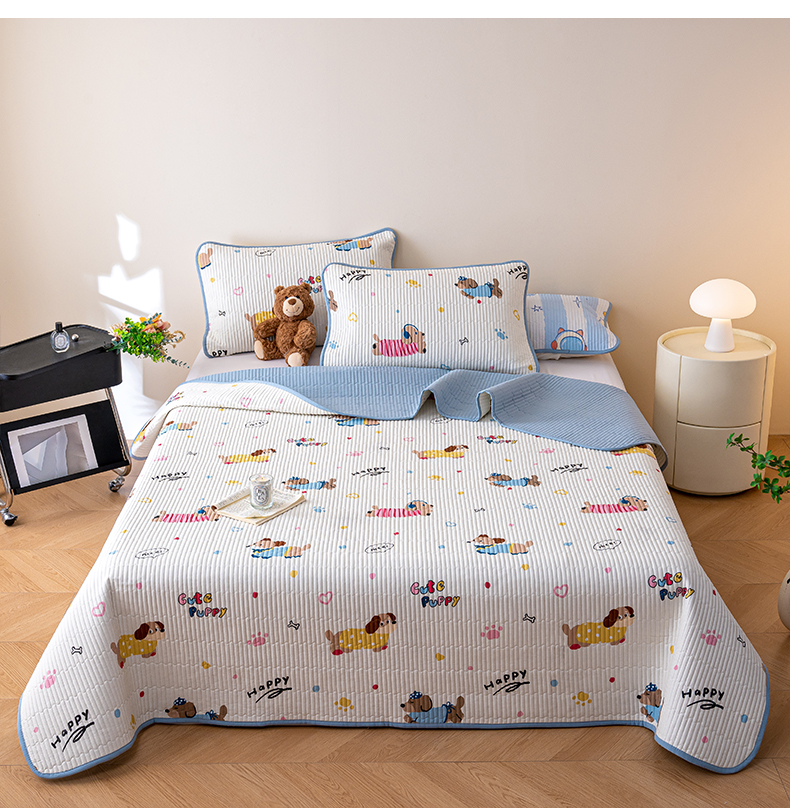 X猫先生 2025新款全棉床盖小清新夹棉水洗炕盖床盖套件-跑量款 萌汪甜梦