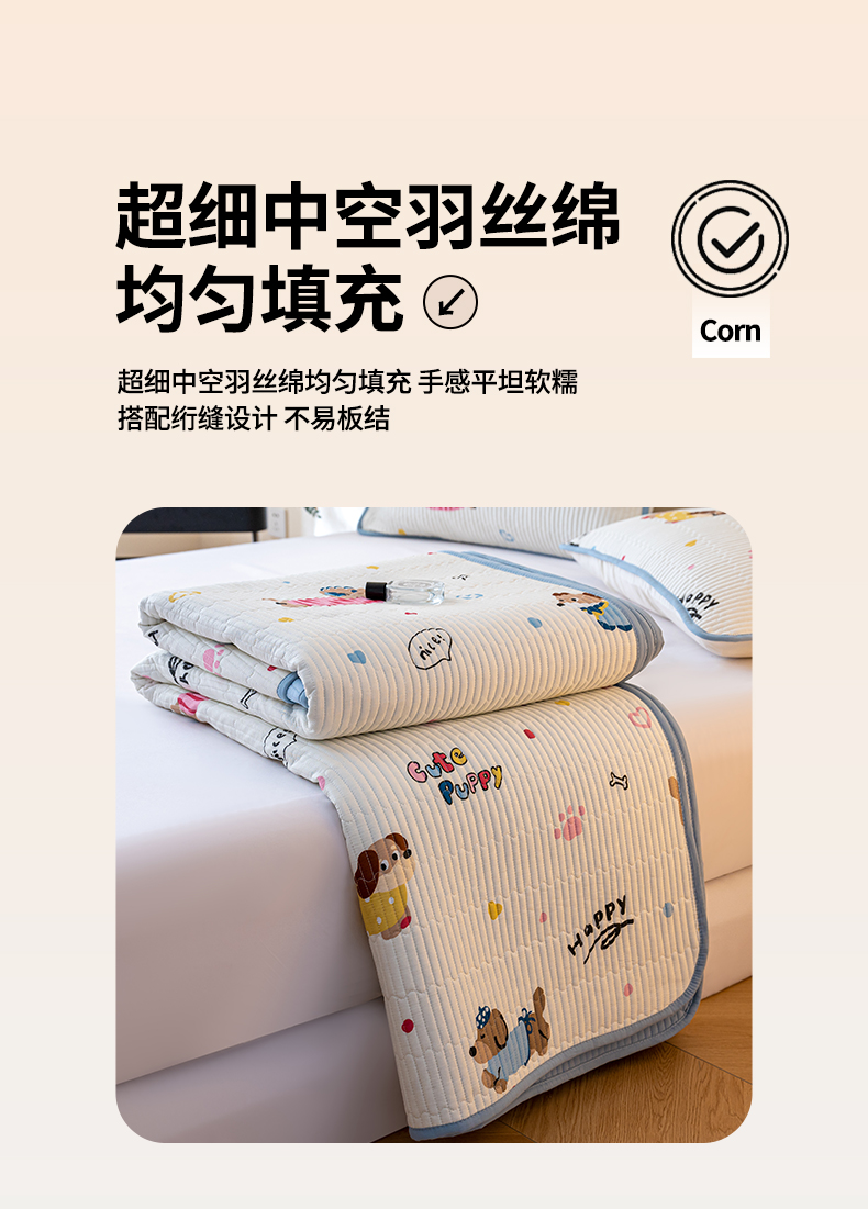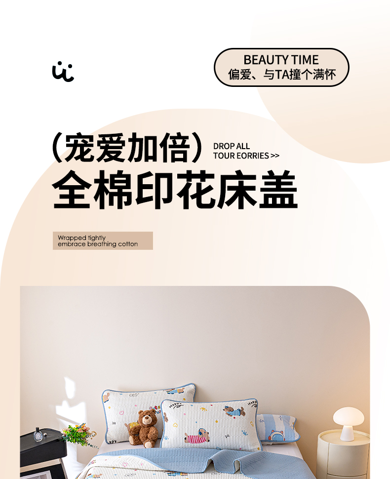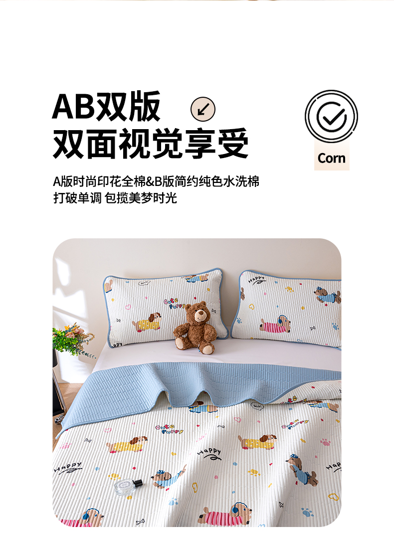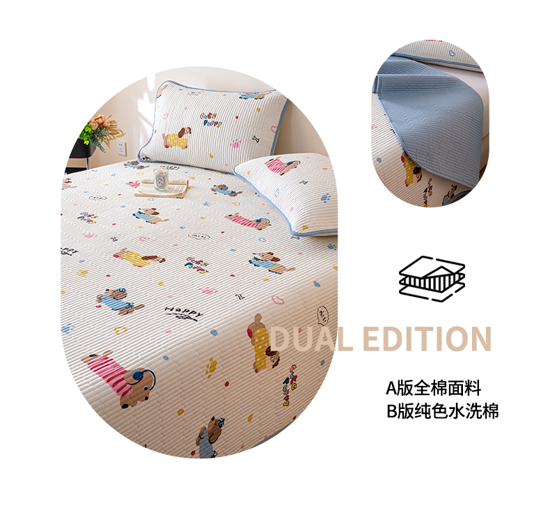 • 91家纺网 家纺一手货源 找家纺 X猫先生 2025新款全棉床盖小清新夹棉水洗炕盖床盖套件-跑量款 萌汪甜梦