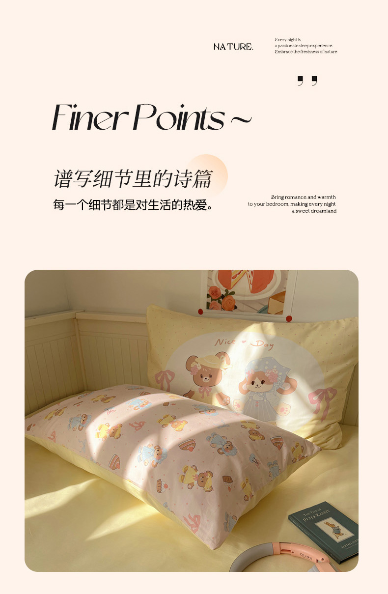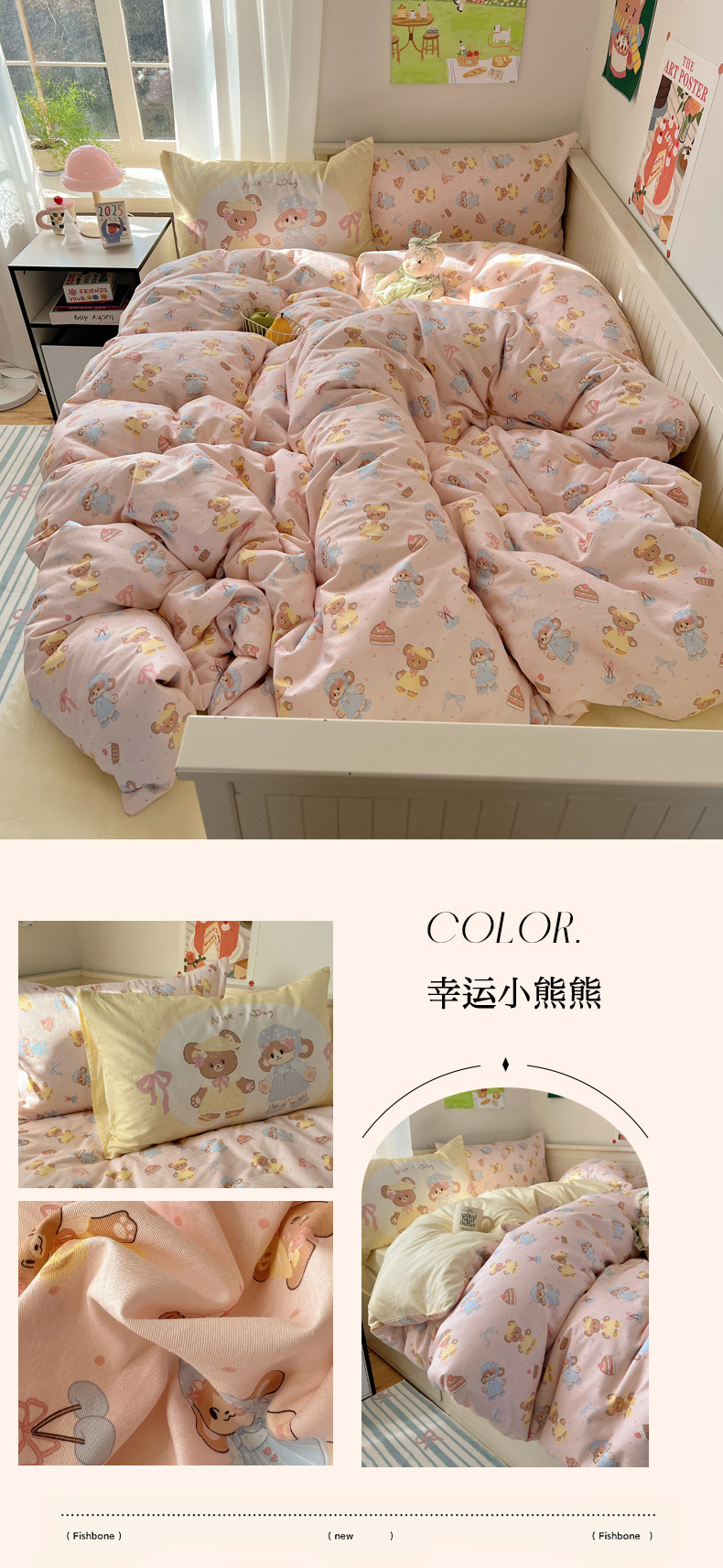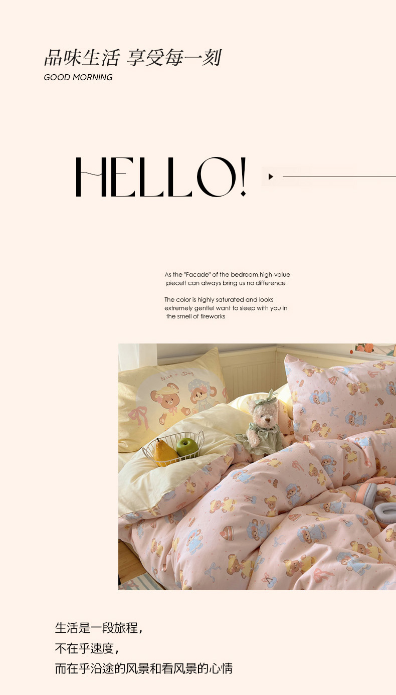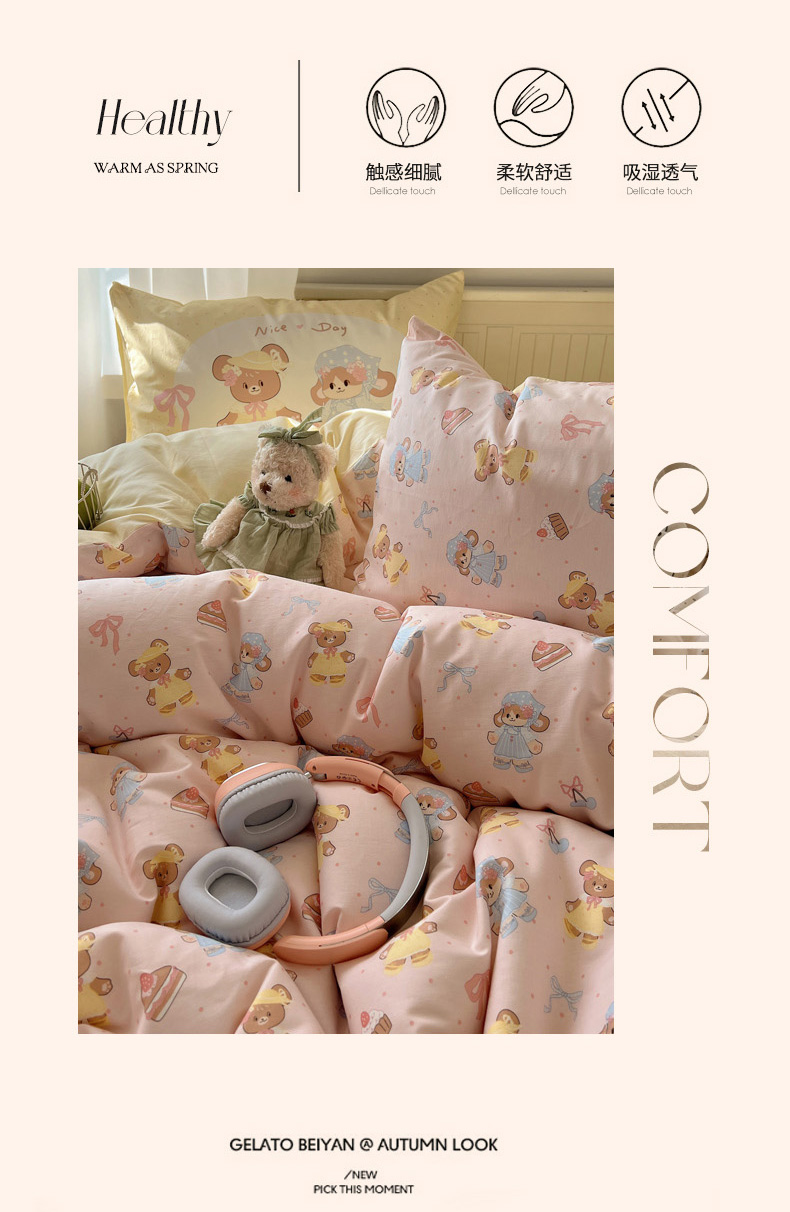 商品名称:丽涵 2025新款全棉13372小清新印花四件套 幸运小熊熊