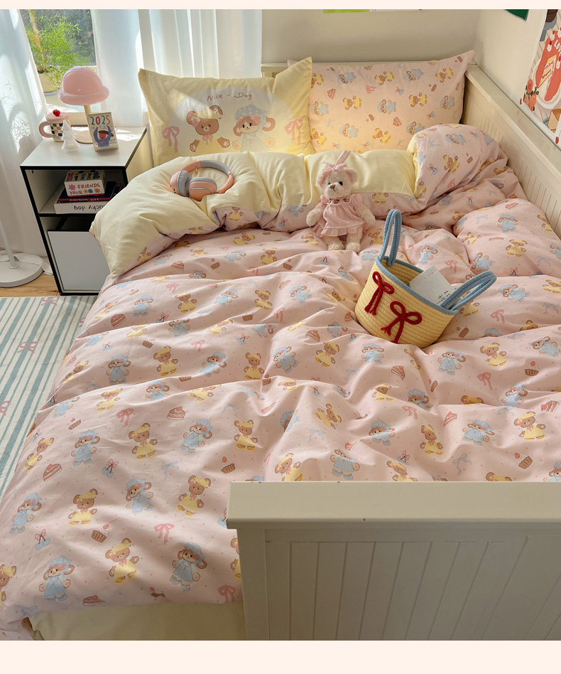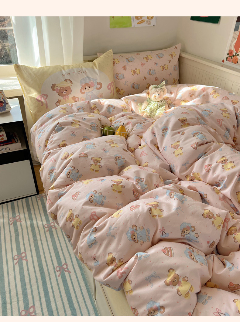 丽涵 2025新款全棉13372小清新印花四件套 幸运小熊熊