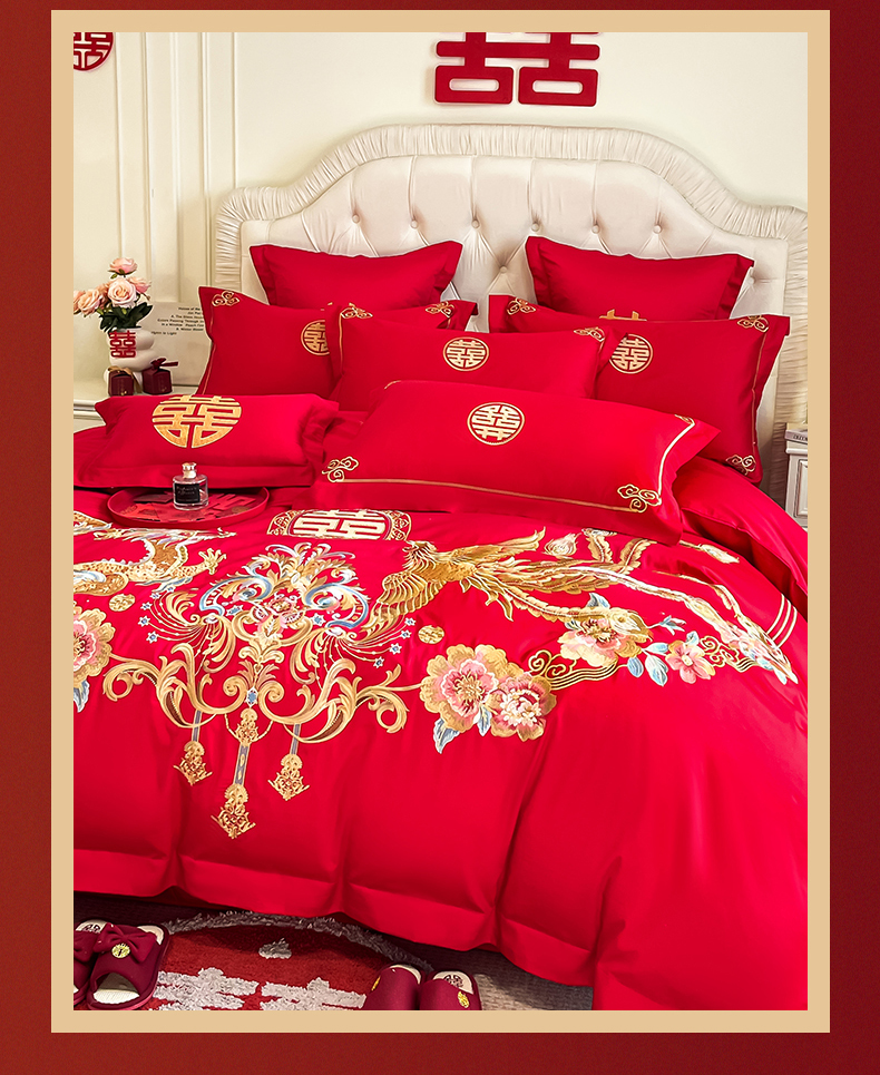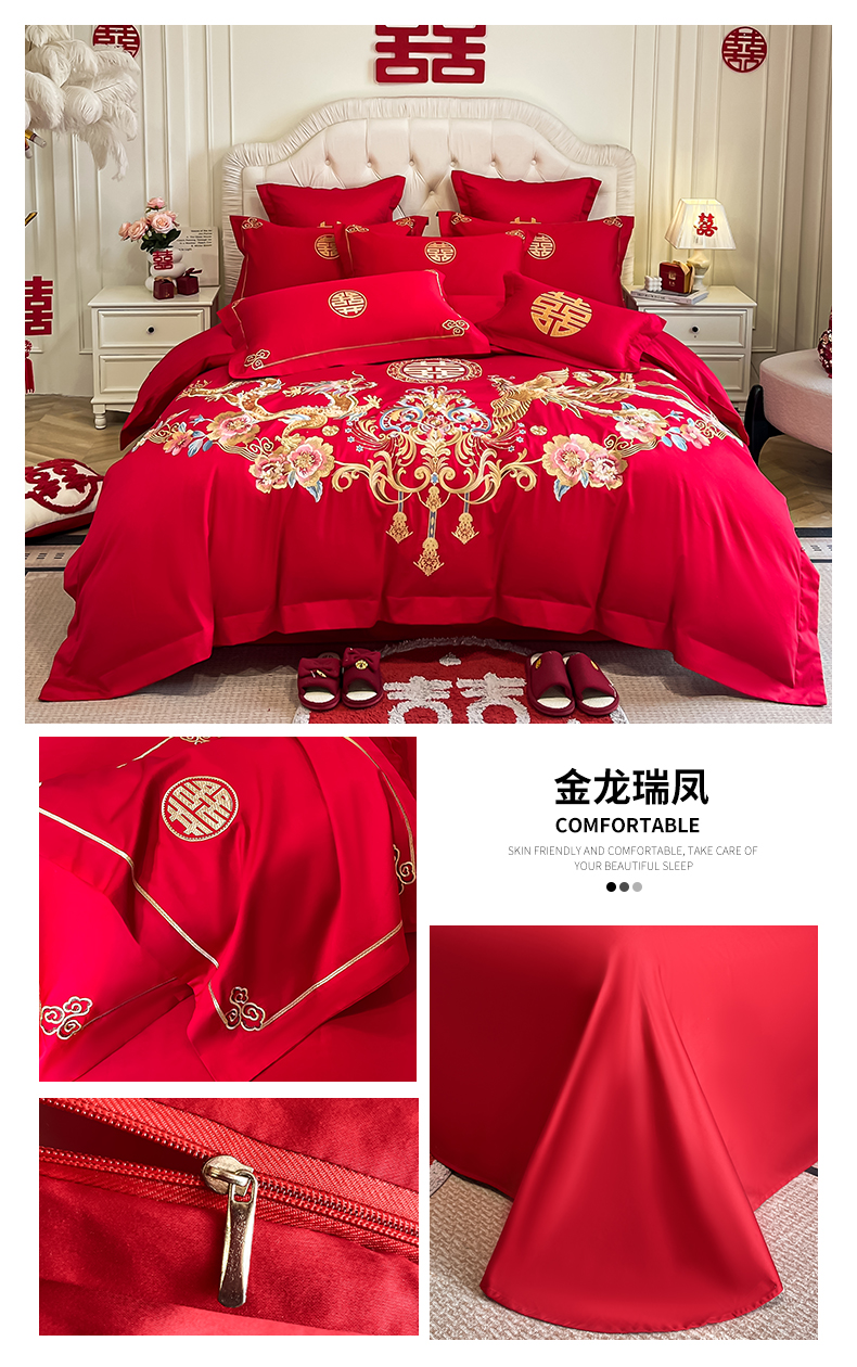 商品名称:欧乐蒂 2025新款亲肤棉刺绣婚庆四件套 金龙瑞凤