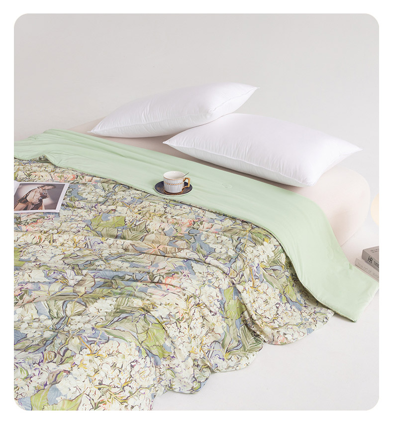 (总)睡棉坊2025新款数码印花高克重凉感丝夏凉被呱呱被10%大豆纤维填充带质检报告,梵高灰,国色东方,静若繁花,媚格绿,迷香紫,郁情粉