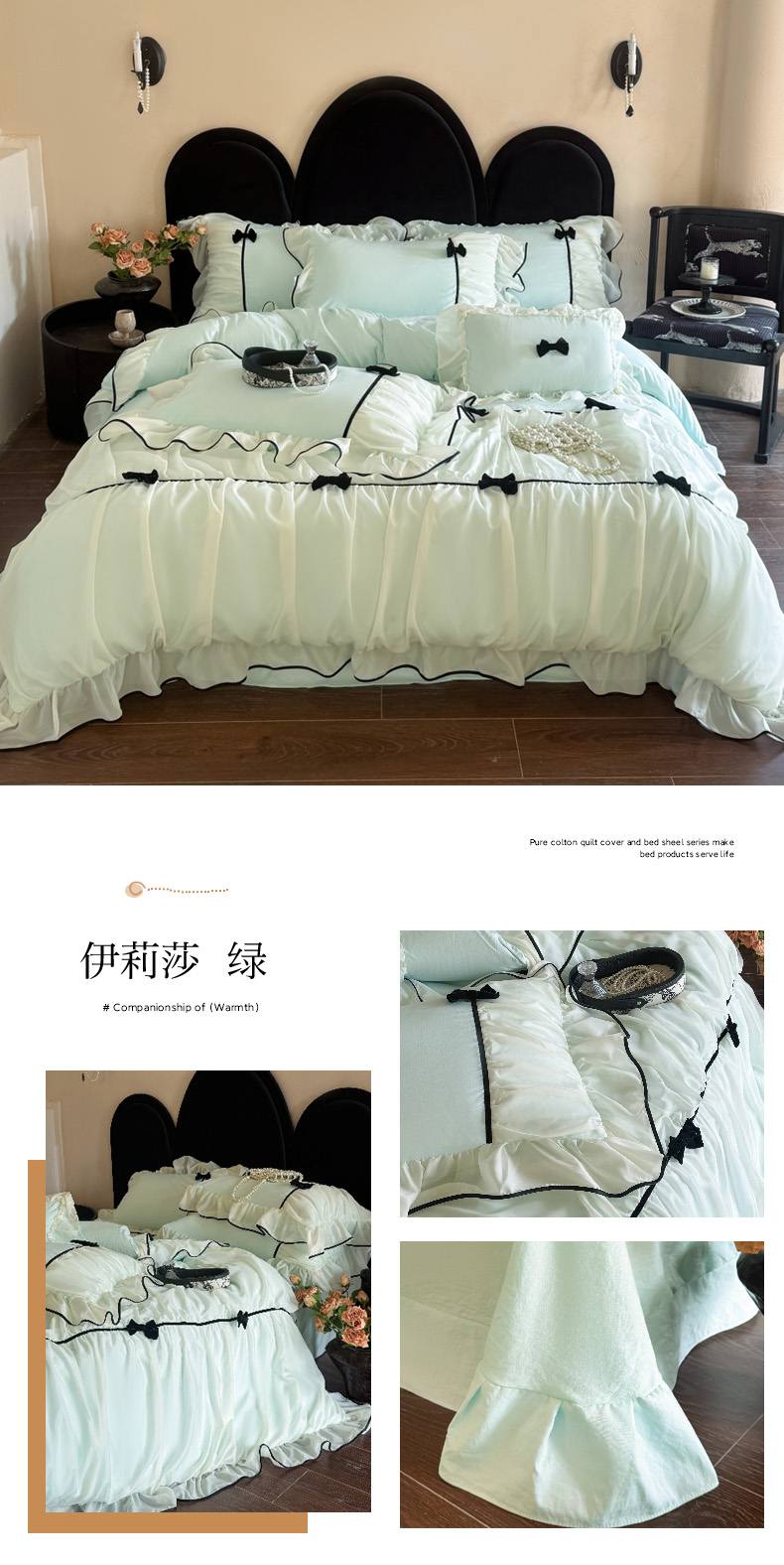 当前位置: 91家纺网 > 商品网购 > 床品套件 > 四件套 > 其它四件套 > 米可 2025新款法式云朵棉蕾丝花边工艺款四件套-伊莉莎 伊莉莎-绿