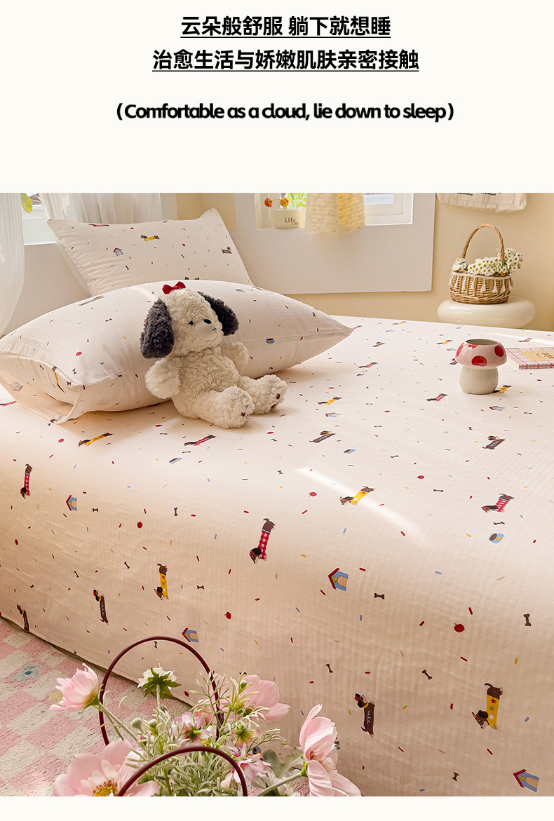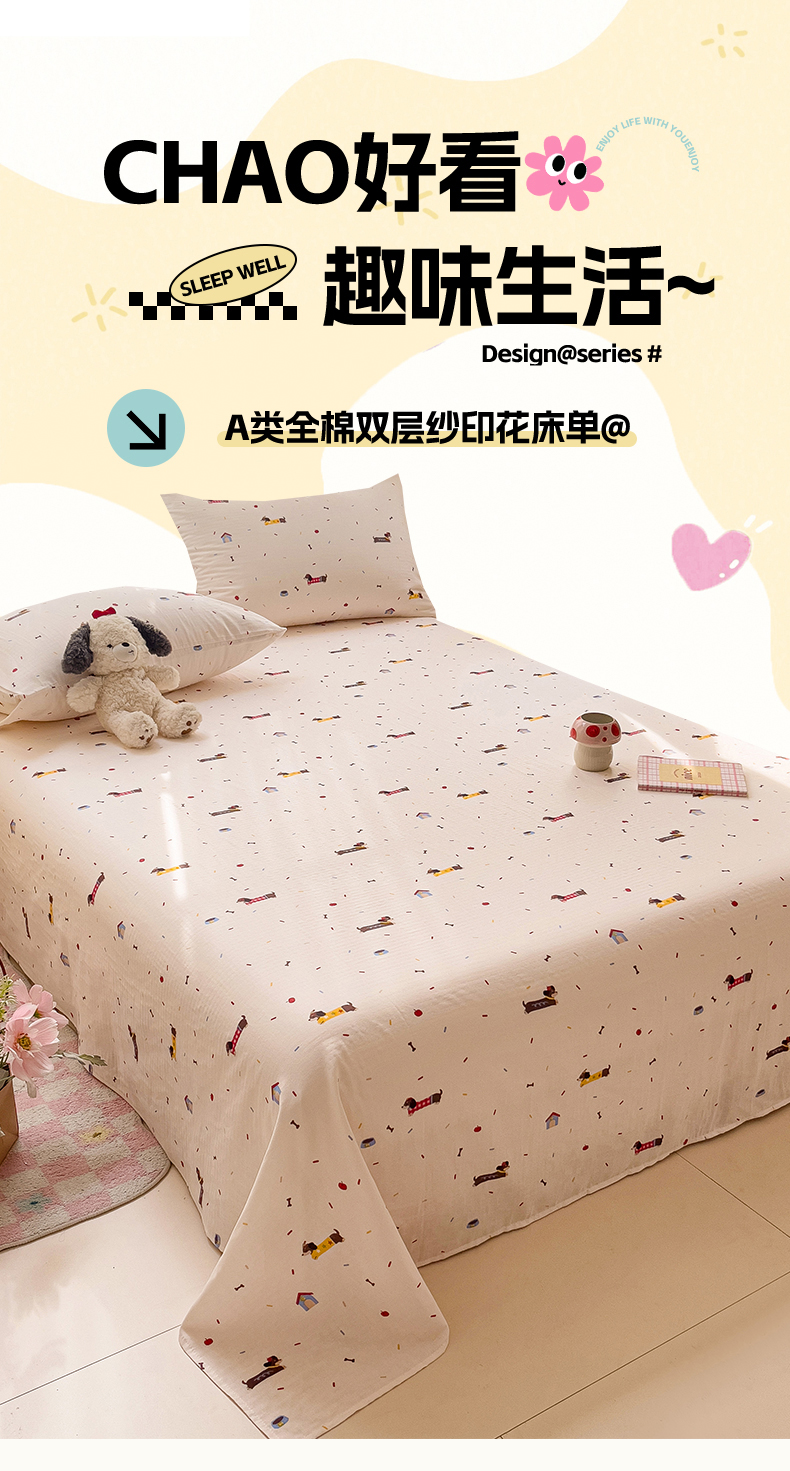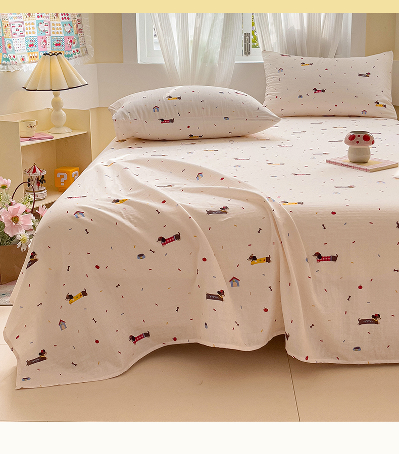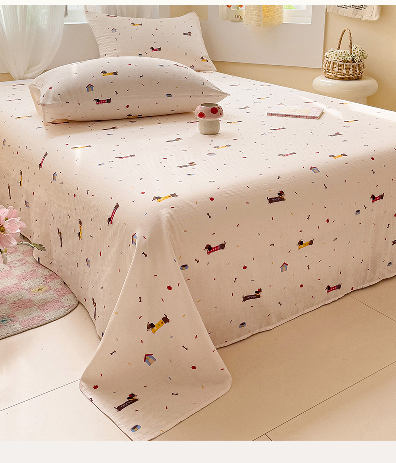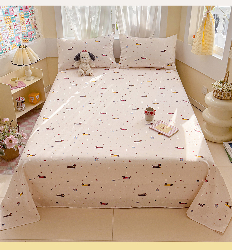 名兮-2025新款全棉双层纱床单 双层纱-辣条狗