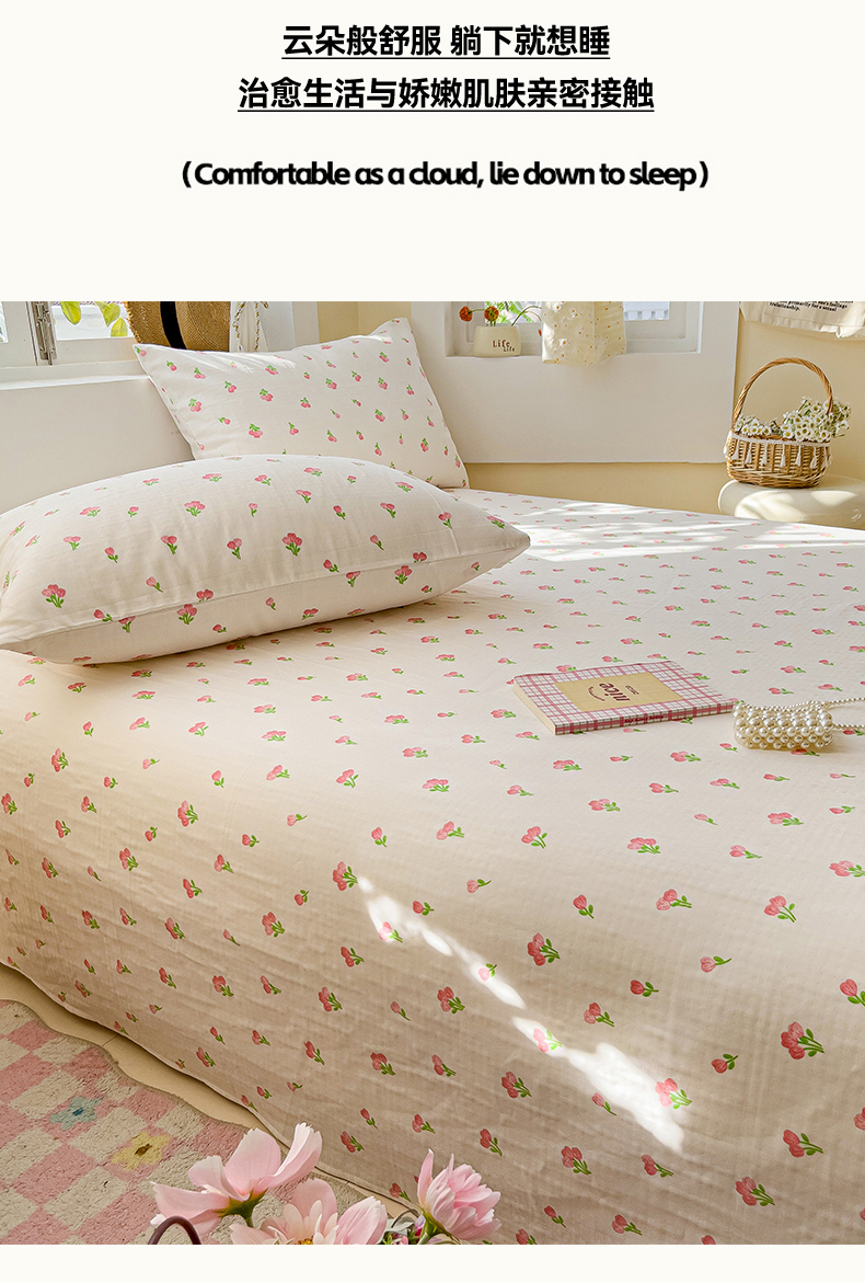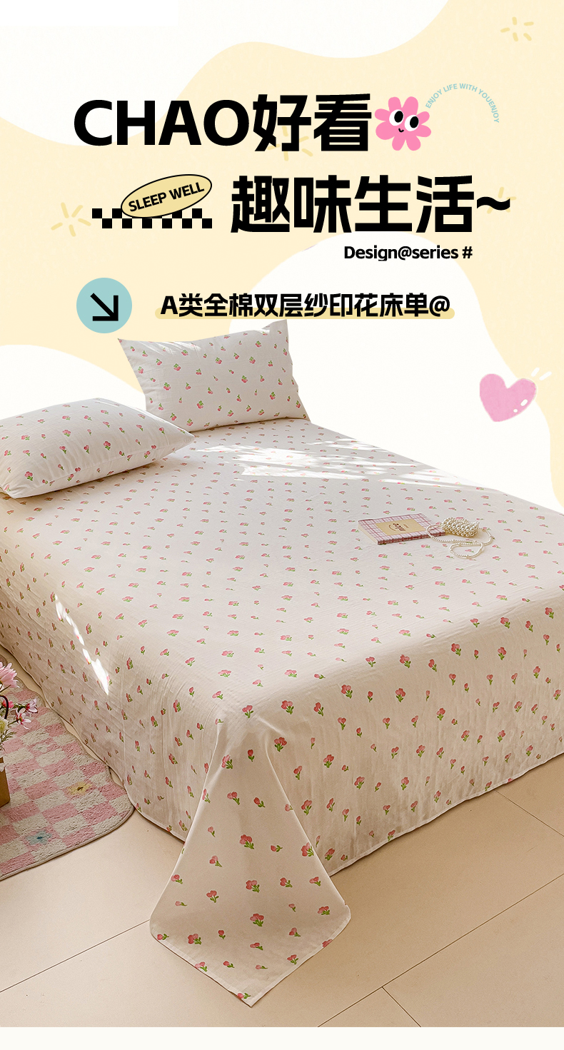 名兮-2025新款全棉双层纱床单 双层纱-小红花
