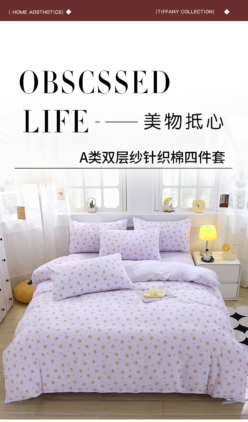 (总)织写 2025新款A类双层纱针织棉四件套床单四件套床单四件套小清新四件套,初享时光-咖,初享时光-蓝,春意盎然,动物乐园,狗狗家族,红色樱桃,蝴蝶结-咖,蝴蝶结-绿,花开烂漫,浪漫物语,琉璃,森林物语,宛然,乡间漫步,小草莓,小狗点点,小熊宝贝,紫色浪漫