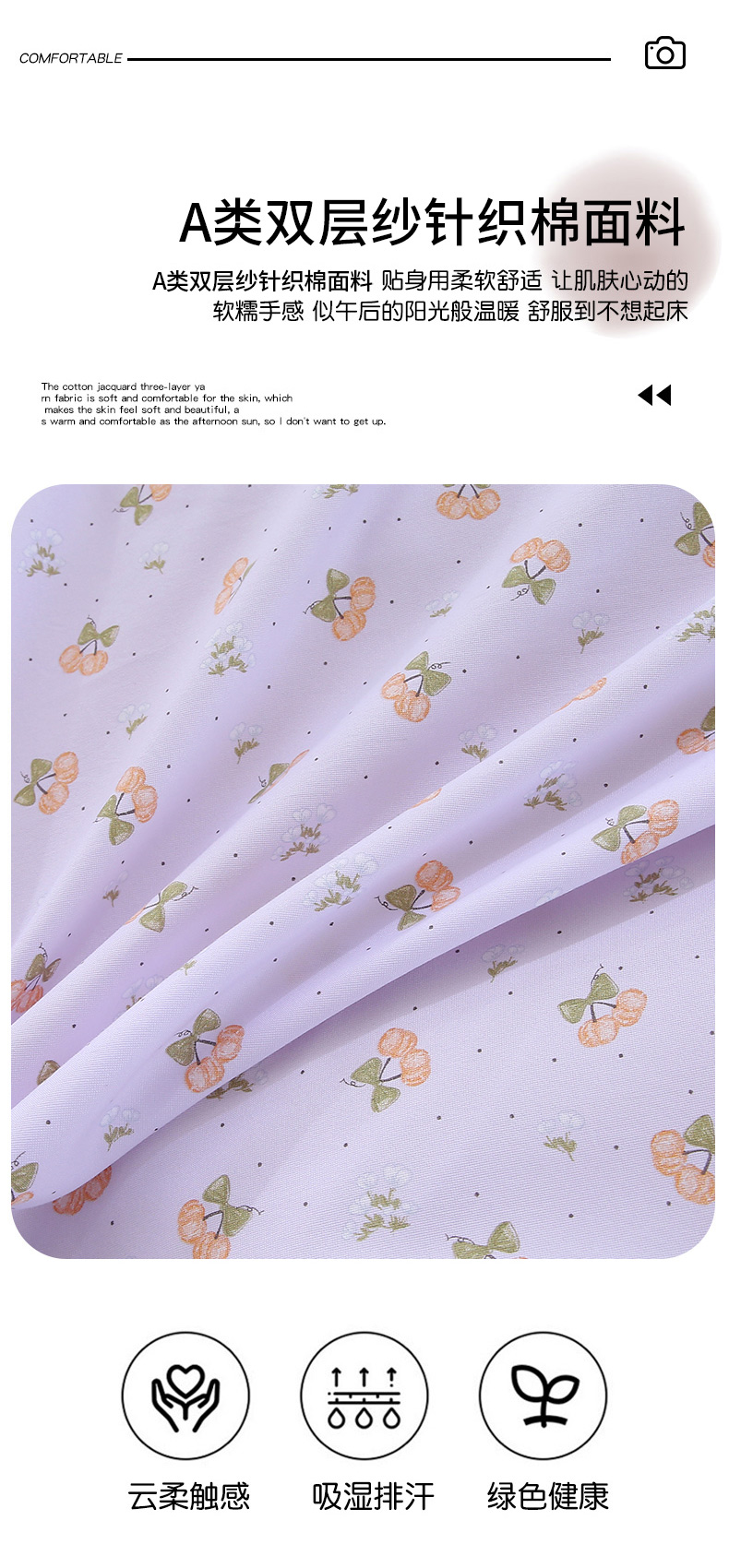 织写 2025新款A类双层纱针织棉四件套床单四件套床单四件套小清新四件套 红色樱桃,红色樱桃