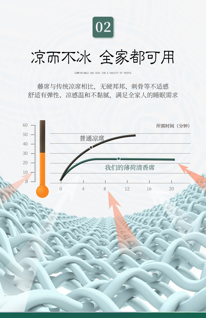 商品名称:(总)小牛席业 2025新款经典款薄荷清香-双面席系列(纯藤席面))凉席藤席冰藤席竹席空调席草席冰丝席豆豆席乳胶席三