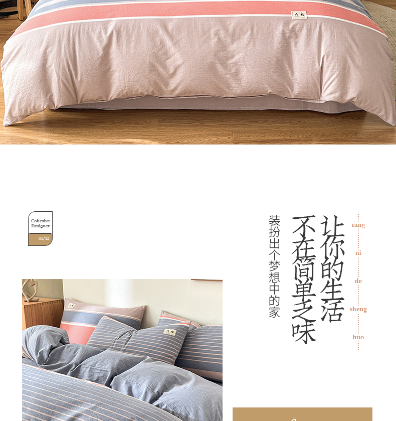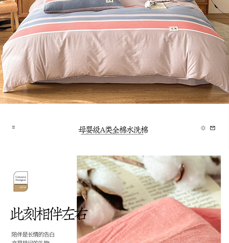 • 91家纺网 家纺一手货源 找家纺 21度C 2025新款A类全棉母婴级四件套单品系列-单被套 莱卡条