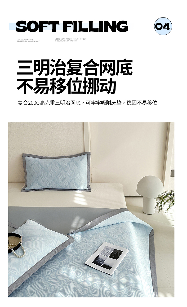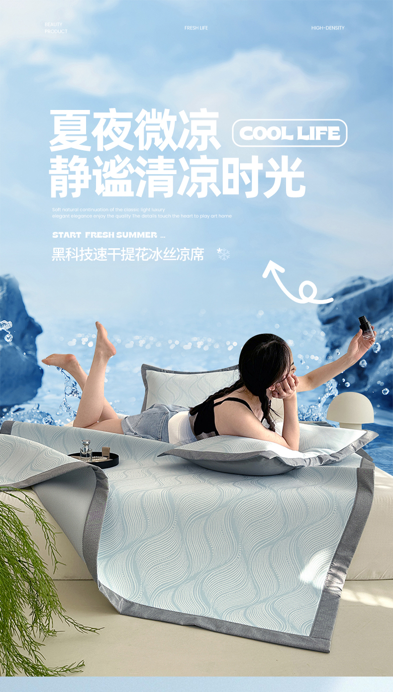 商品名称:网客家纺 2025新款高分子PE(聚乙烯)提花凉感软席 夏梦-蓝
