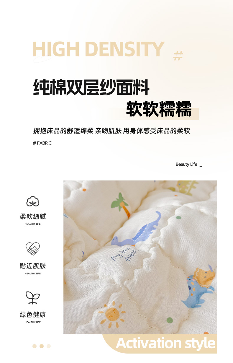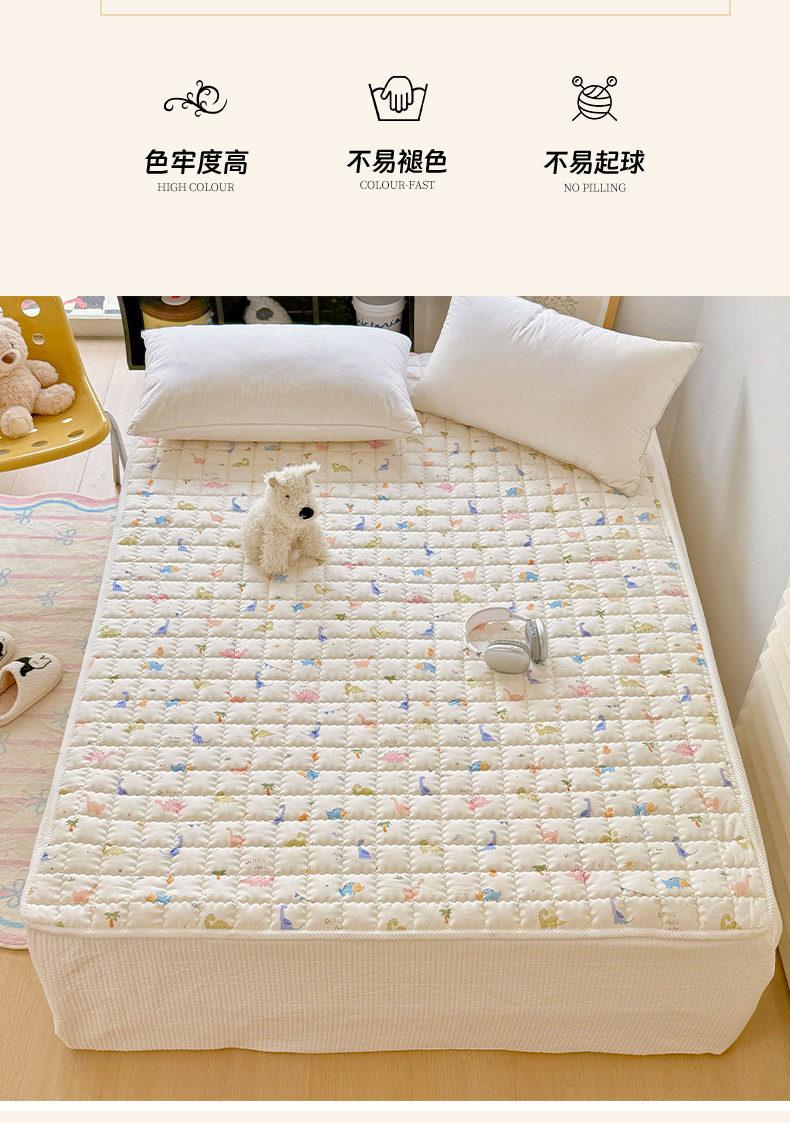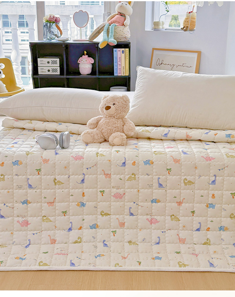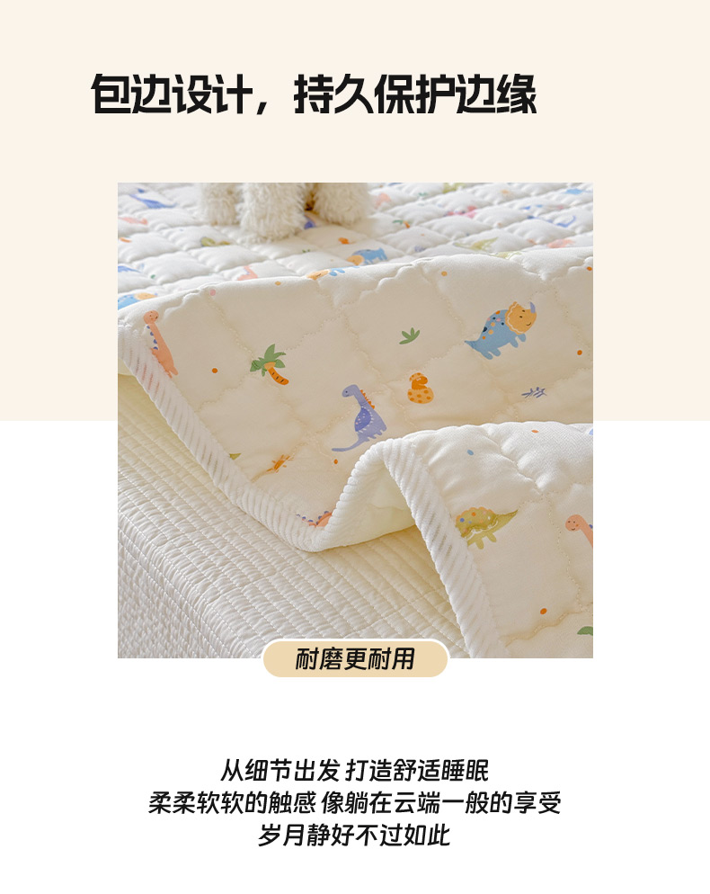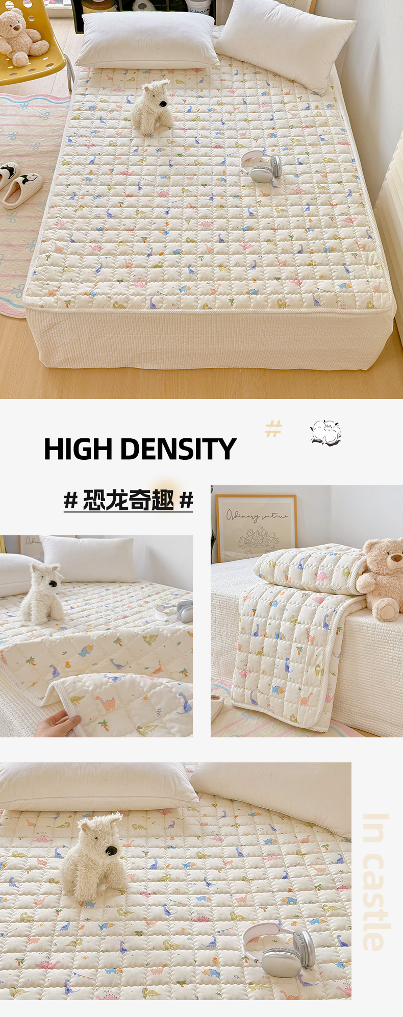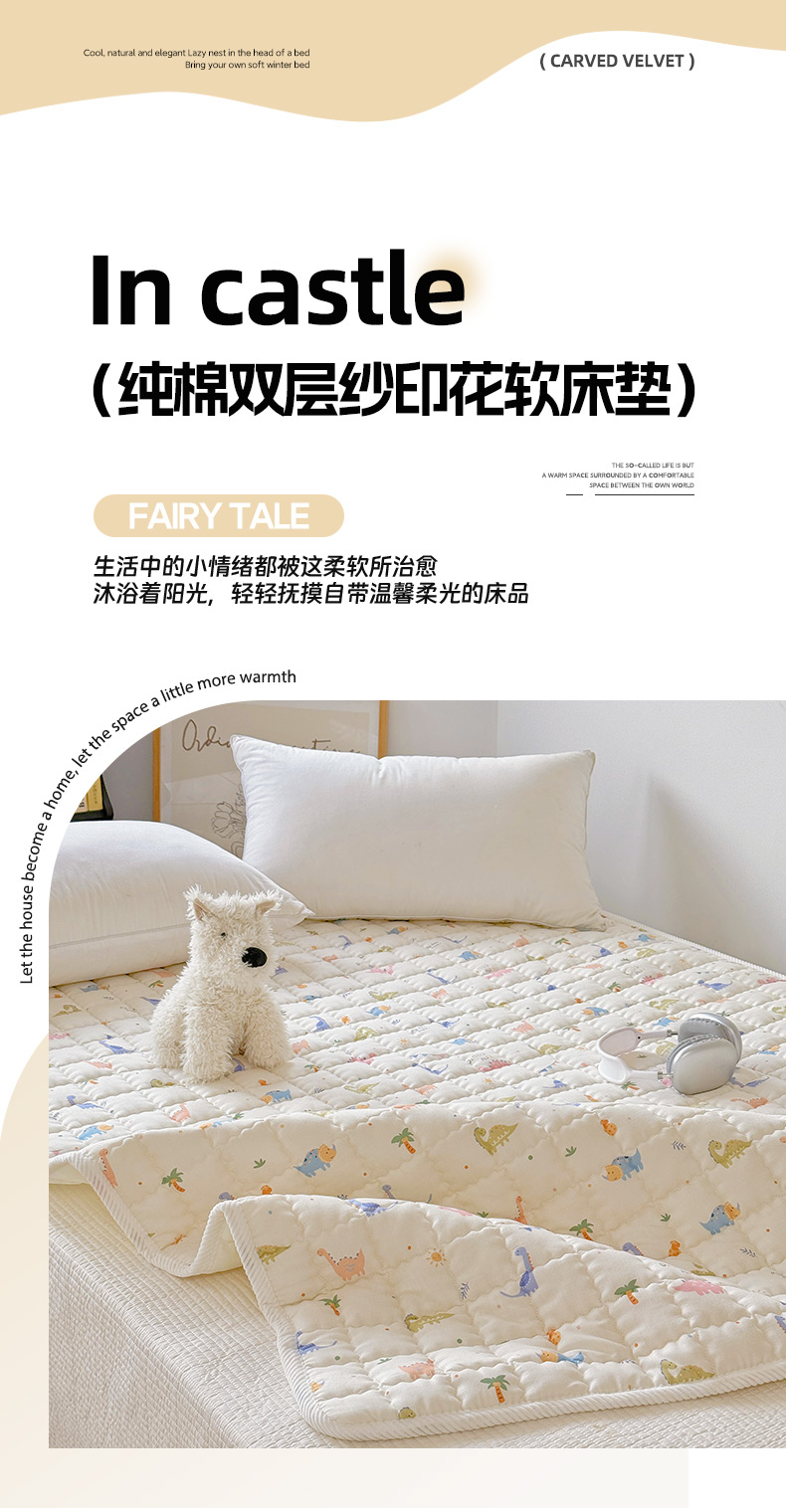 商品名称:澳萝拉 2025新款纯棉双层纱印花软床垫床褥 恐龙奇趣