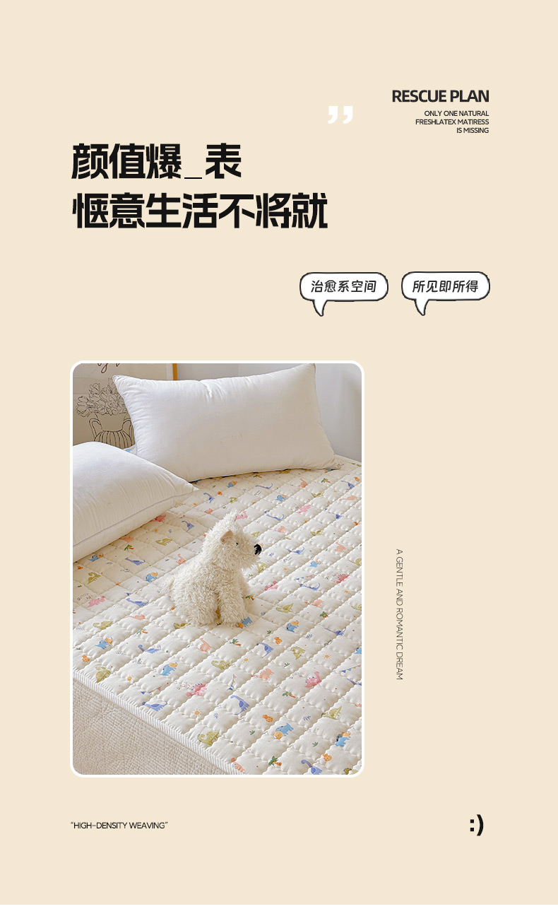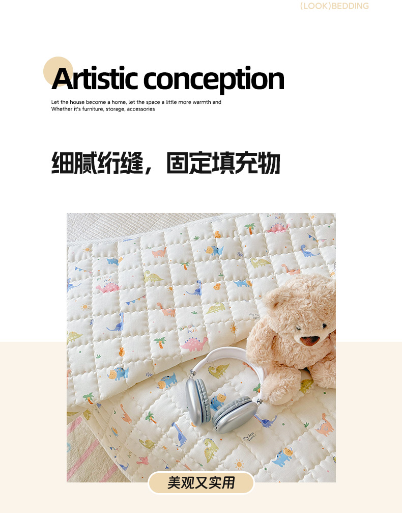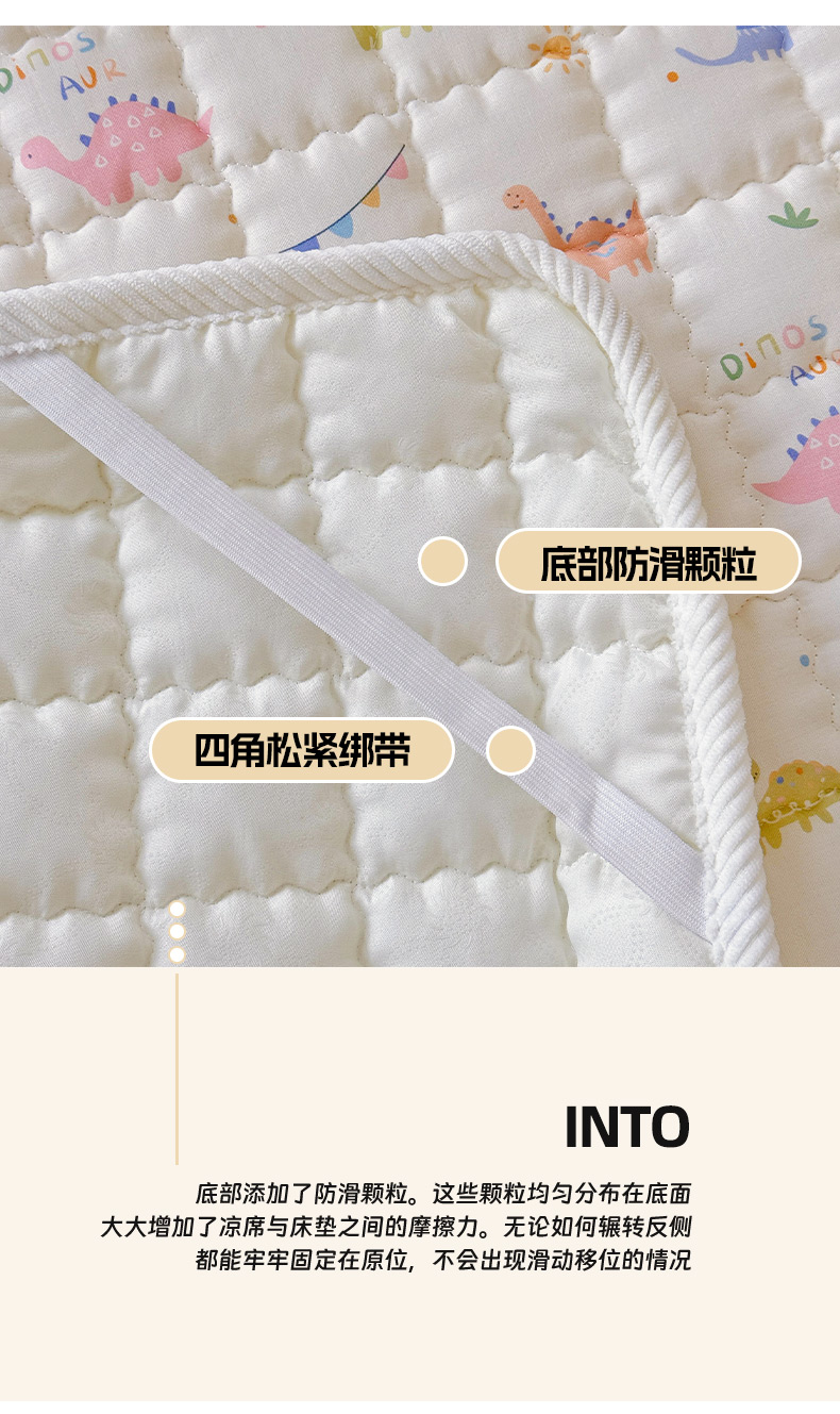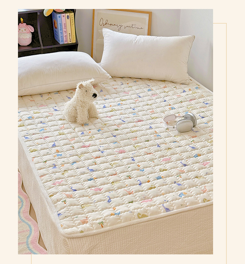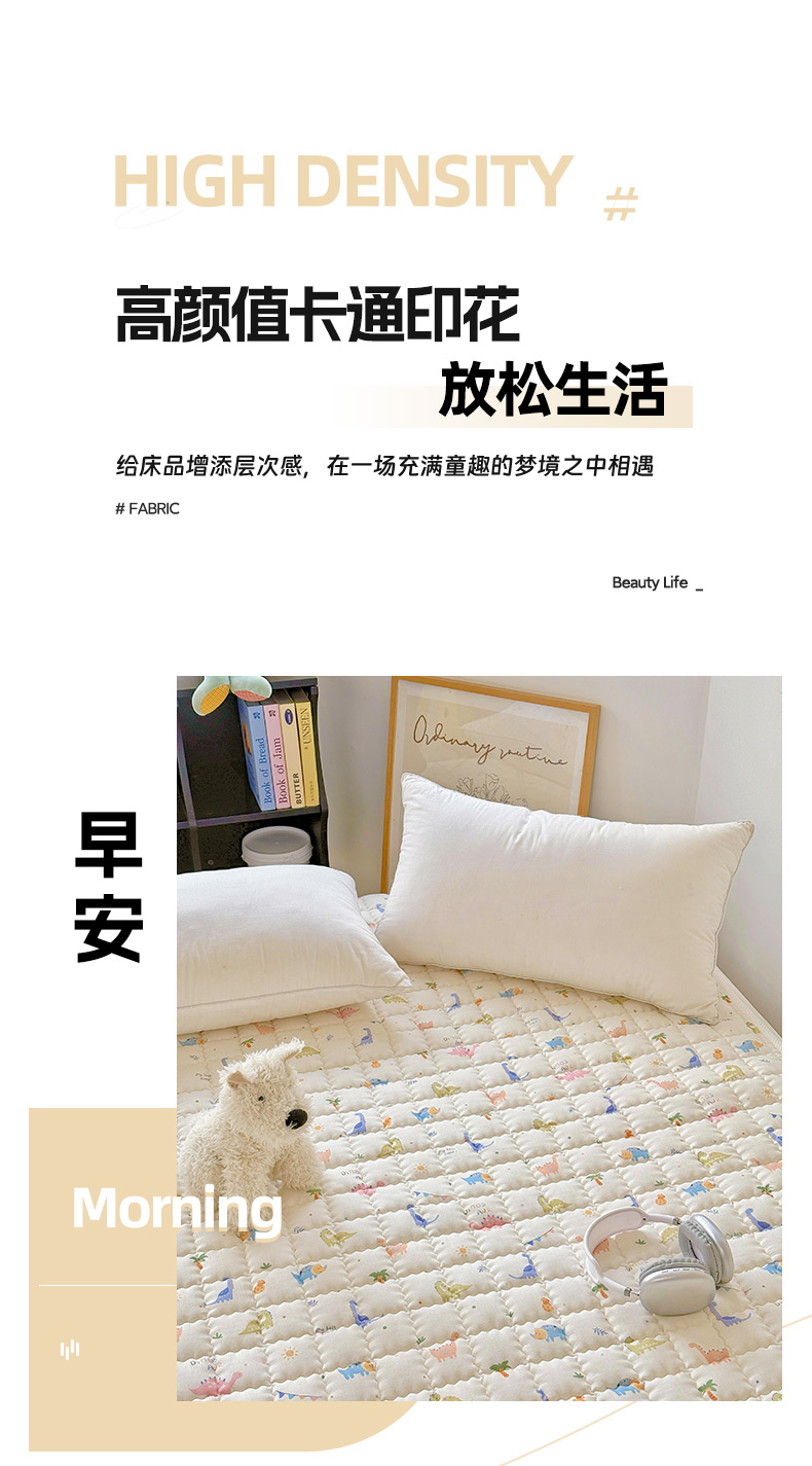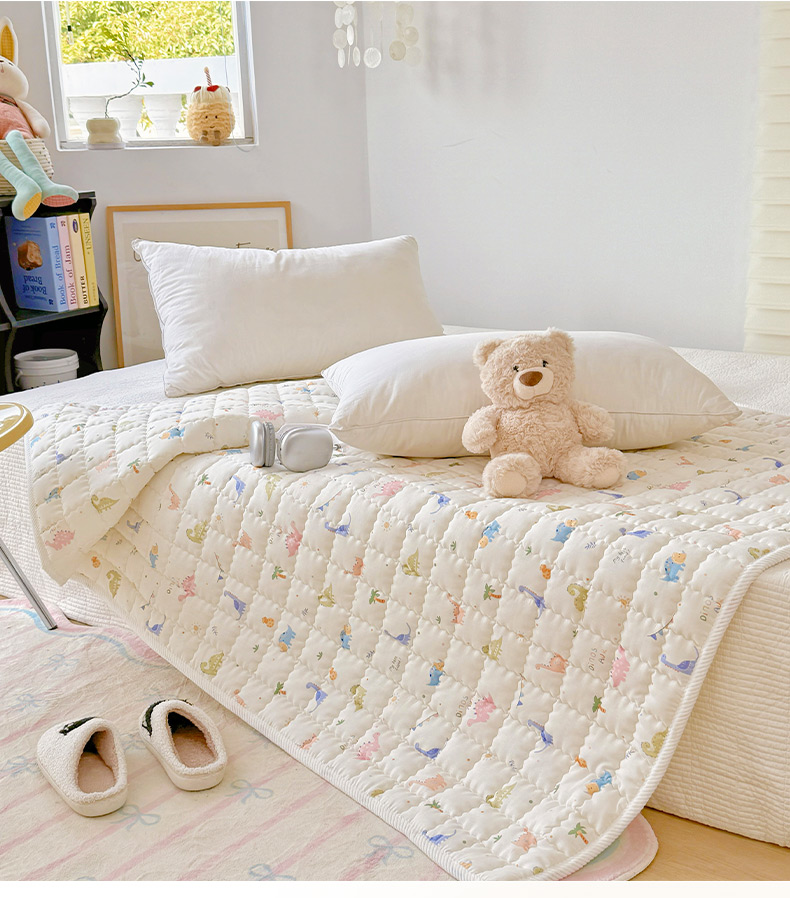 商品名称:澳萝拉 2025新款纯棉双层纱印花软床垫床褥 恐龙奇趣